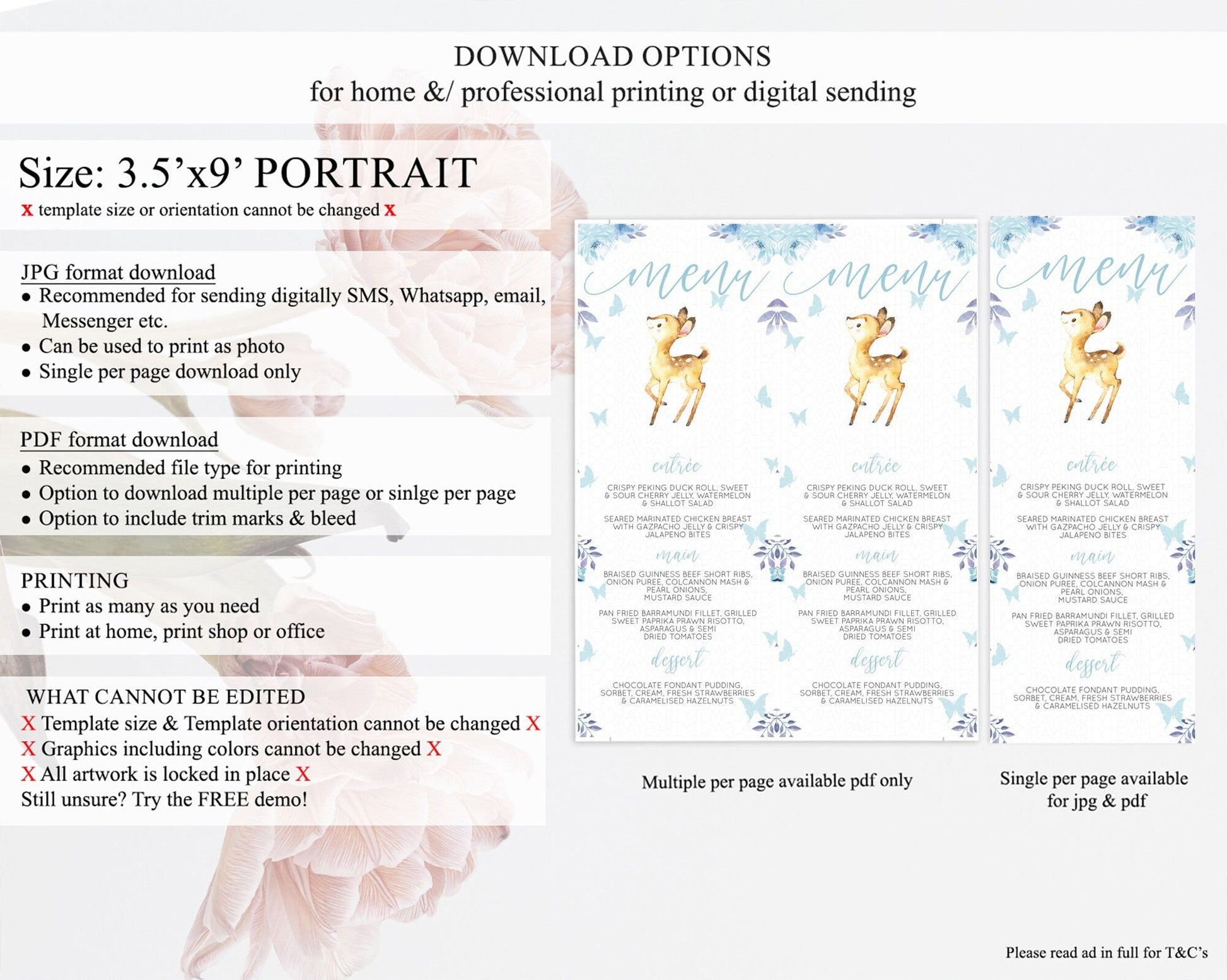 Fawn Menu Deer Menu Template Pastel Floral Deer Table Decor Enchanted Forest Butterfly Floral Dinner Dessert Menu Party Food Menu D10917