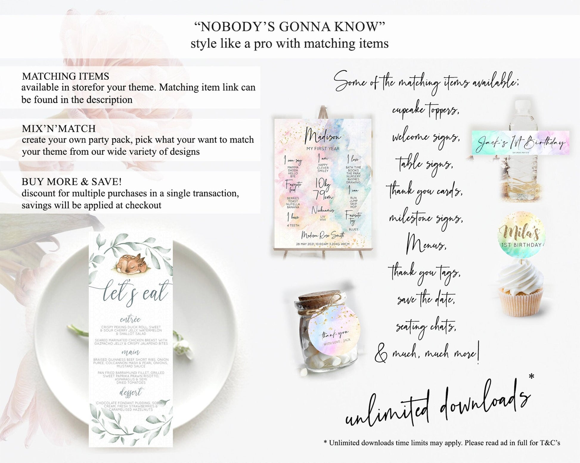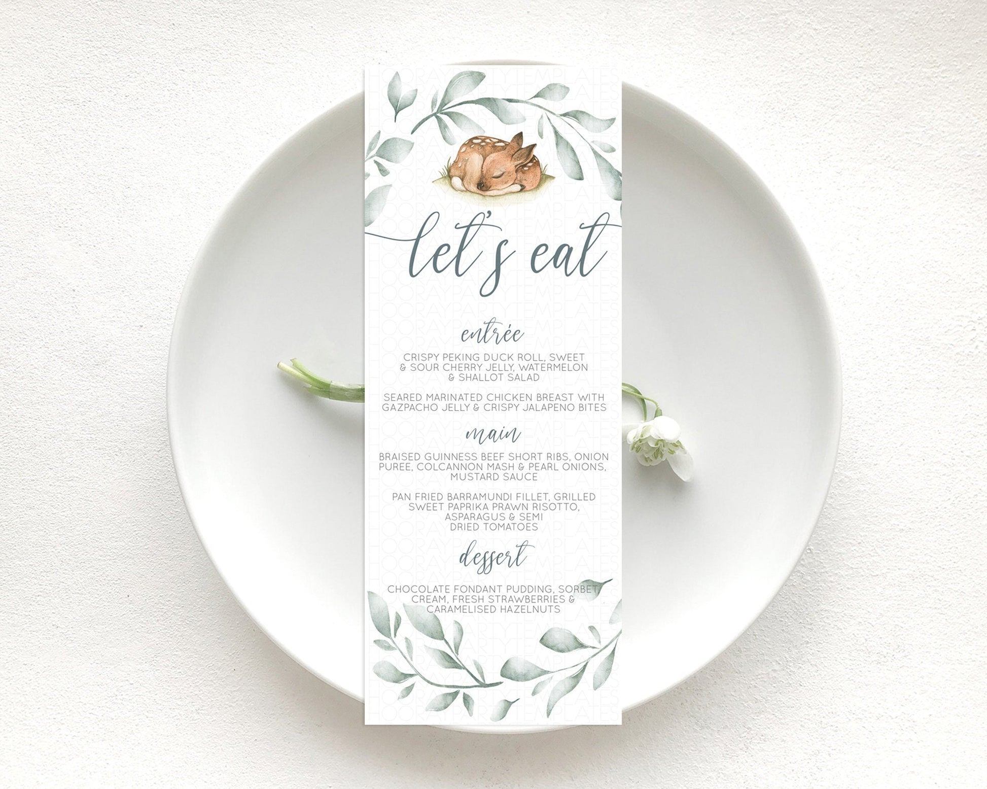 Fawn Menu Deer Menu Template Pastel Floral Deer Table Decor Enchanted Forest Butterfly Floral Dinner Dessert Menu Party Food Menu D10935