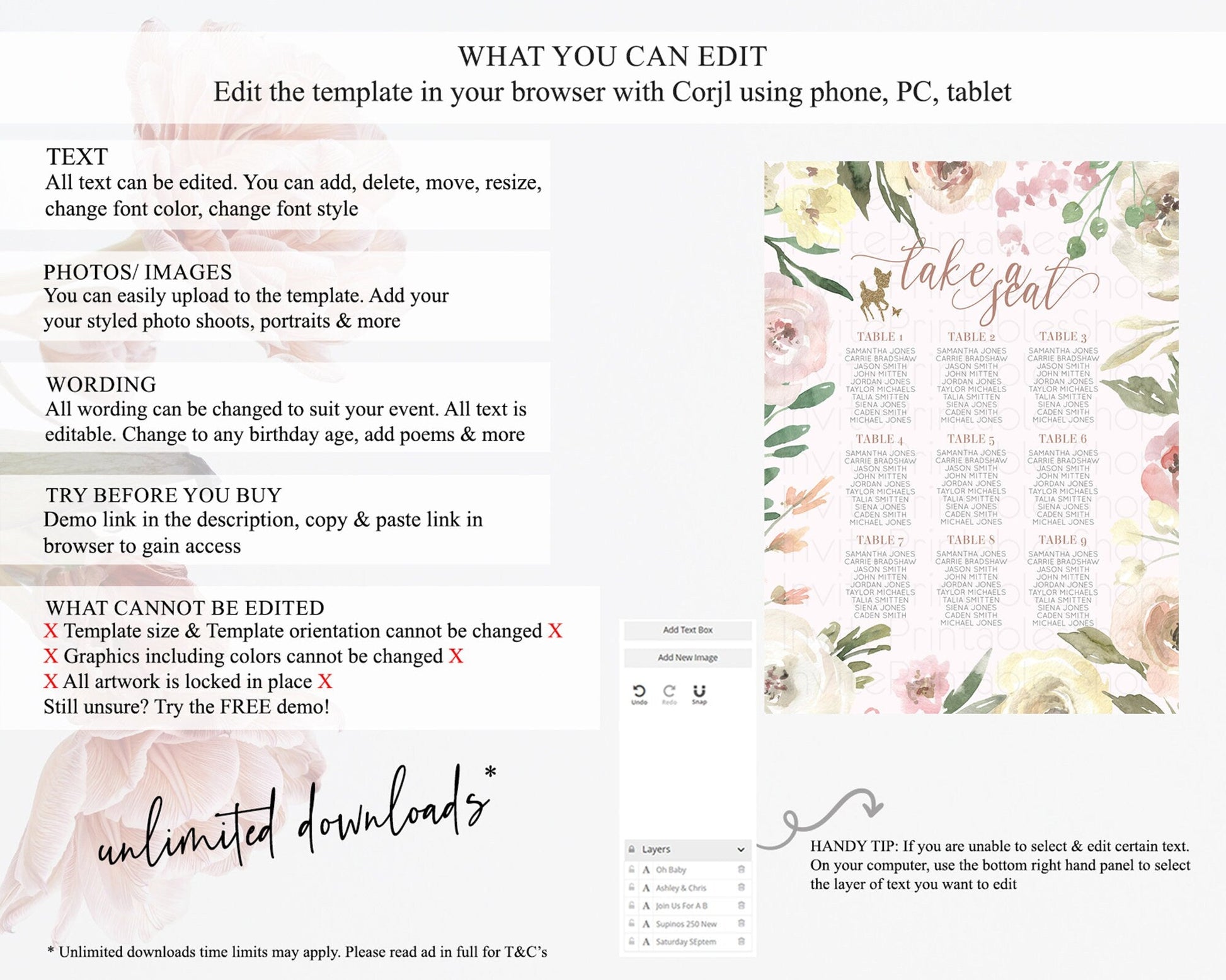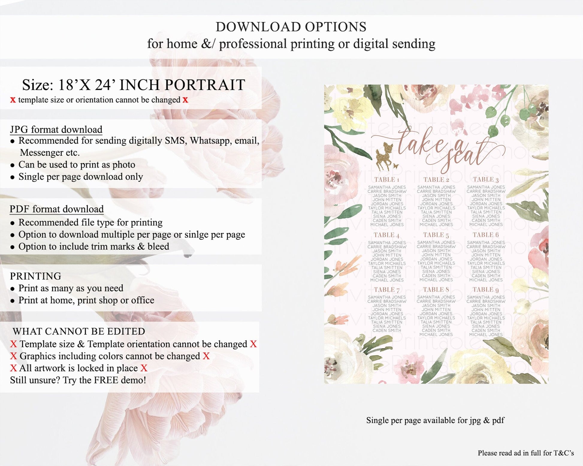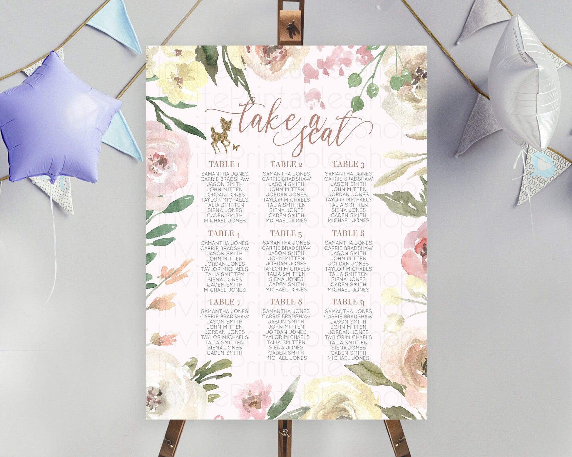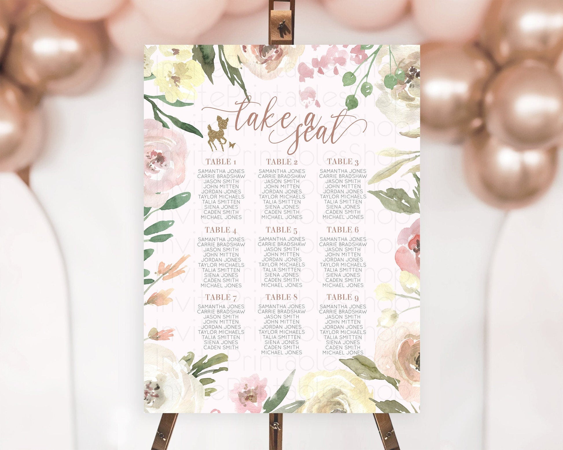 Fawn Seating Chart Deer Seating Chart Enchanted Forest Party Butterfly Pastel Flowers Whimsical Seating Chart Woodland Seating Sign D10193