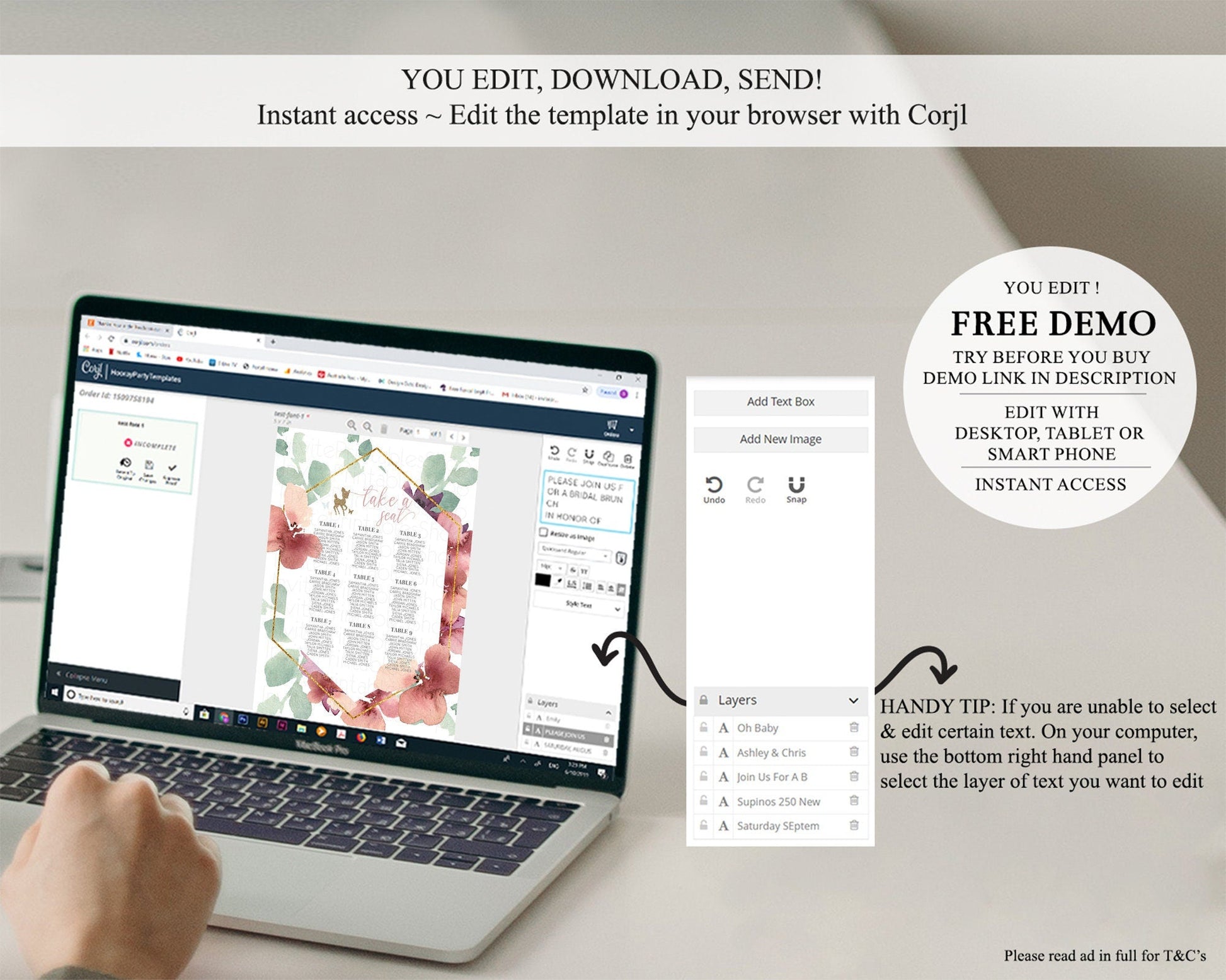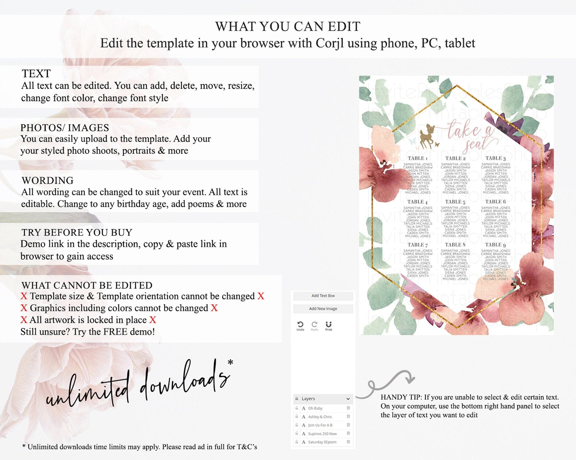 • After purchase, Corjl emails your editing link. Allow up to 15 minutes for delivery.