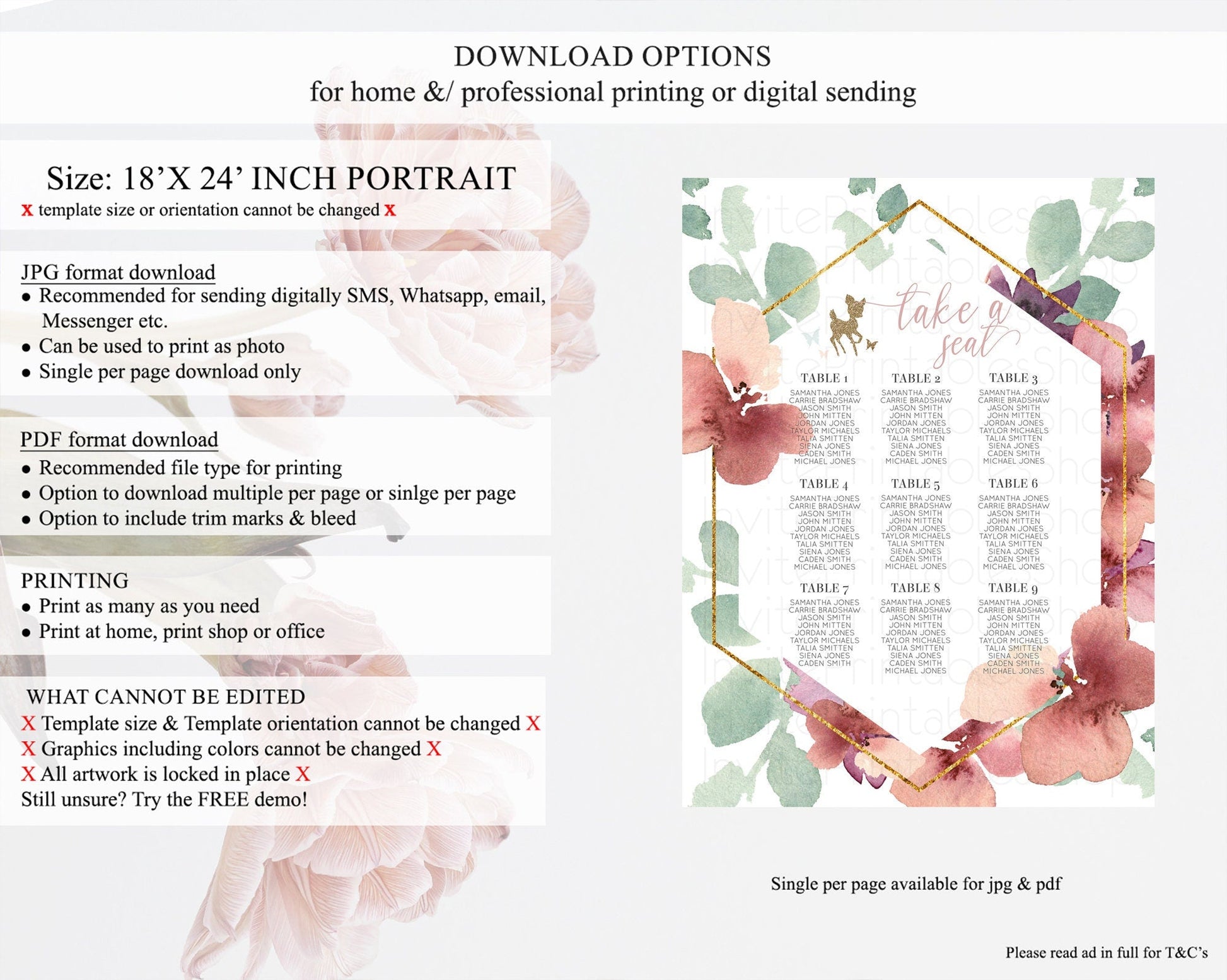 • Template size & orientation cannot be changed. Please use the demo link to confirm this product suits your needs.