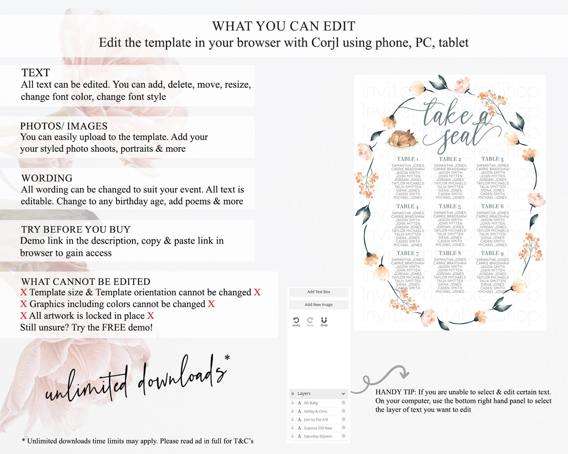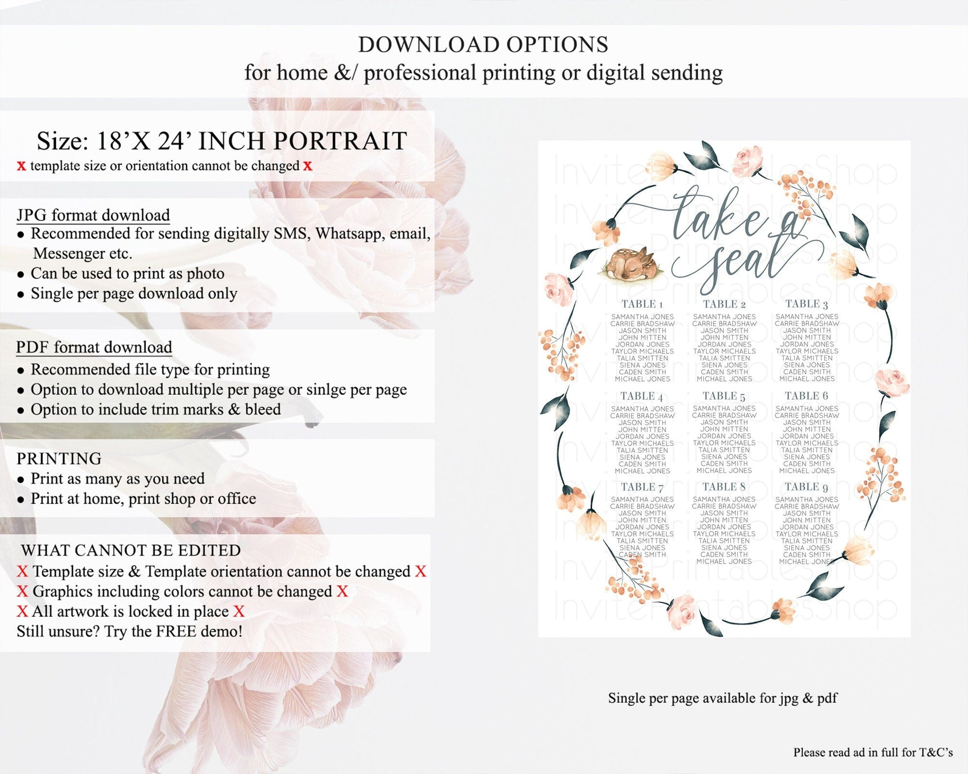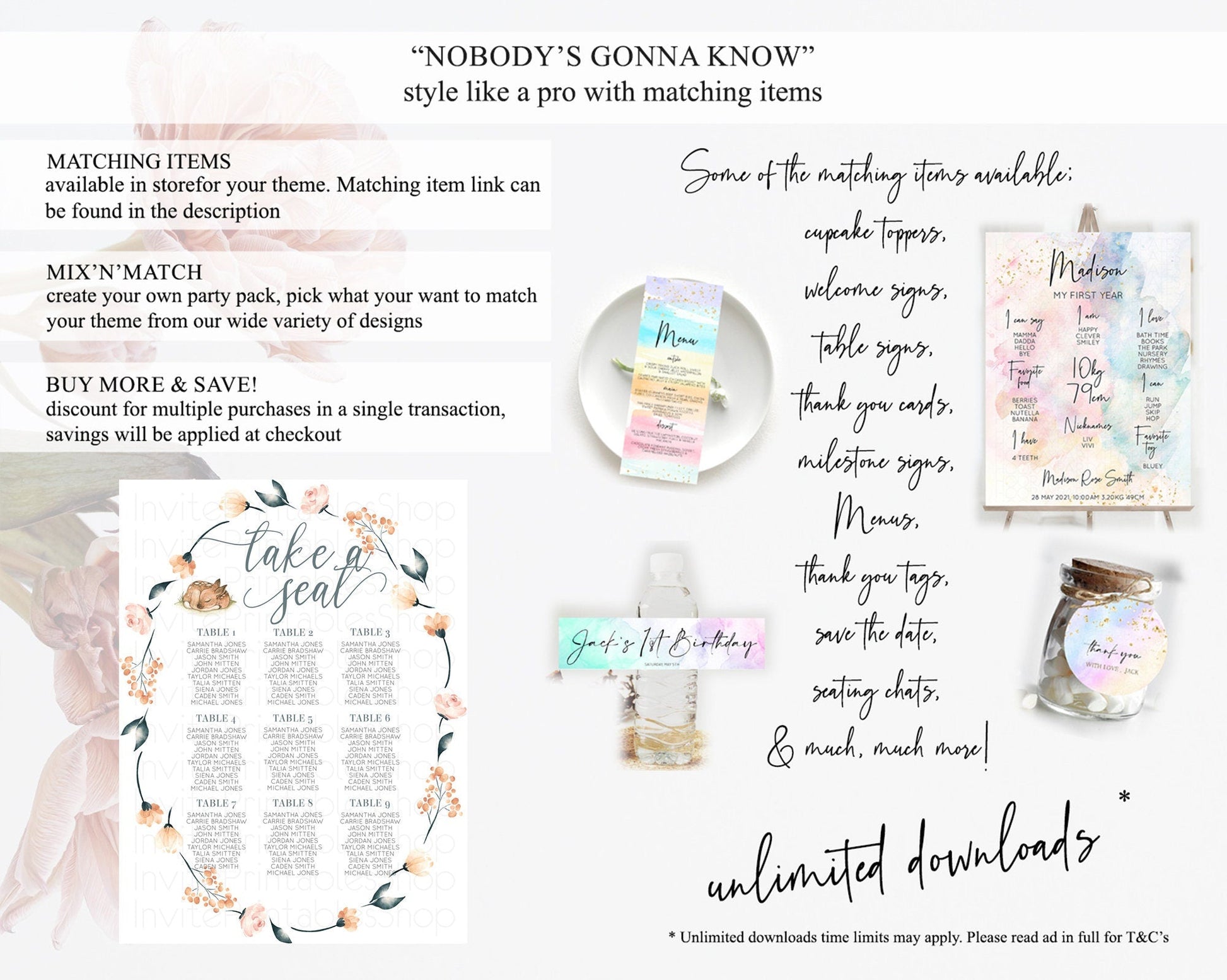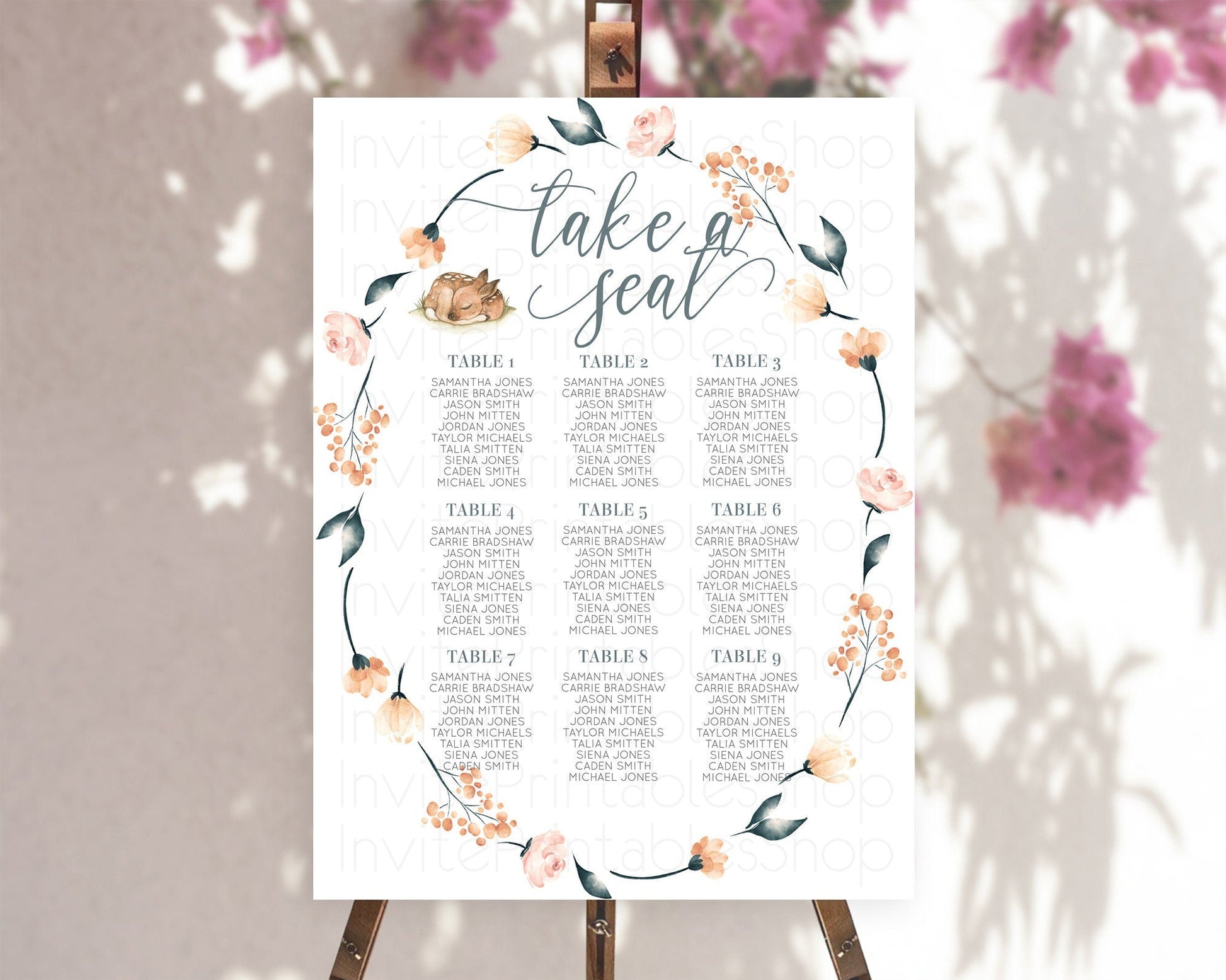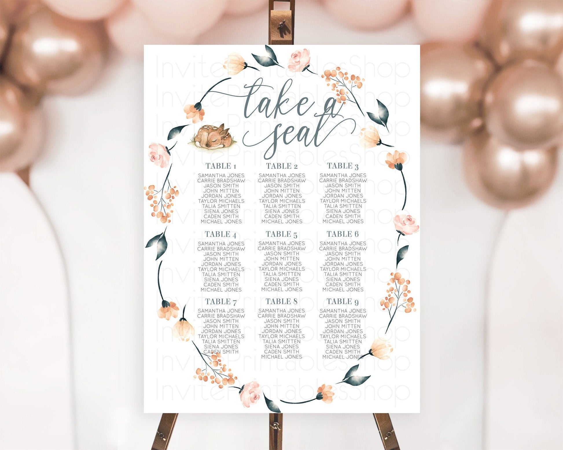 Fawn Seating Chart Deer Seating Chart Enchanted Forest Party Butterfly Pastel Flowers Whimsical Seating Chart Woodland Seating Sign D10790