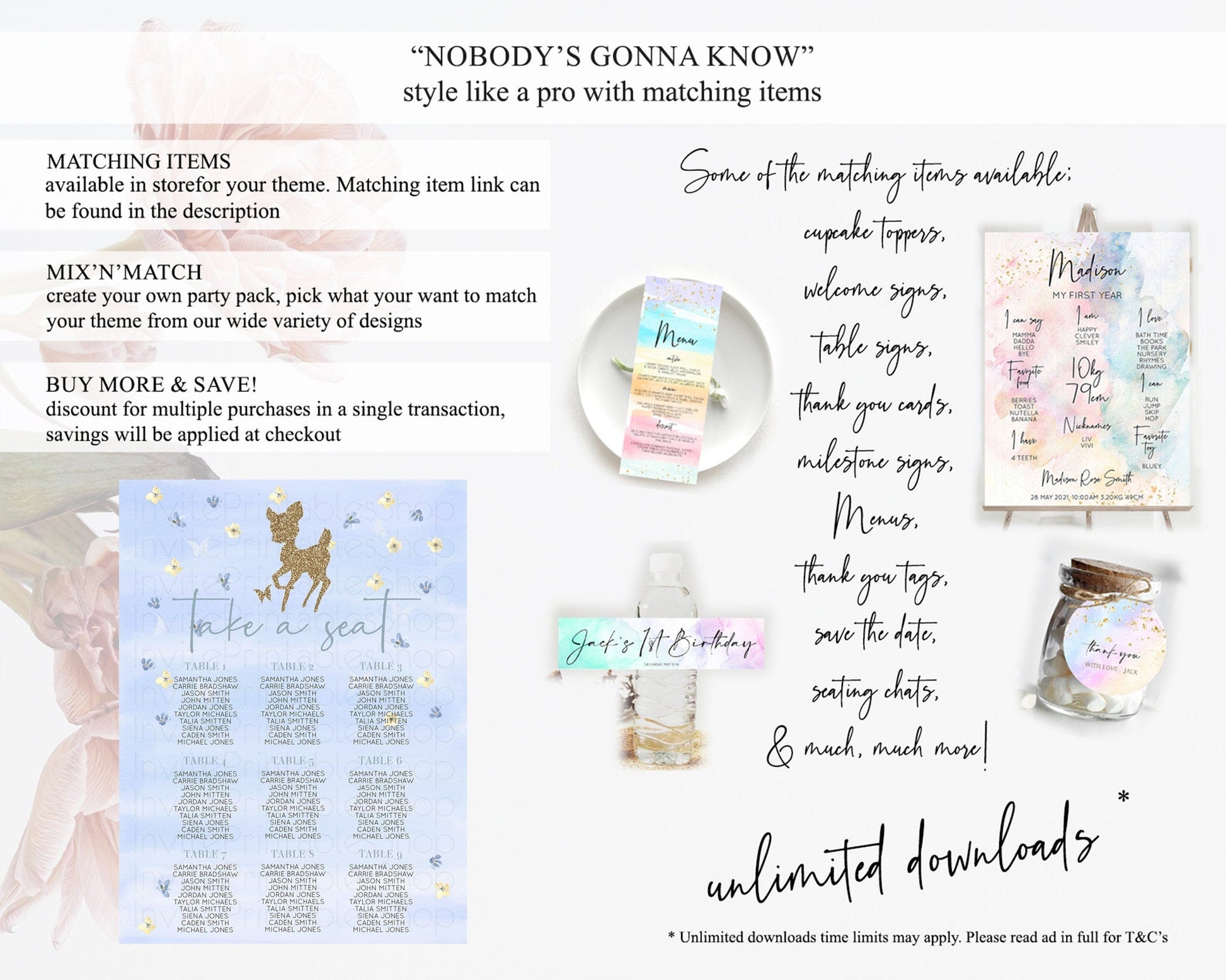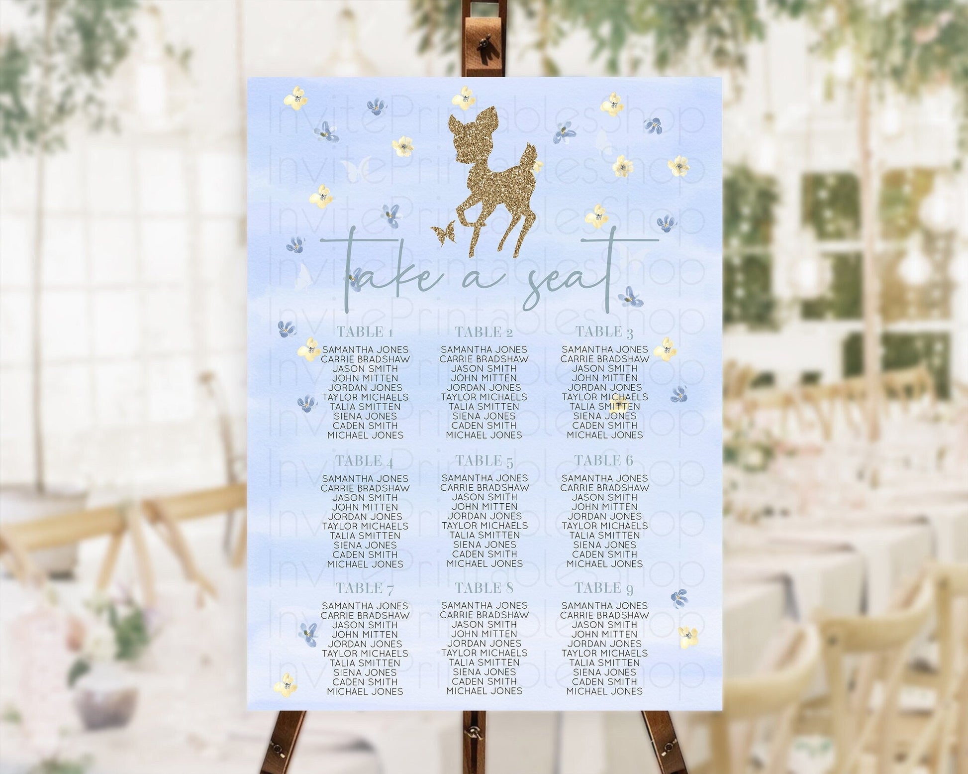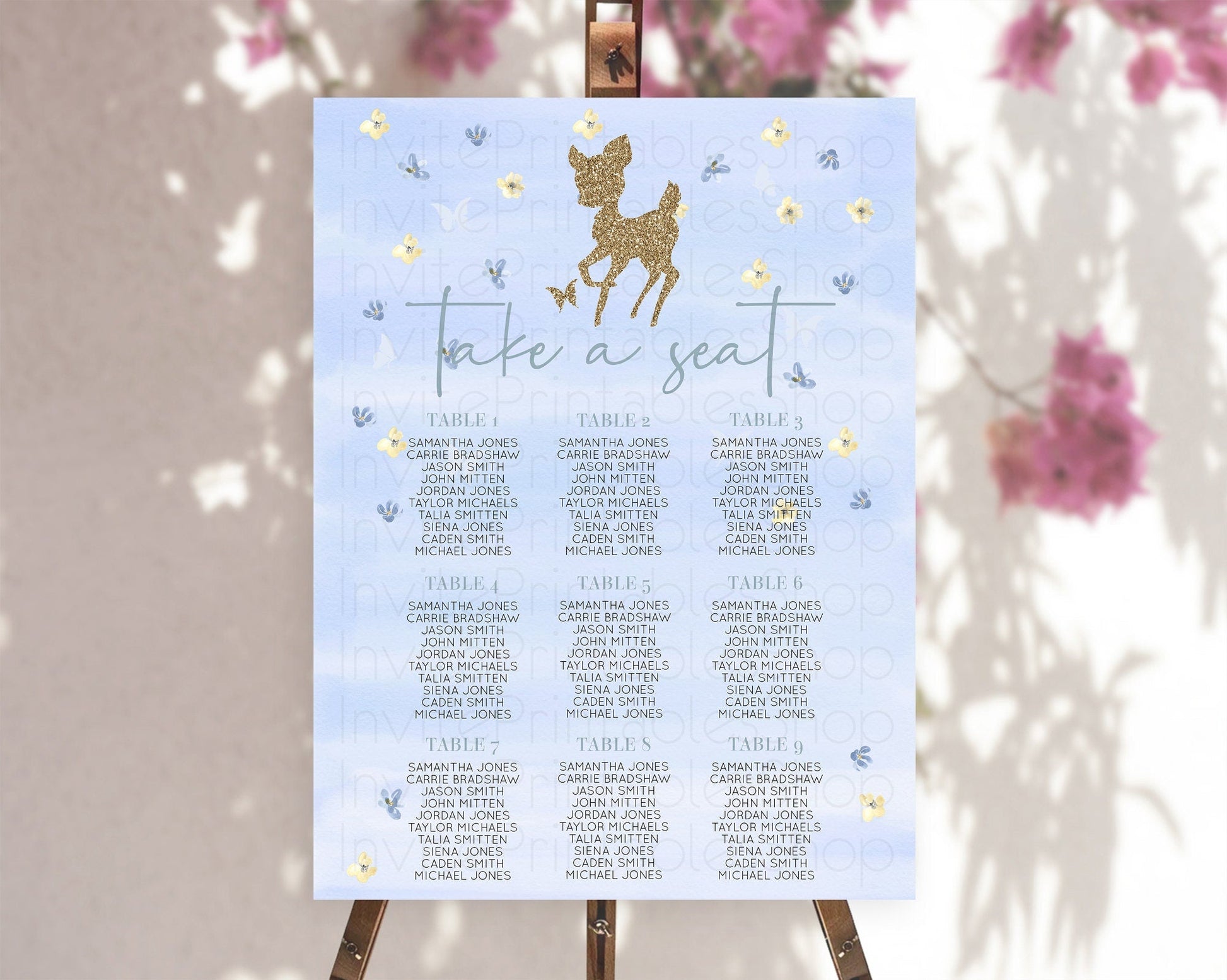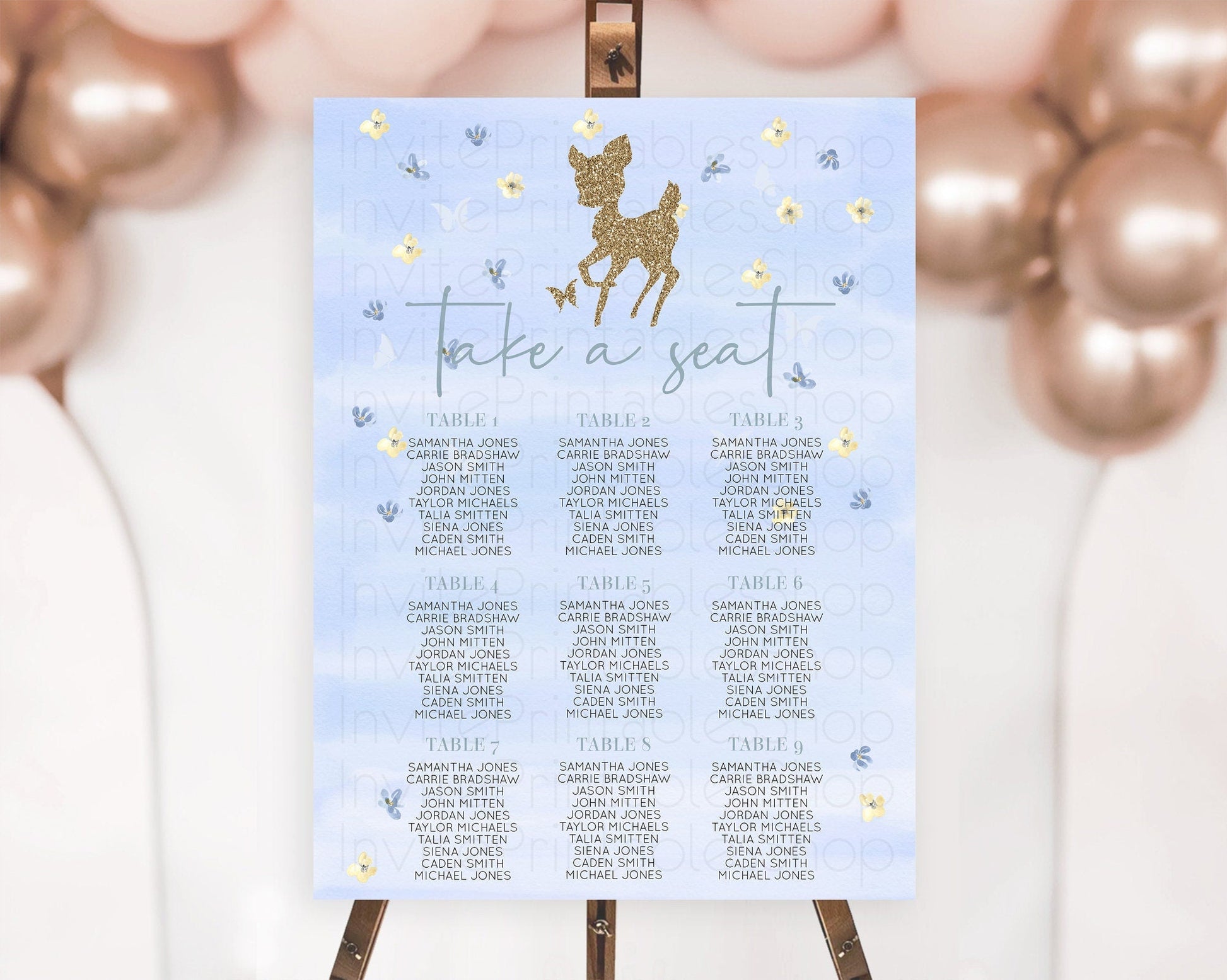 Fawn Seating Chart Deer Seating Chart Enchanted Forest Party Butterfly Pastel Flowers Whimsical Seating Chart Woodland Seating Sign D10863