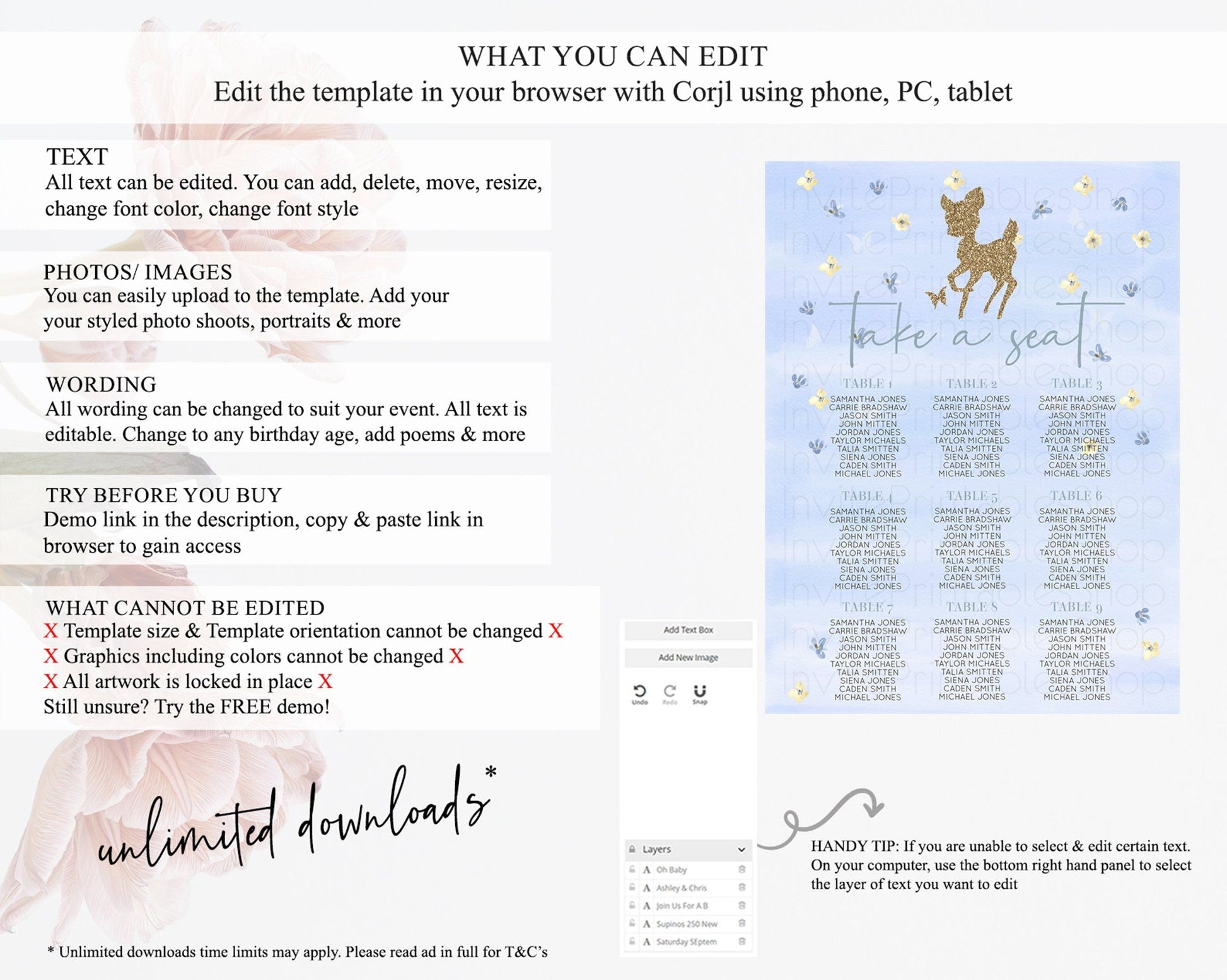 • After purchase, Corjl emails your editing link. Allow up to 15 minutes for delivery.