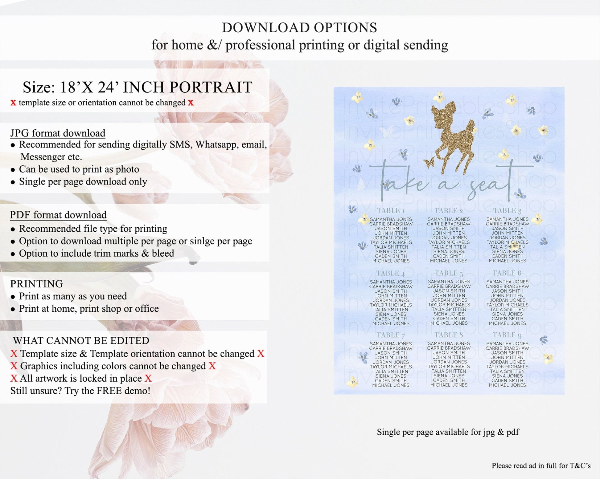 • Template size & orientation cannot be changed. Please use the demo link to confirm this product suits your needs.