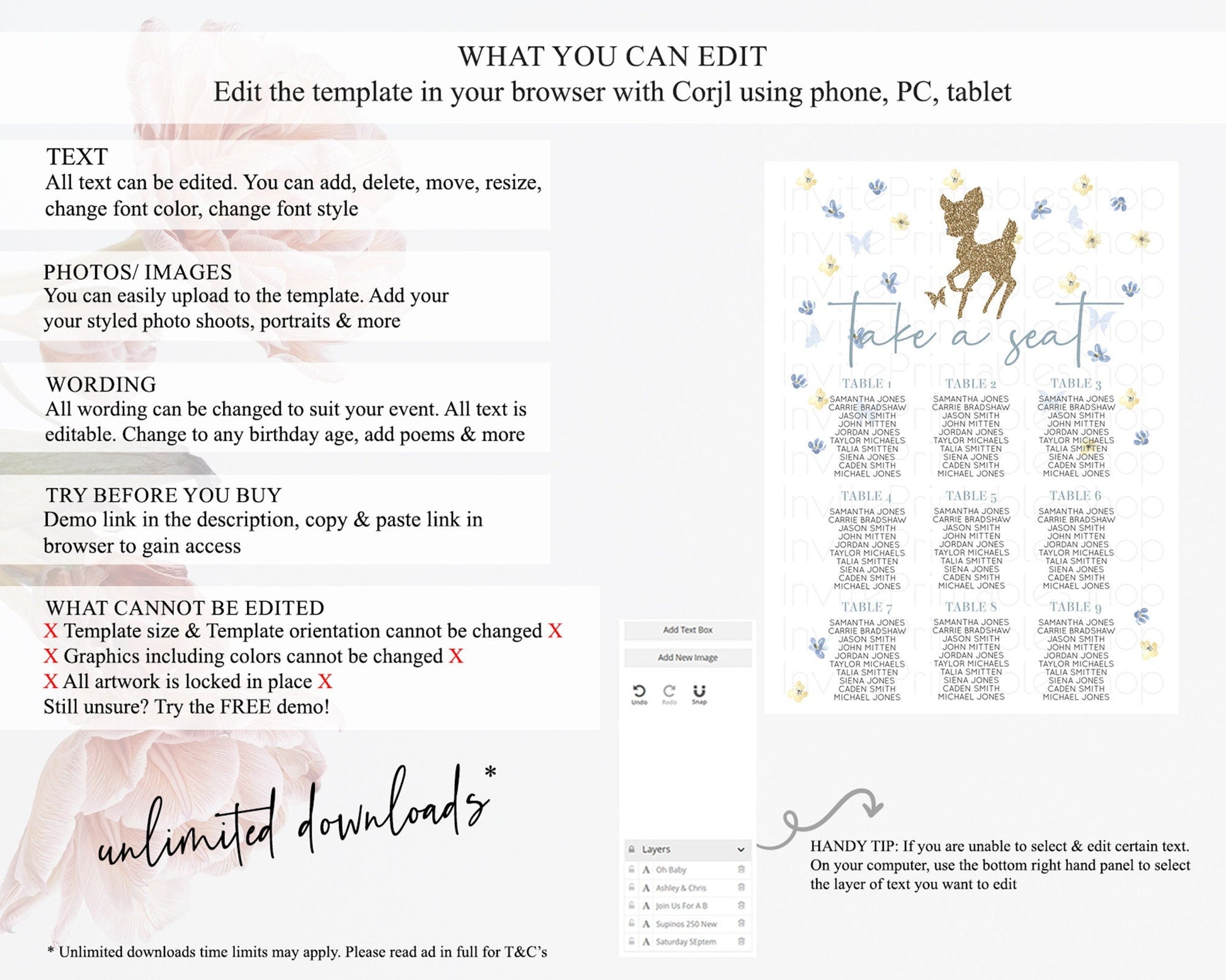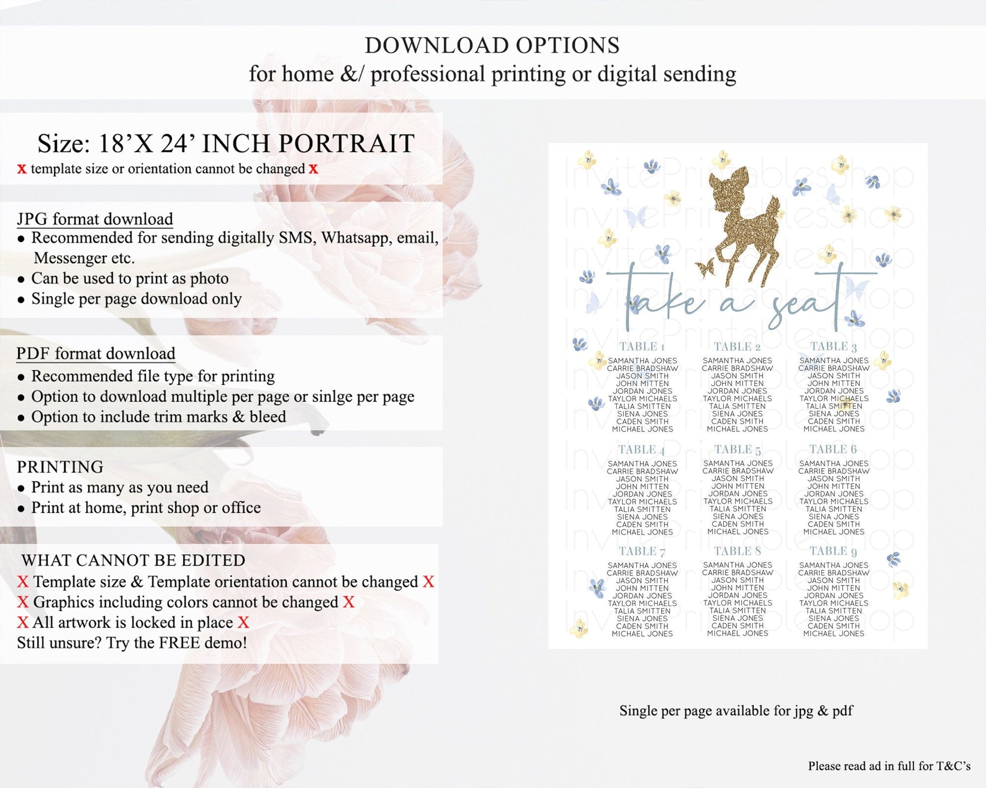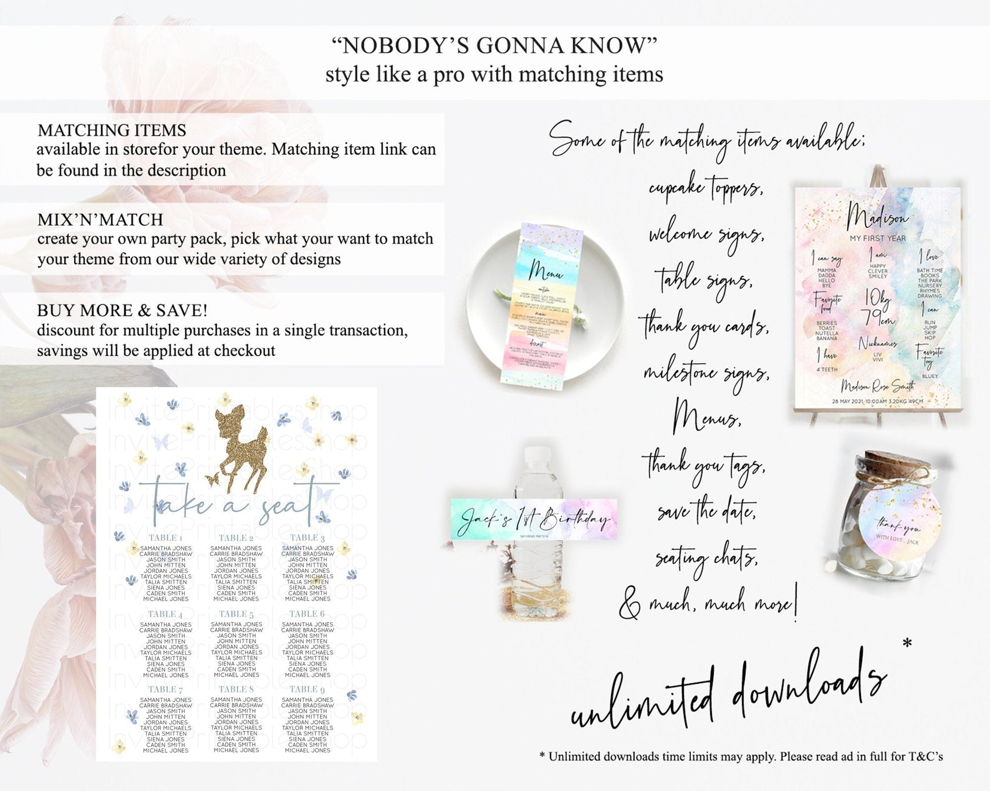 Fawn Seating Chart Deer Seating Chart Enchanted Forest Party Butterfly Pastel Flowers Whimsical Seating Chart Woodland Seating Sign D10864