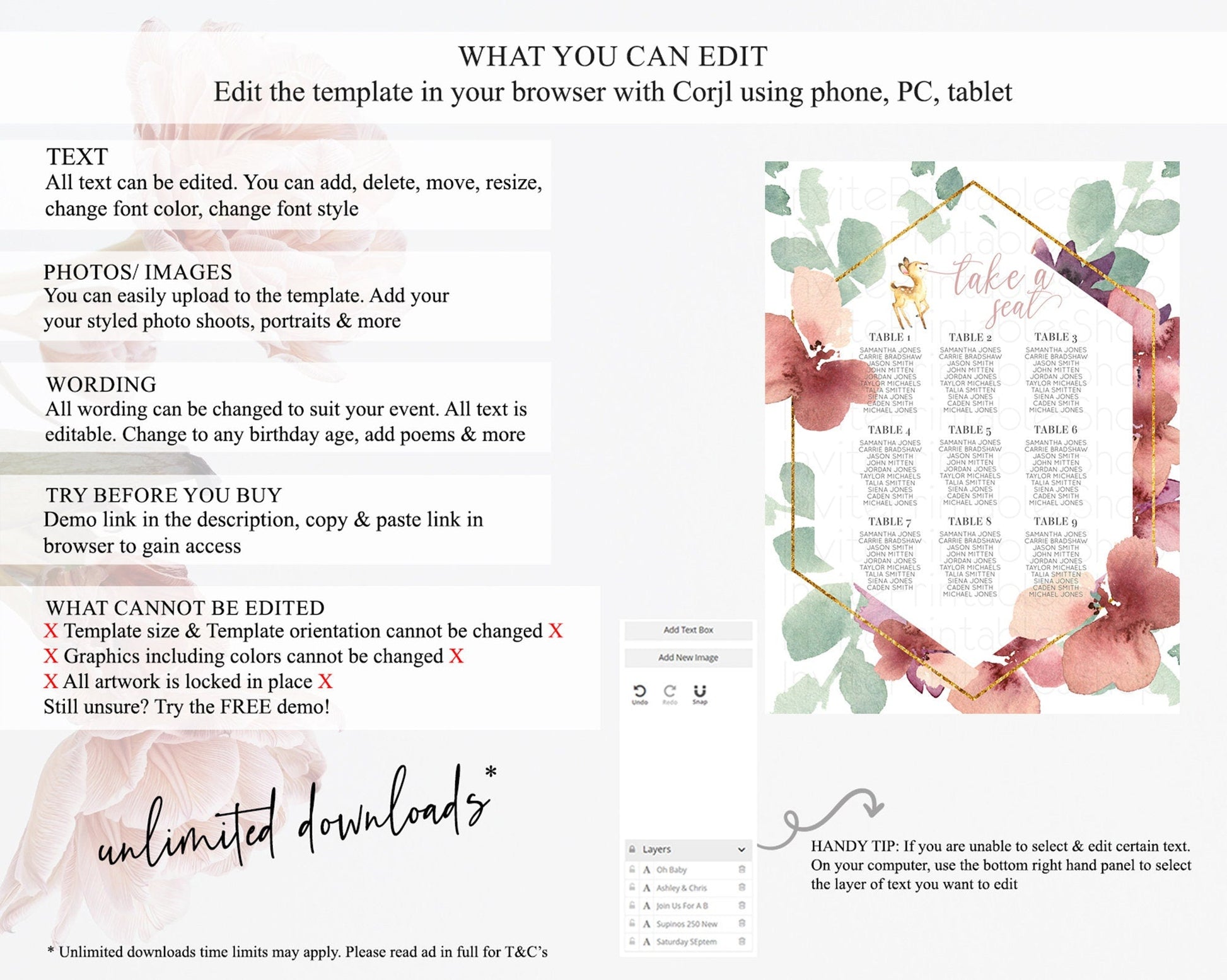 • After purchase, Corjl emails your editing link. Allow up to 15 minutes for delivery.