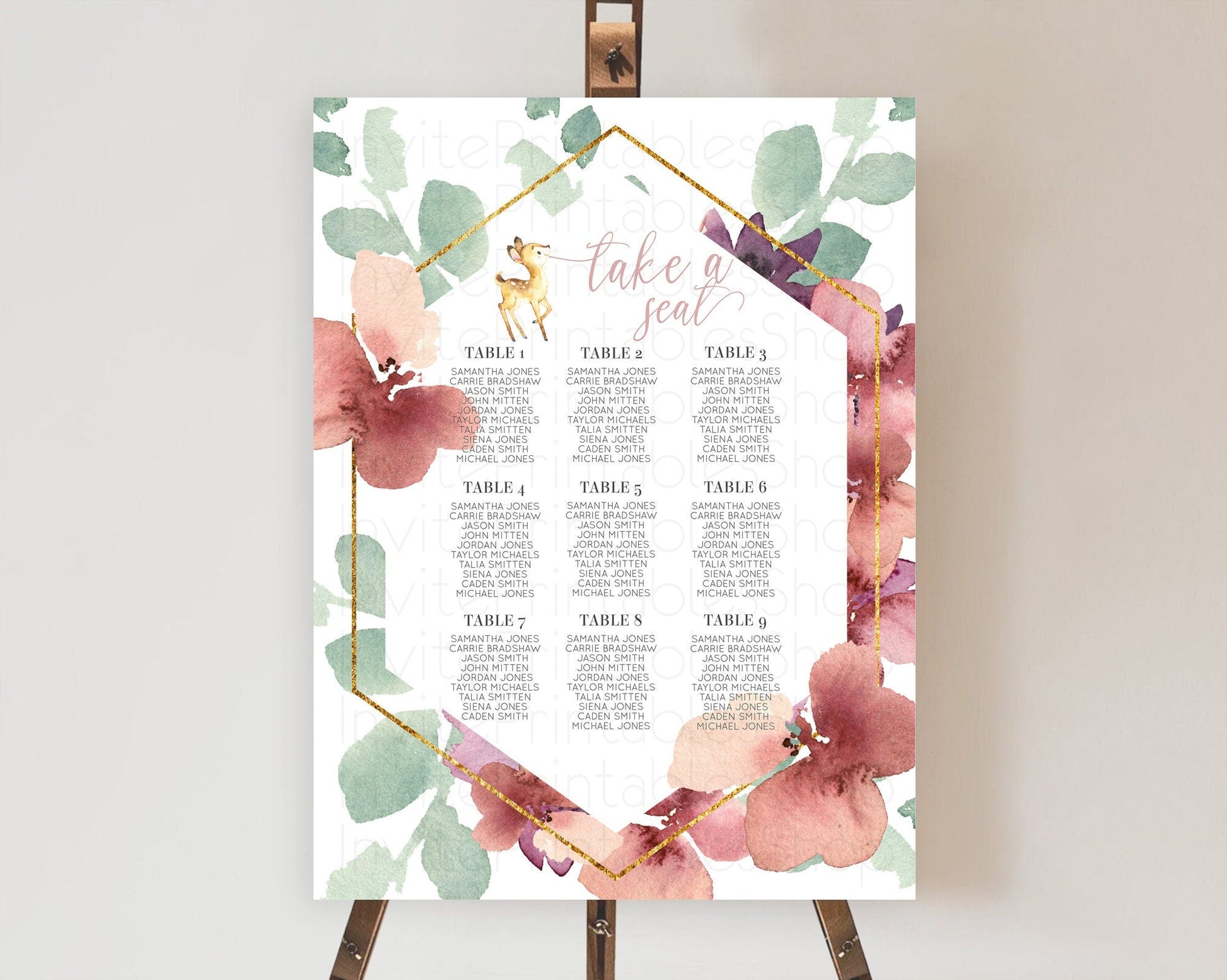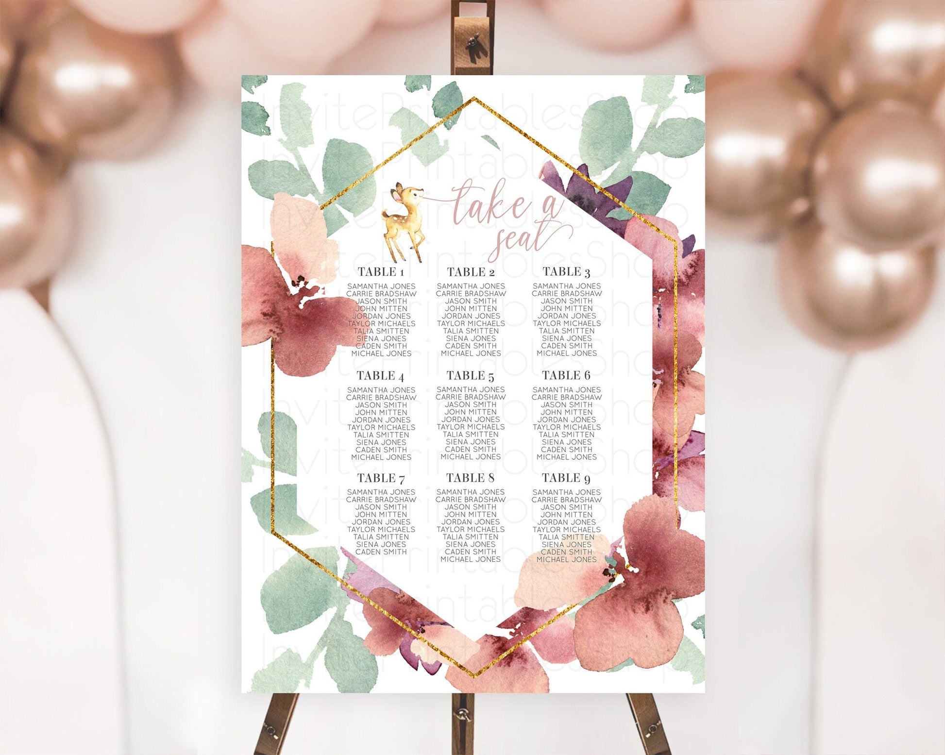 Fawn Seating Chart Deer Seating Chart Enchanted Forest Party Butterfly Pastel Flowers Whimsical Seating Chart Woodland Seating Sign D10915