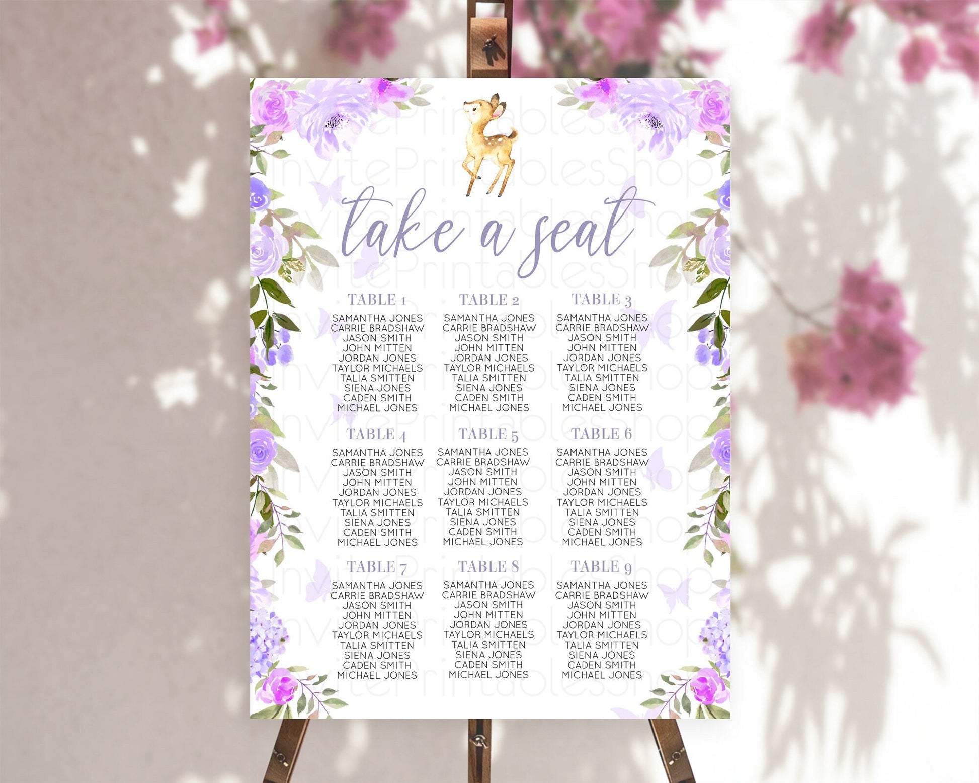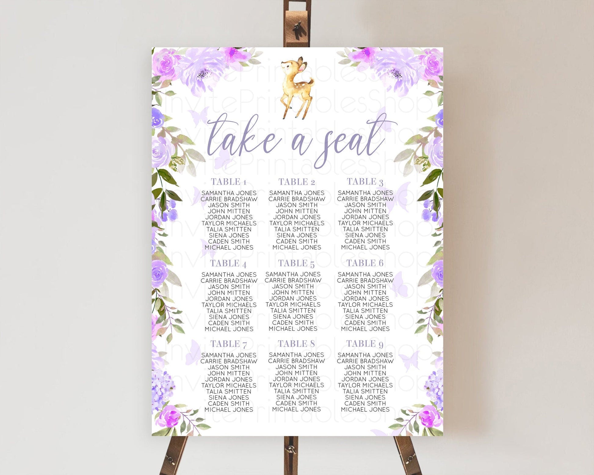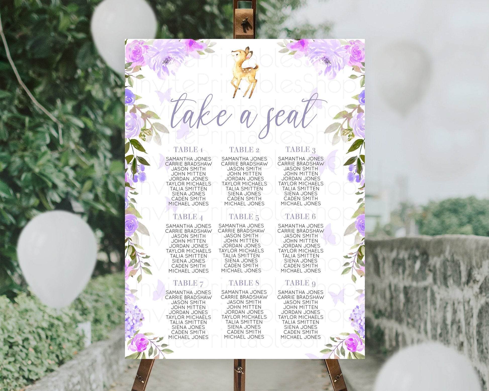 Fawn Seating Chart Deer Seating Chart Enchanted Forest Party Butterfly Pastel Flowers Whimsical Seating Chart Woodland Seating Sign D10916