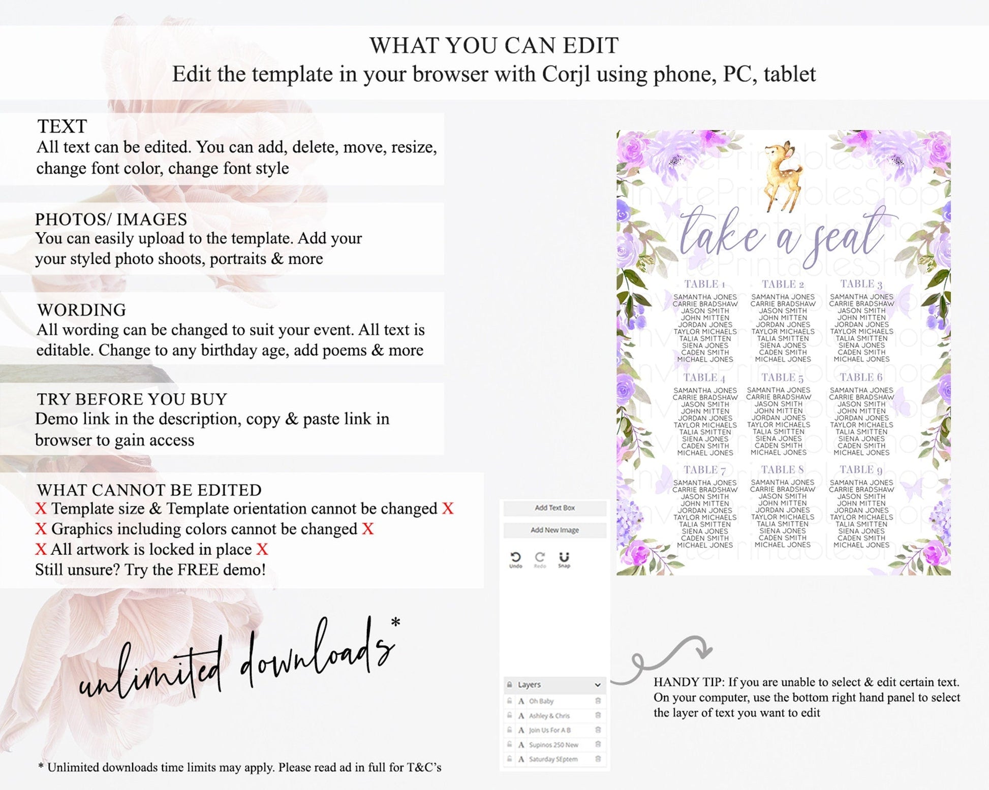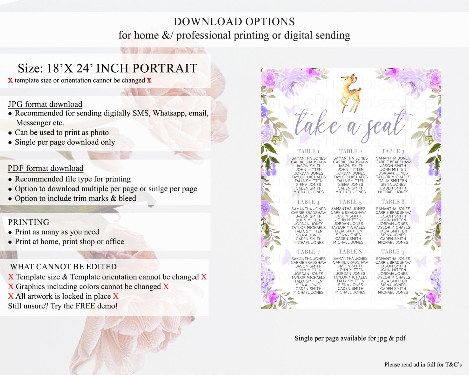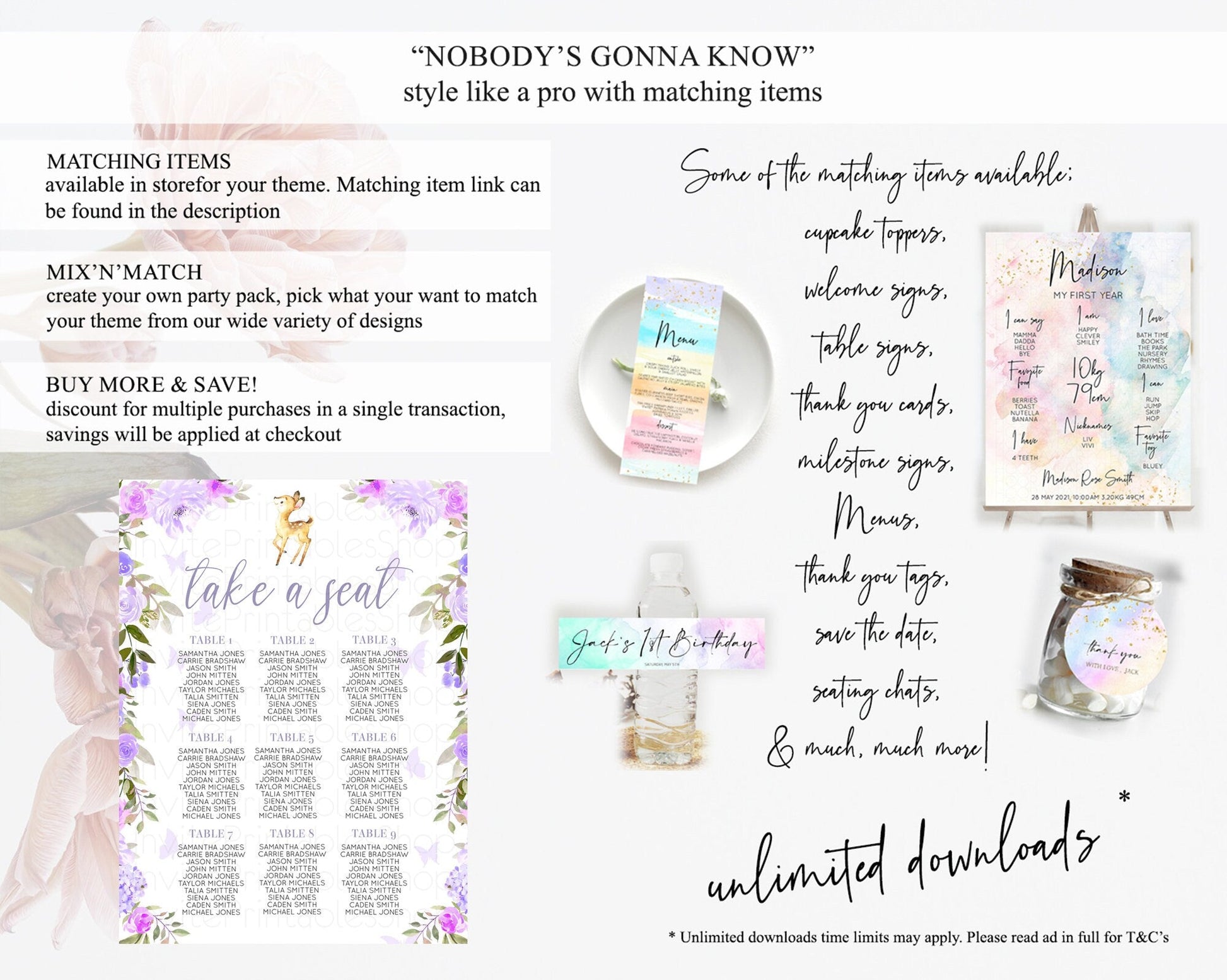 Fawn Seating Chart Deer Seating Chart Enchanted Forest Party Butterfly Pastel Flowers Whimsical Seating Chart Woodland Seating Sign D10916