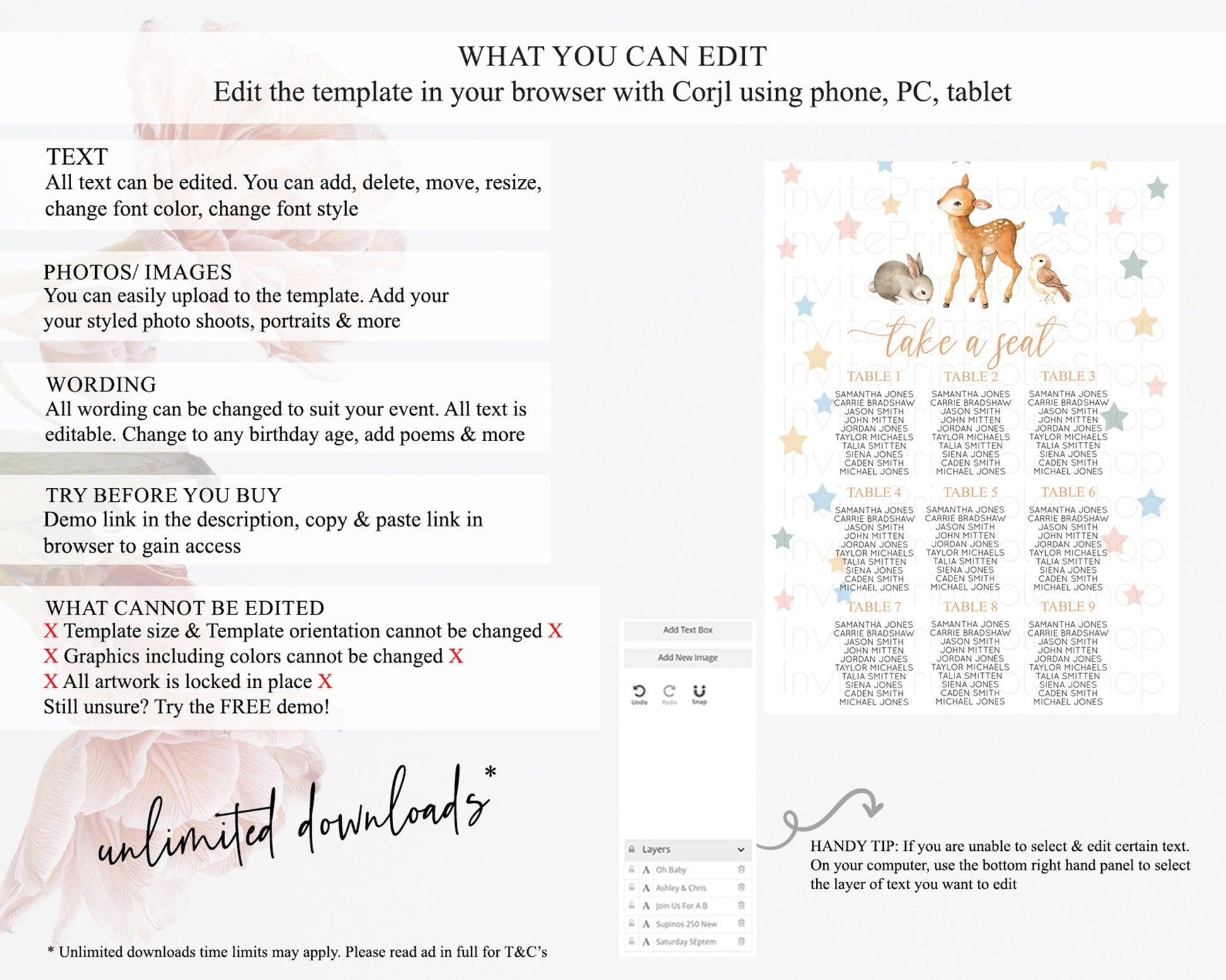 • After purchase, Corjl emails your editing link. Allow up to 15 minutes for delivery.