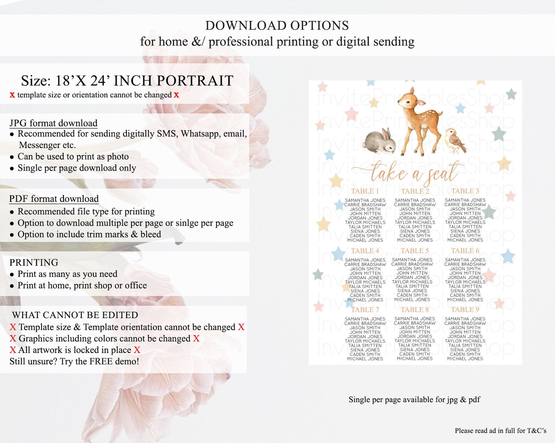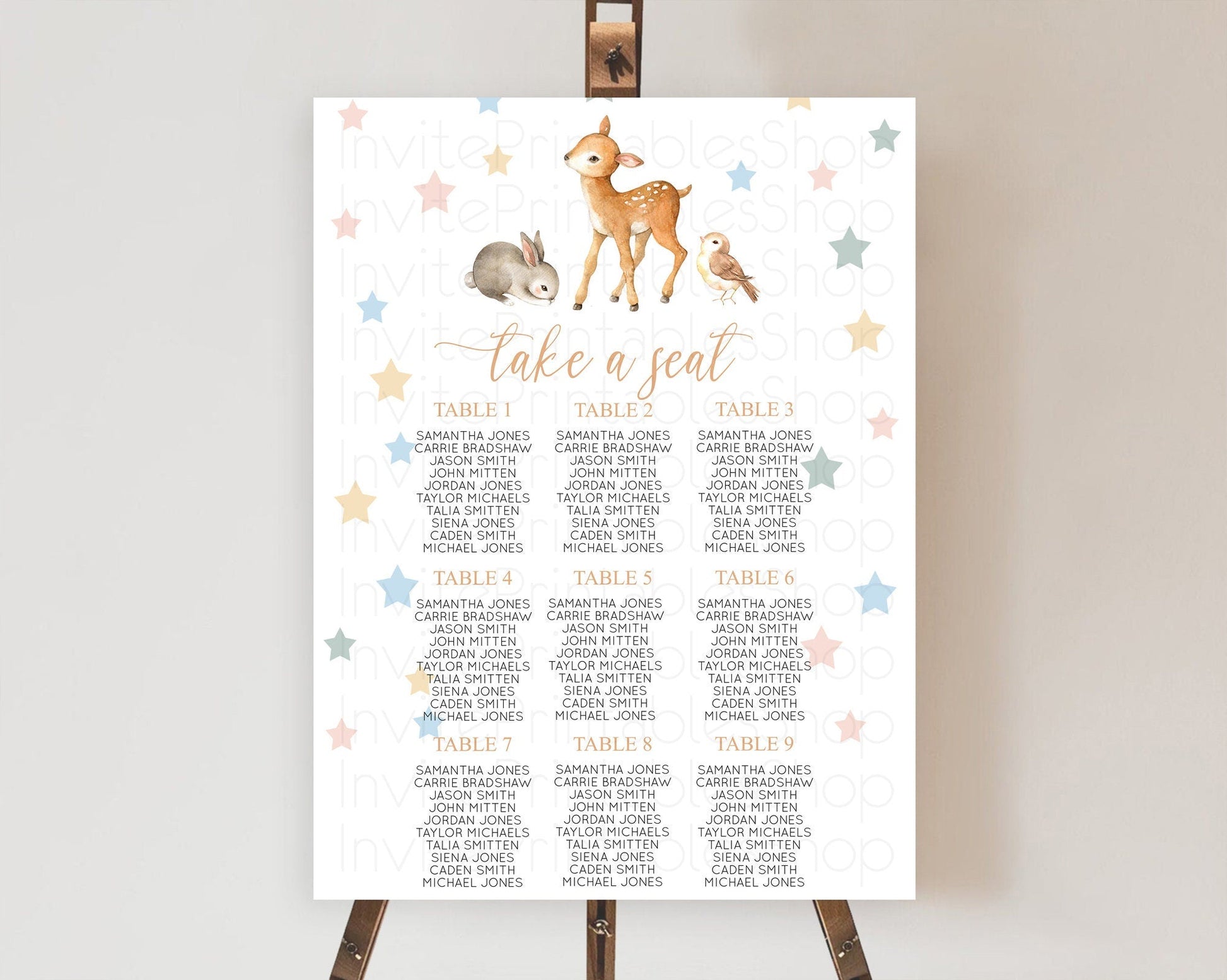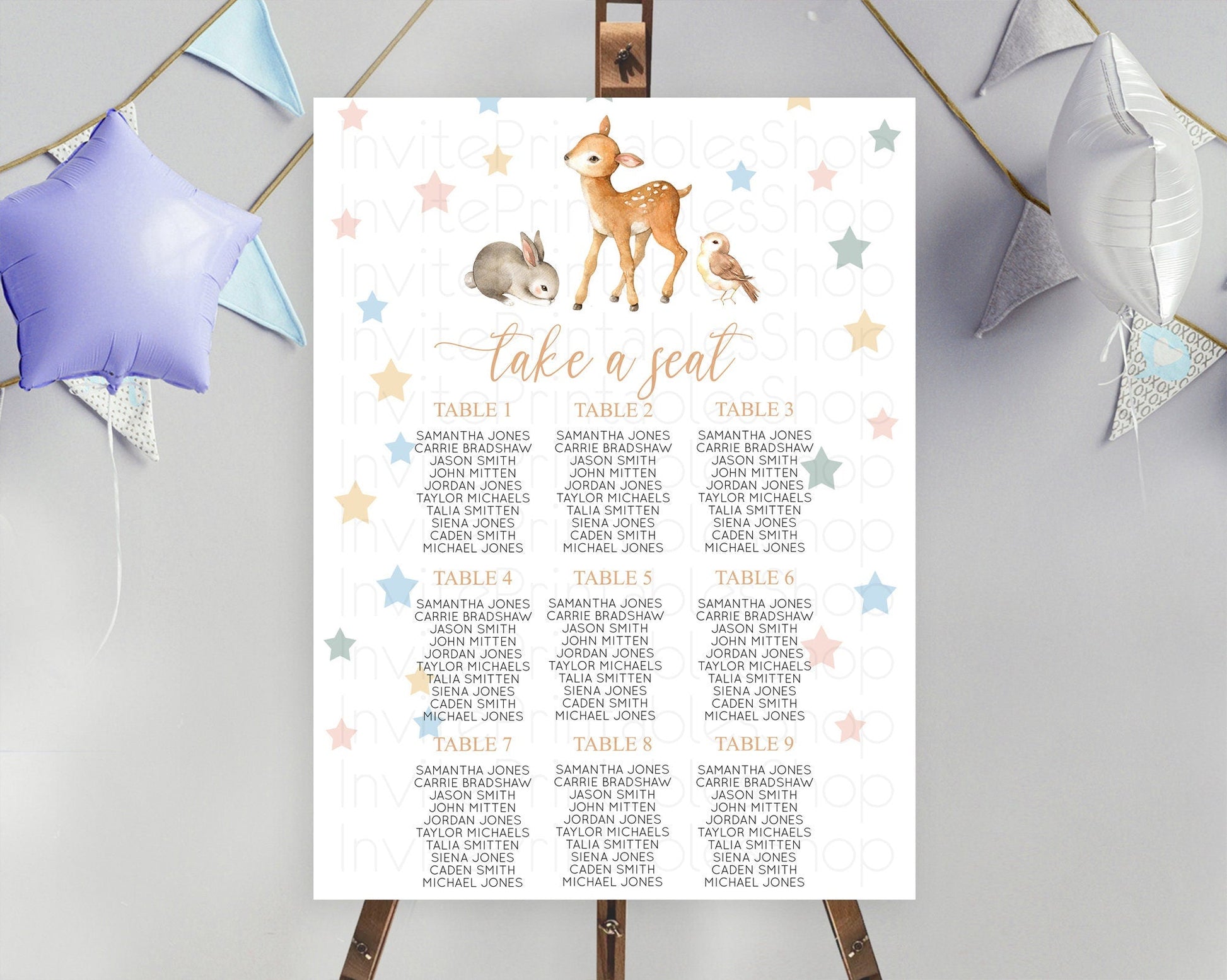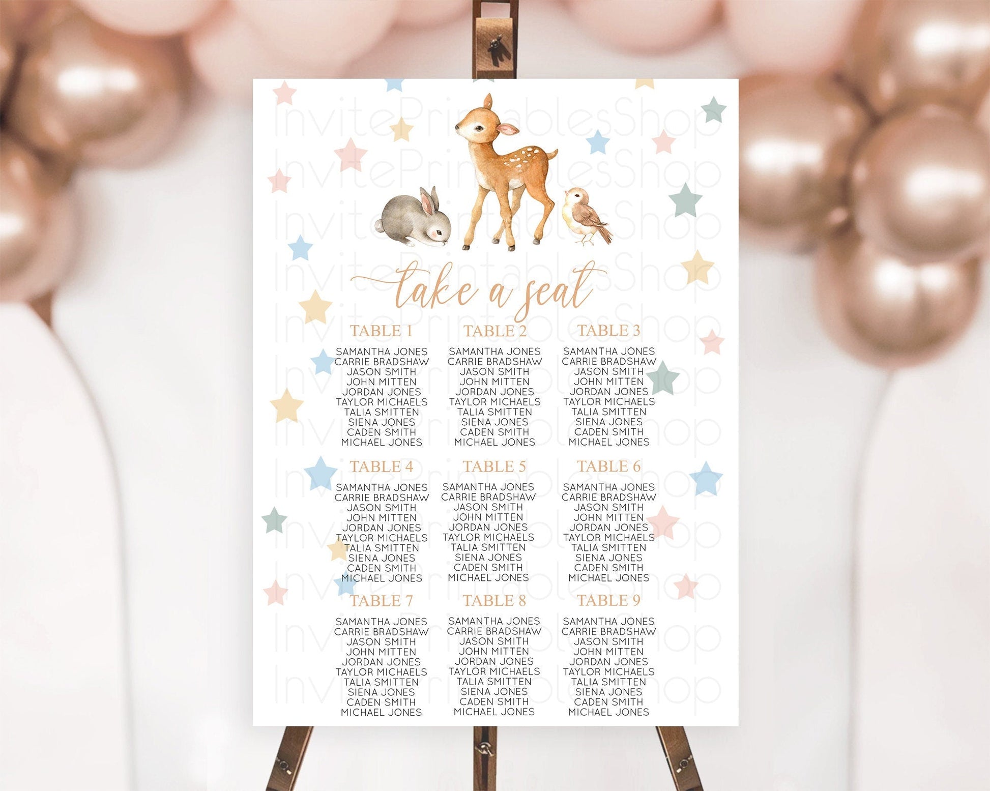 Fawn Seating Chart Deer Seating Chart Enchanted Forest Party Butterfly Pastel Flowers Whimsical Seating Chart Woodland Seating Sign D10918