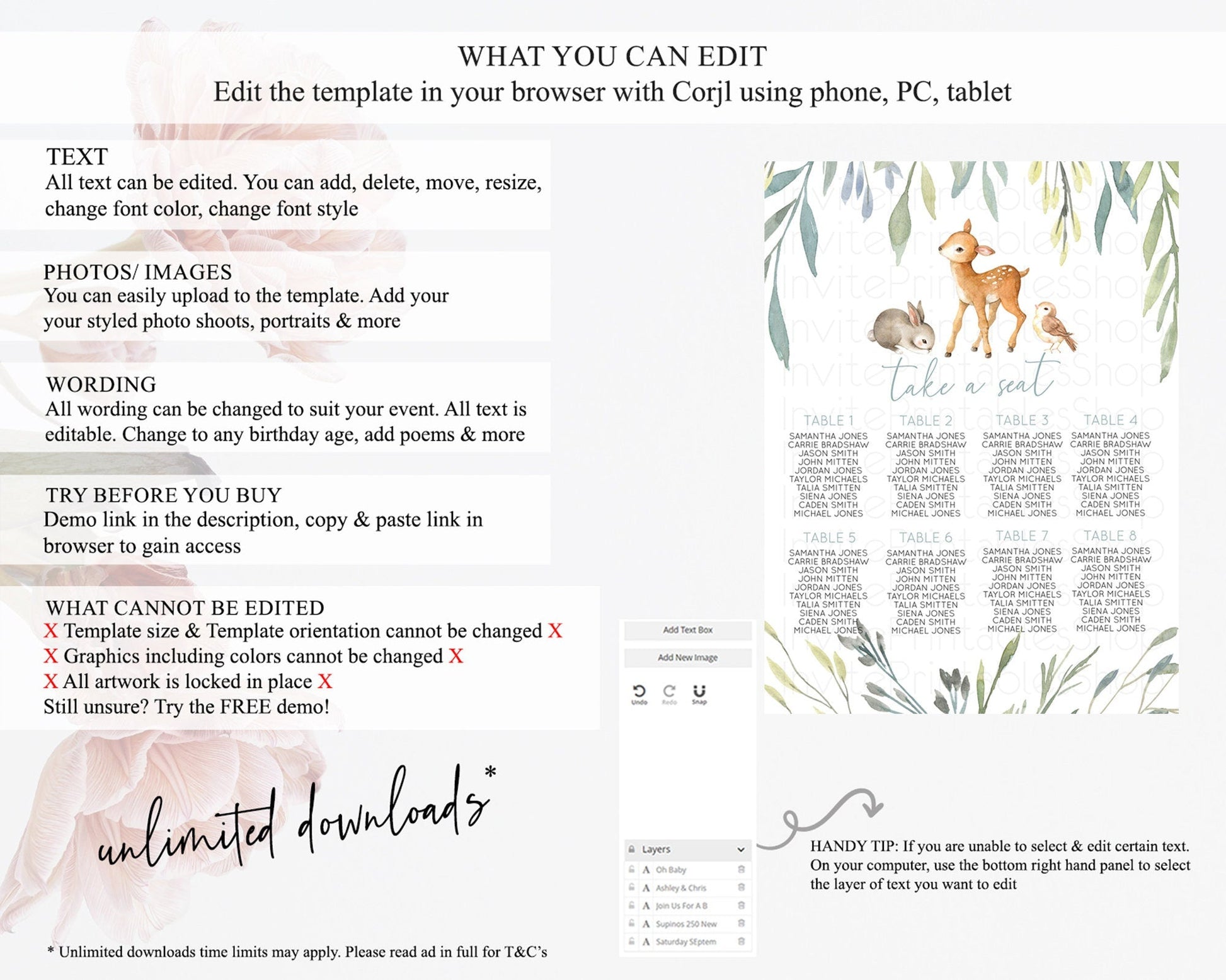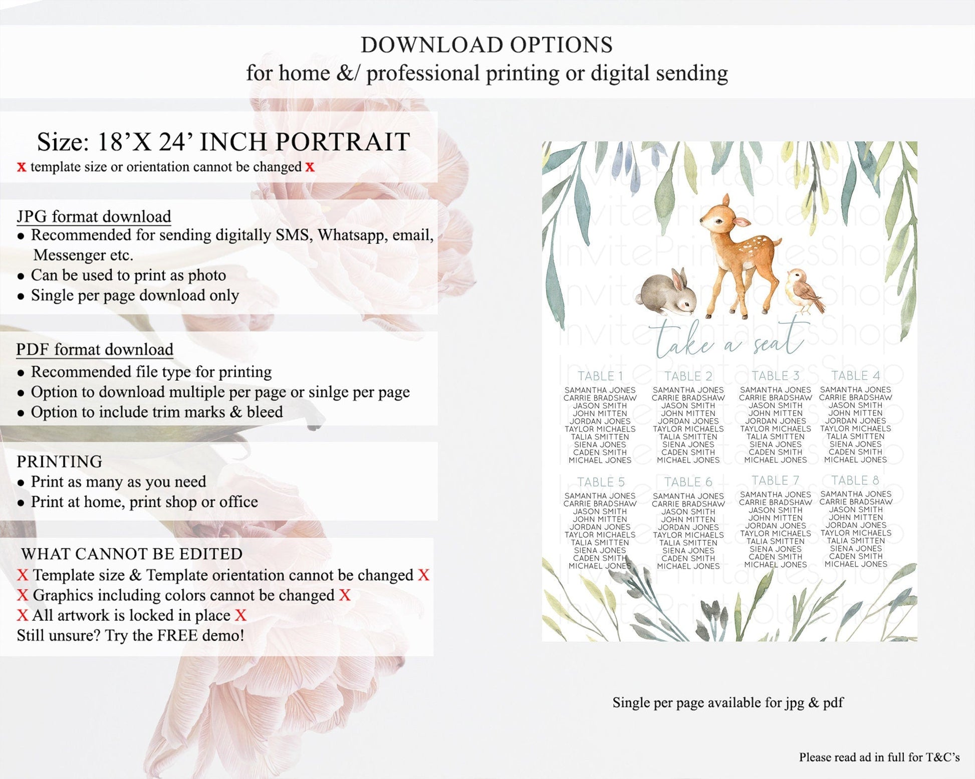 Fawn Seating Chart Deer Seating Chart Enchanted Forest Party Butterfly Pastel Flowers Whimsical Seating Chart Woodland Seating Sign D10919