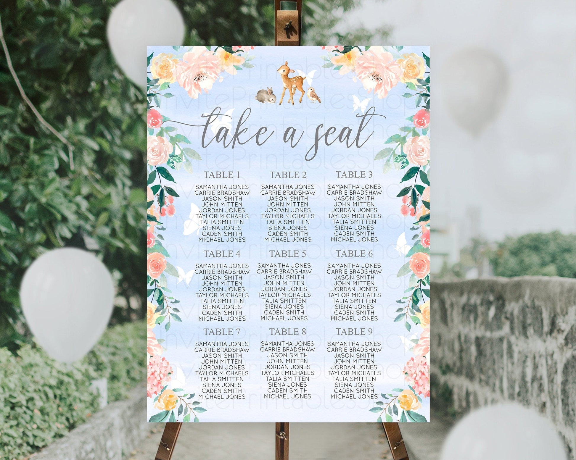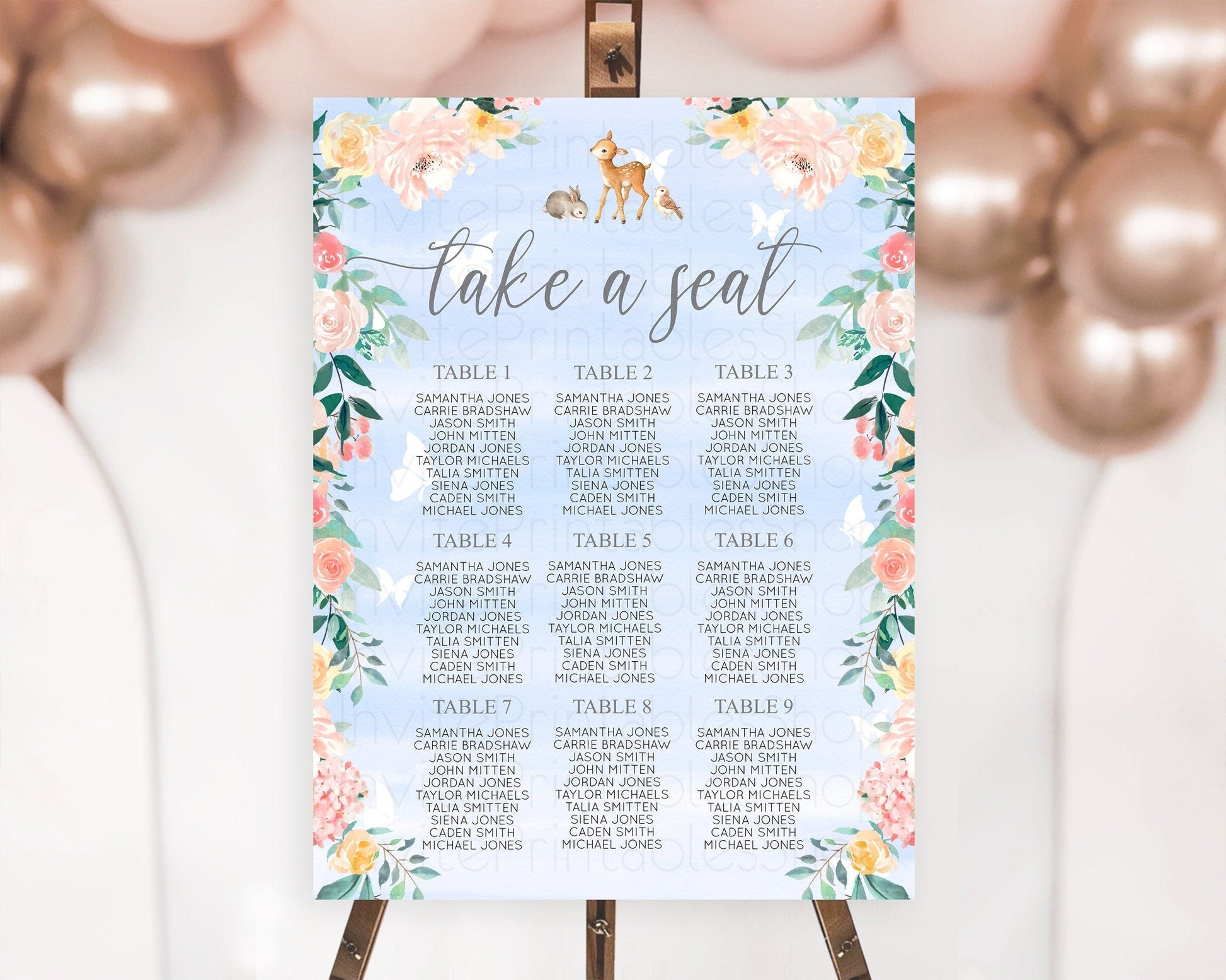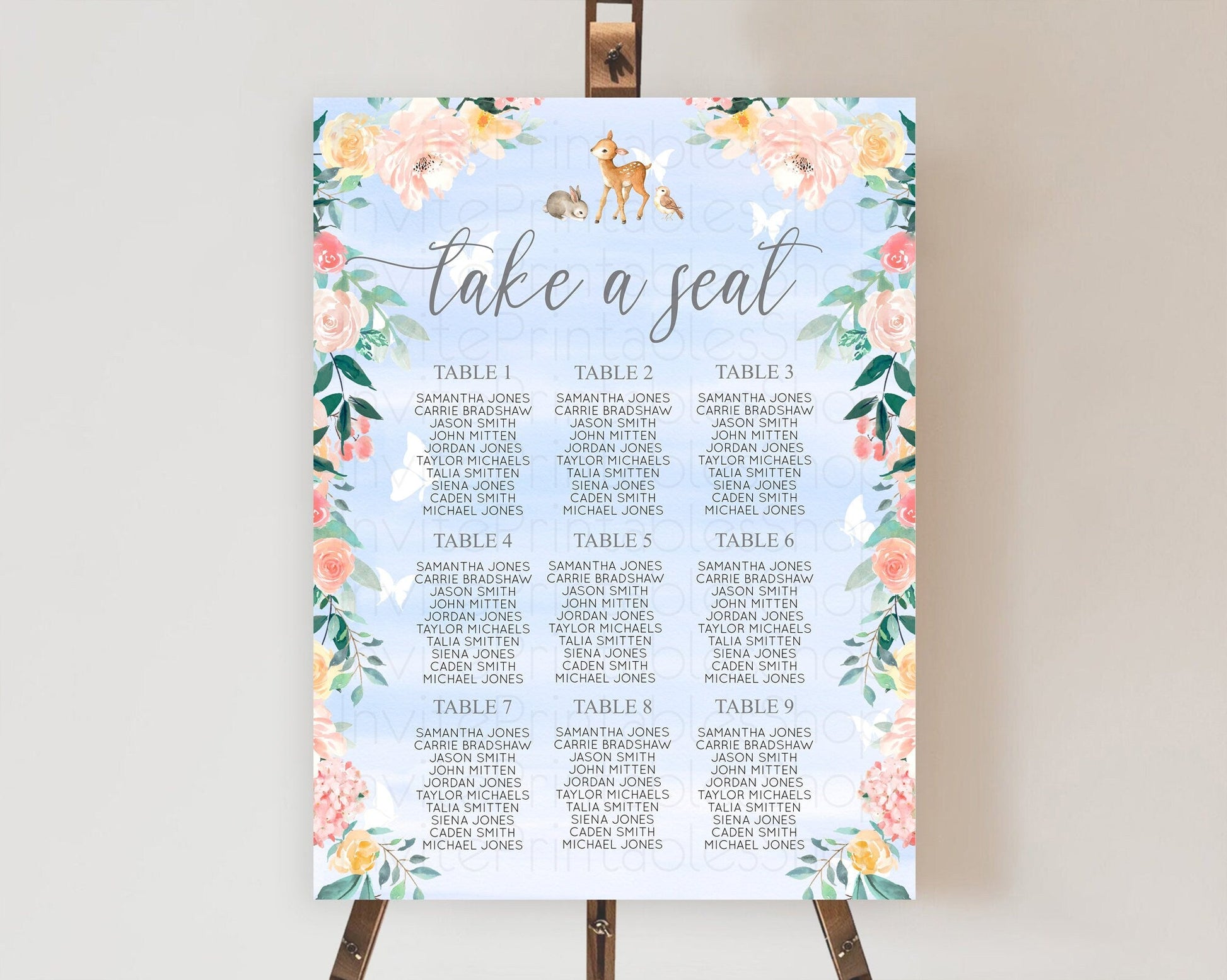 Fawn Seating Chart Deer Seating Chart Enchanted Forest Party Butterfly Pastel Flowers Whimsical Seating Chart Woodland Seating Sign D10920