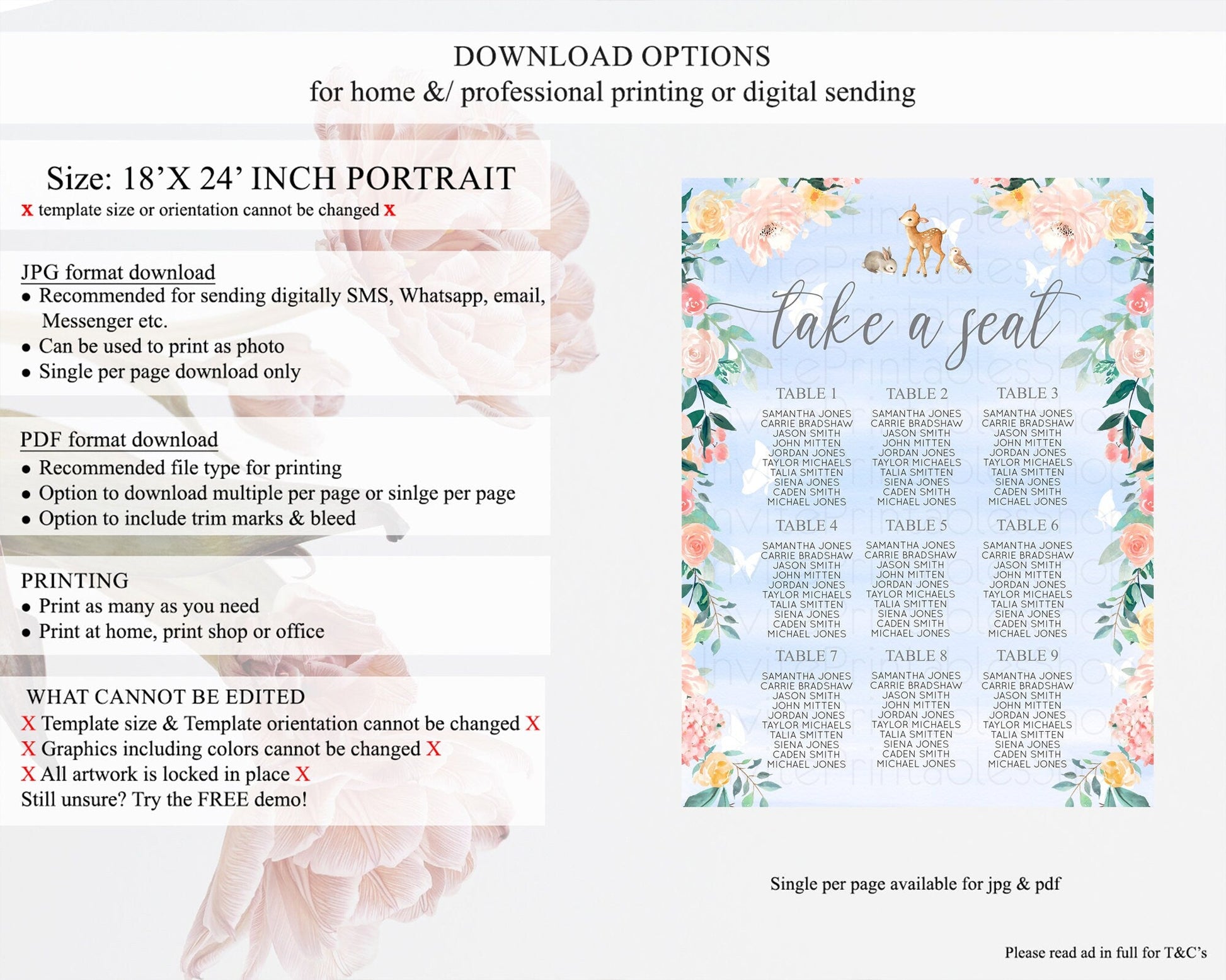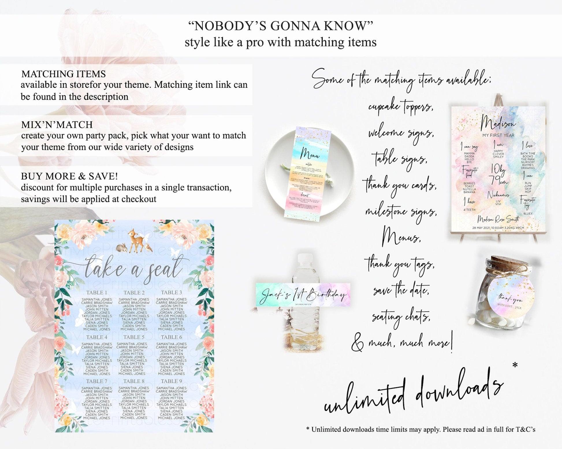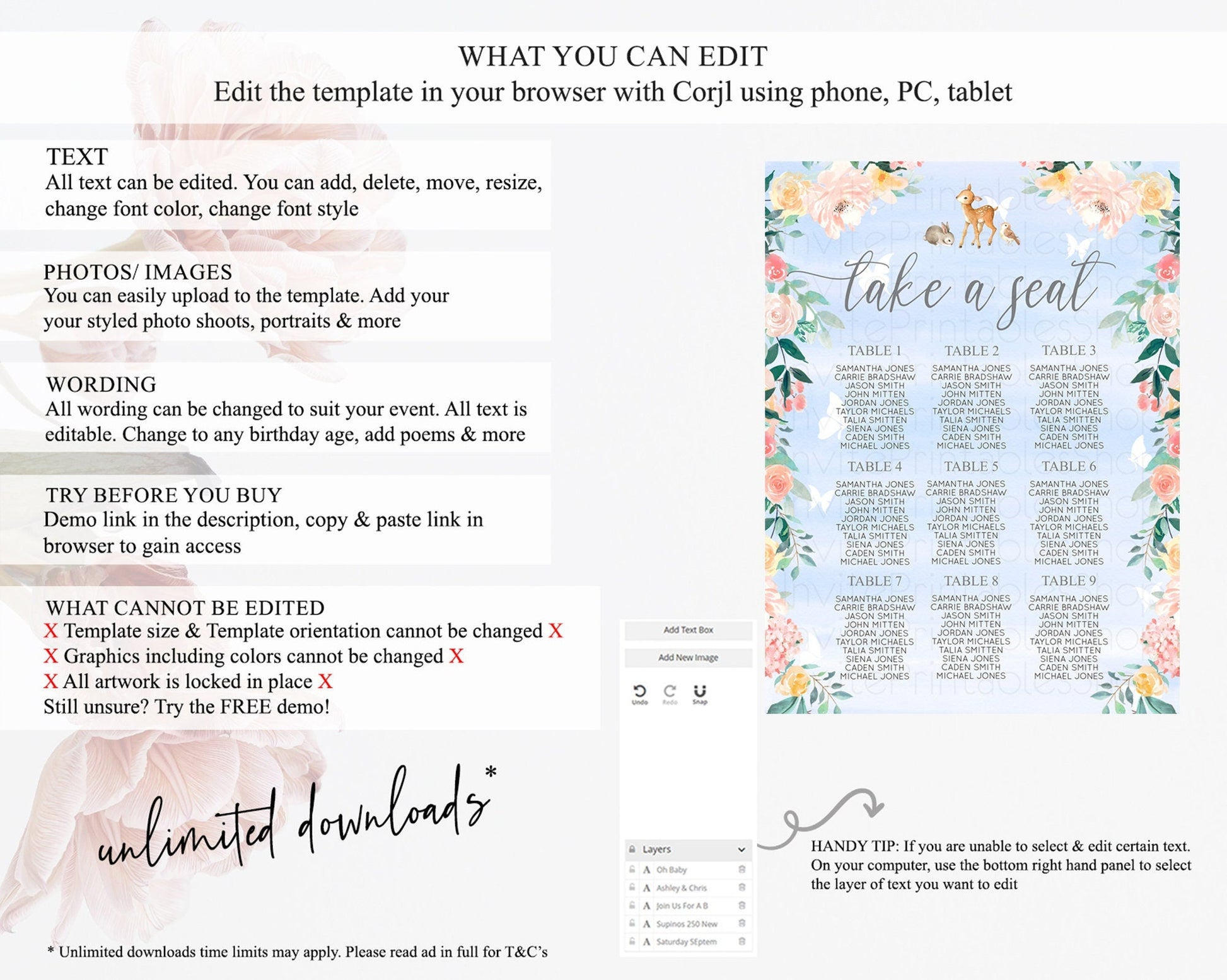Fawn Seating Chart Deer Seating Chart Enchanted Forest Party Butterfly Pastel Flowers Whimsical Seating Chart Woodland Seating Sign D10920
