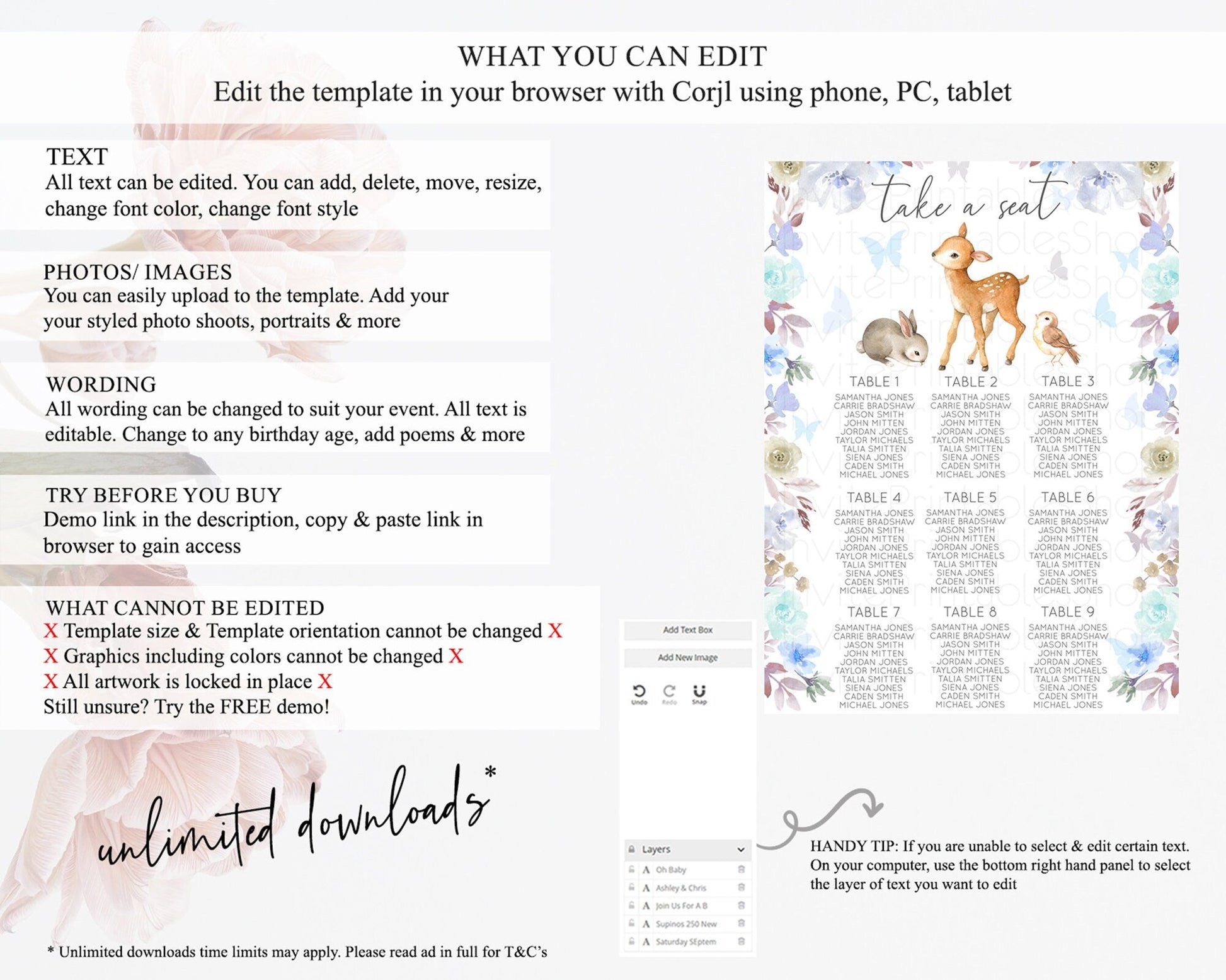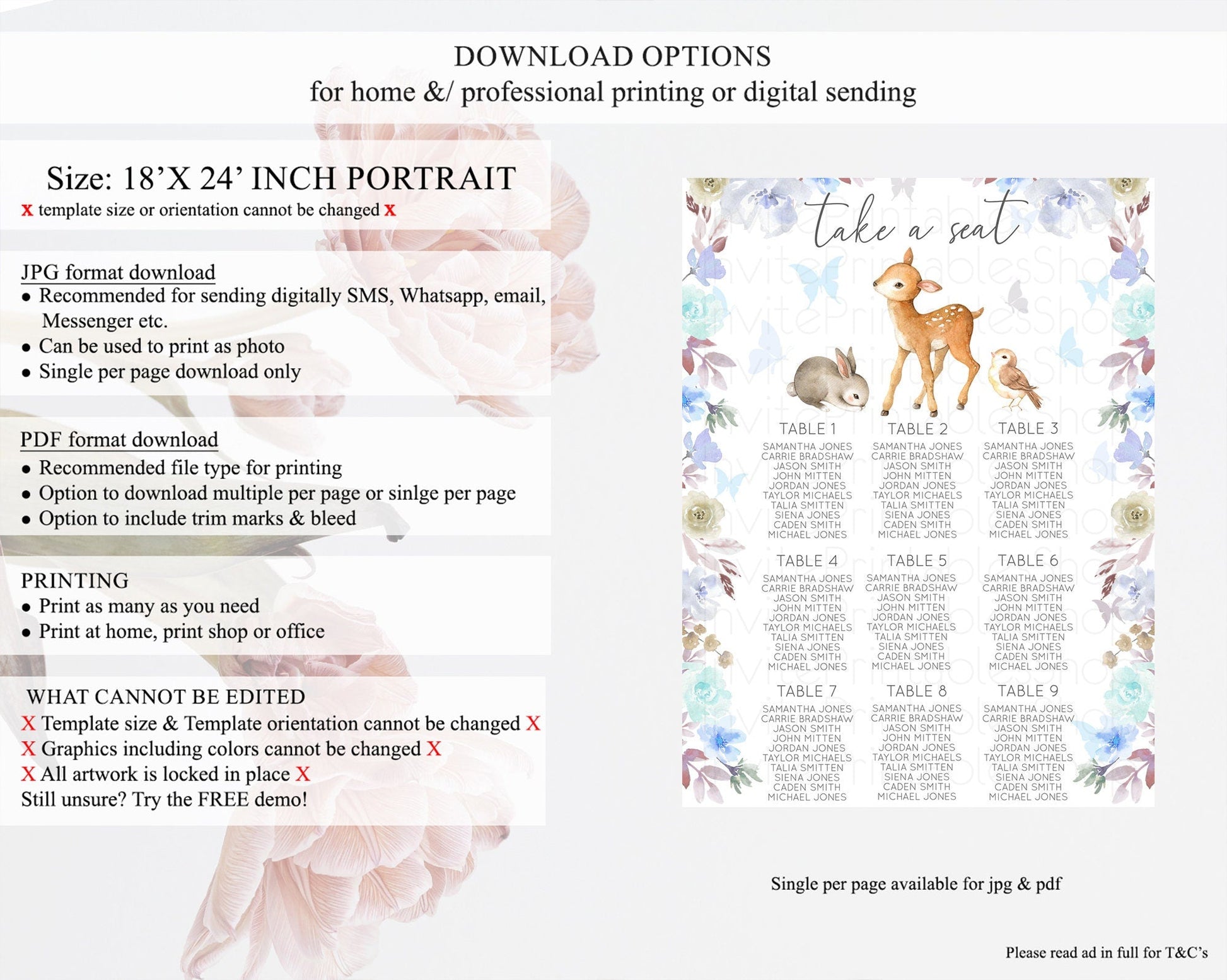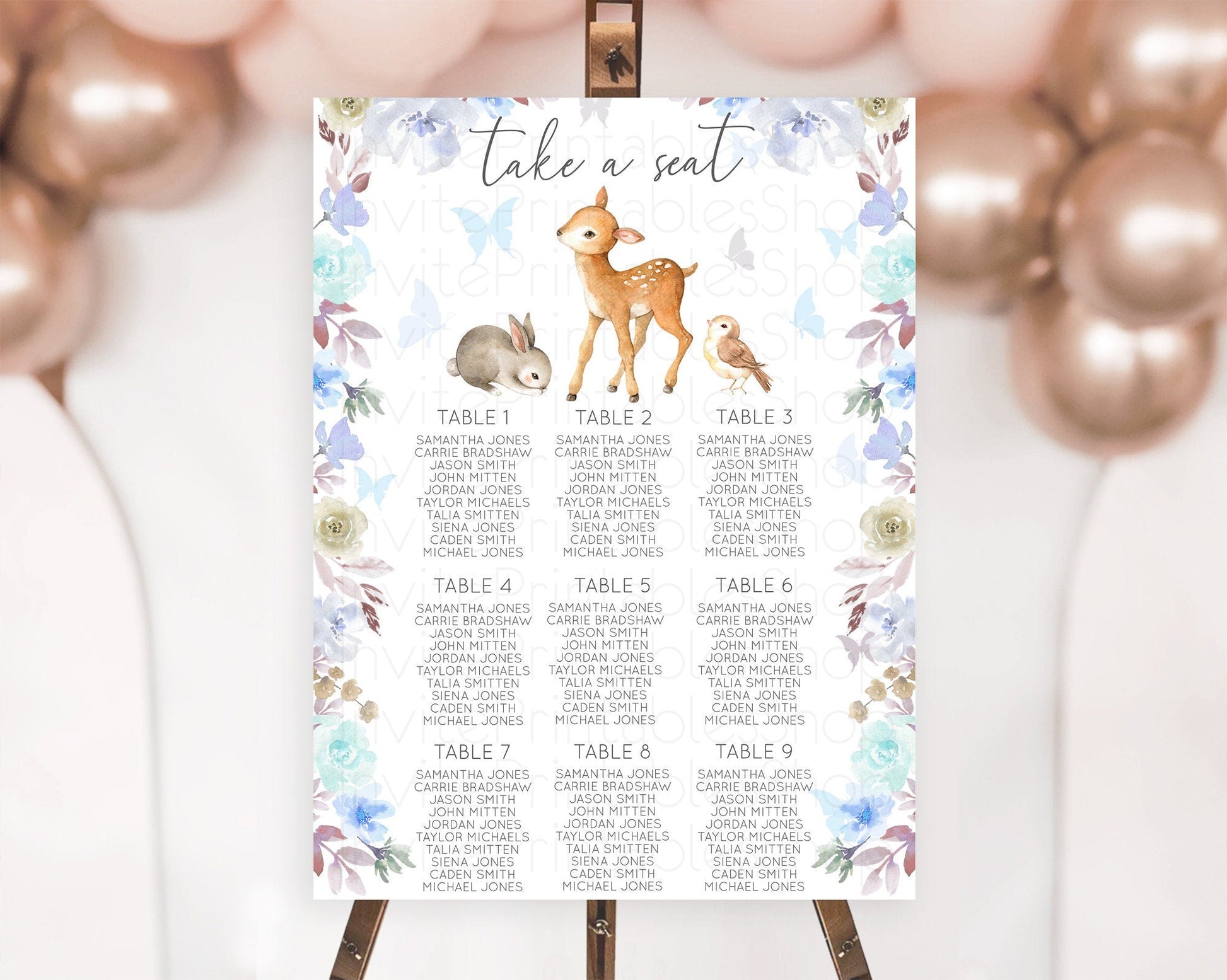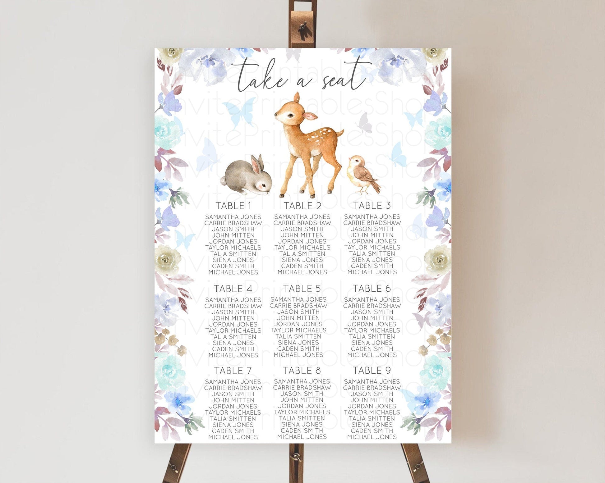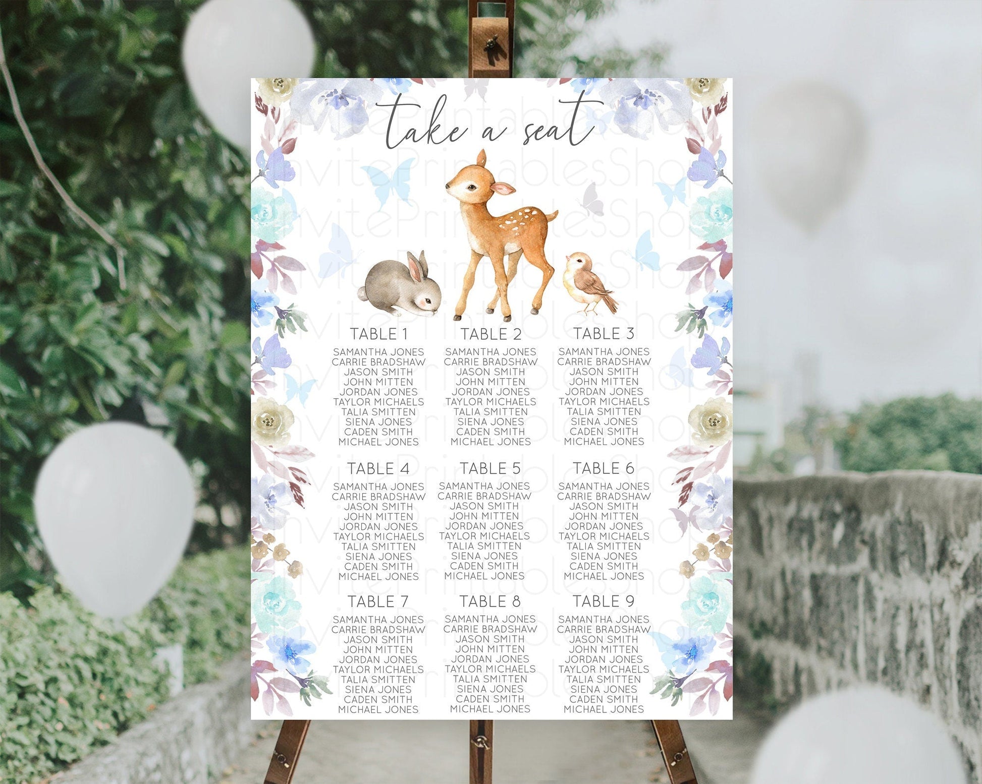 Fawn Seating Chart Deer Seating Chart Enchanted Forest Party Butterfly Pastel Flowers Whimsical Seating Chart Woodland Seating Sign D10929
