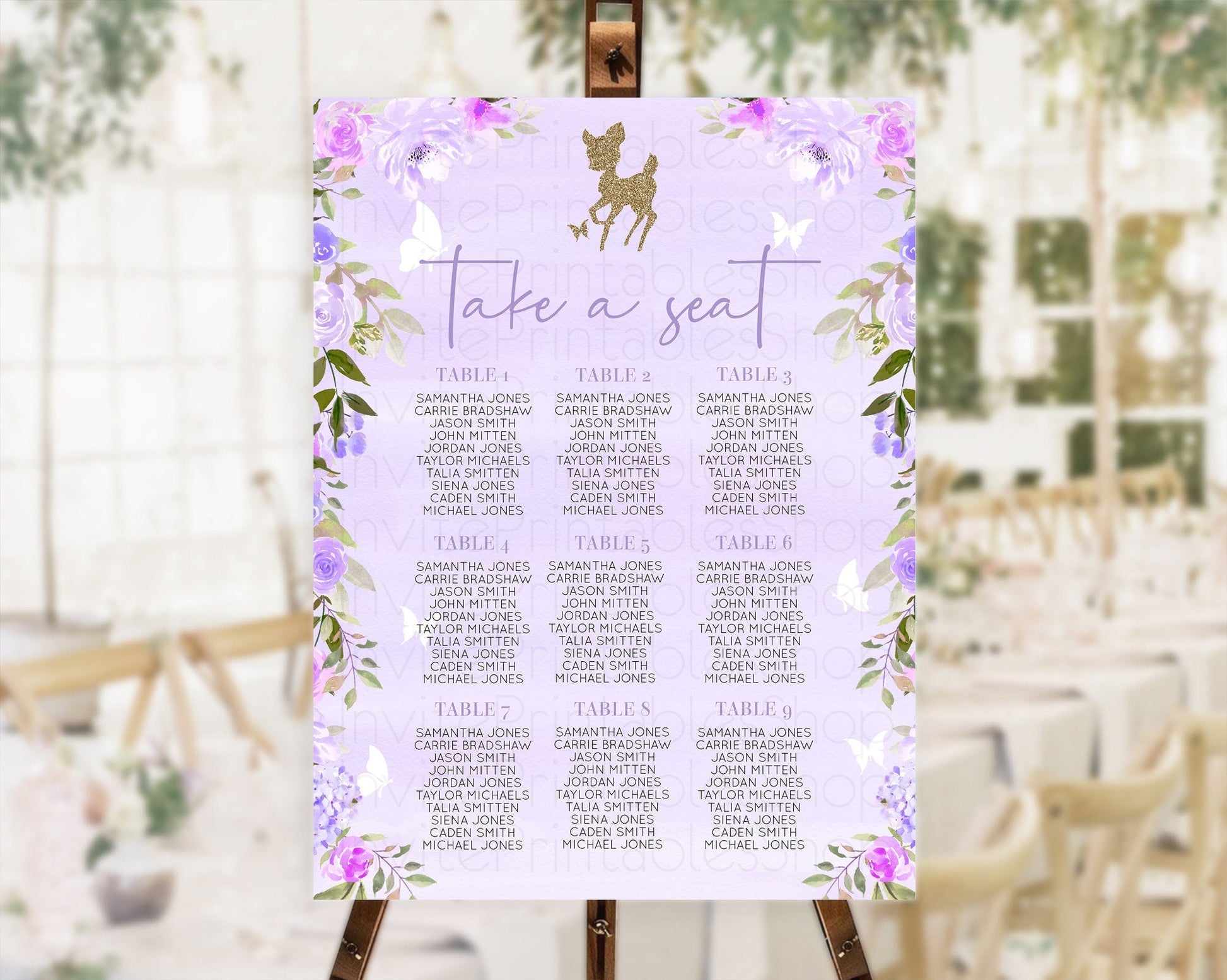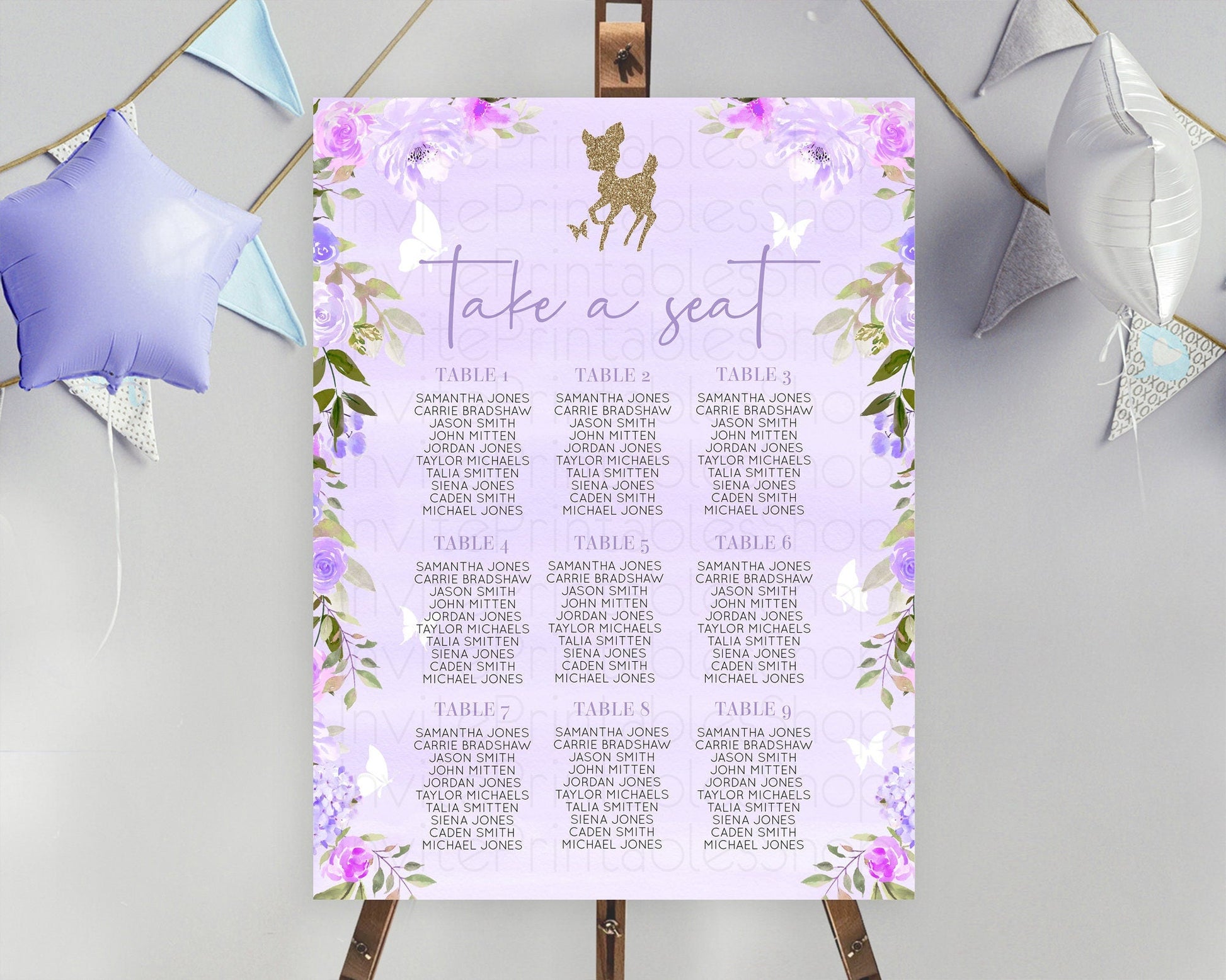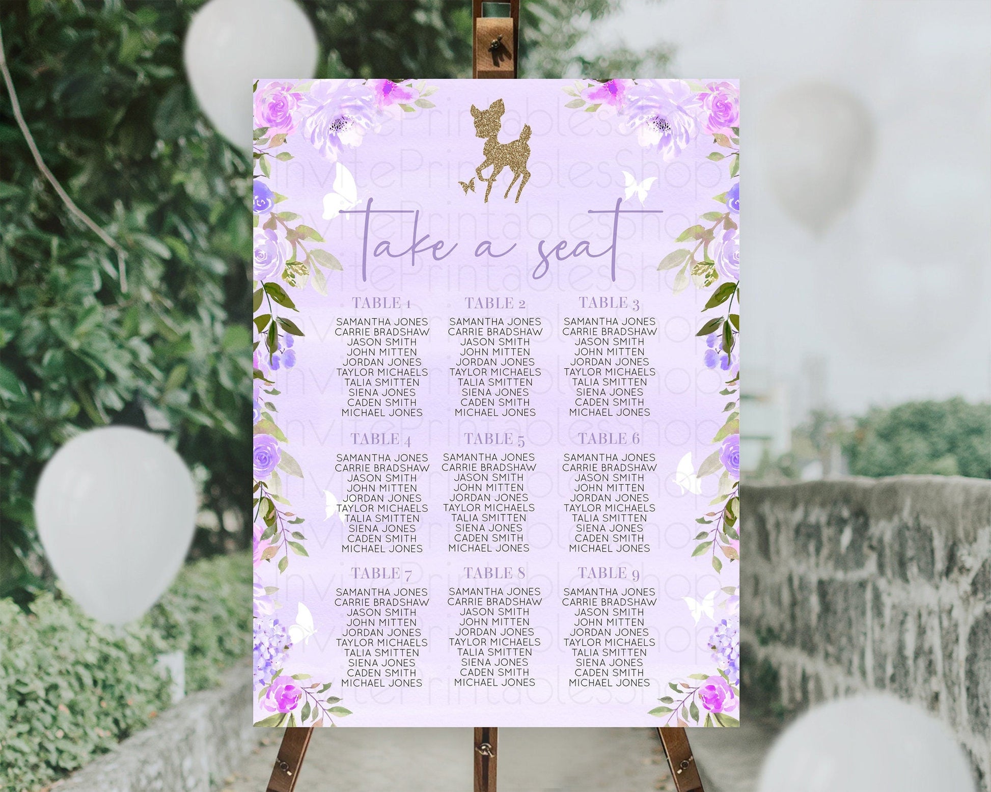 Fawn Seating Chart Deer Seating Chart Enchanted Forest Party Butterfly Pastel Flowers Whimsical Seating Chart Woodland Seating Sign D10963
