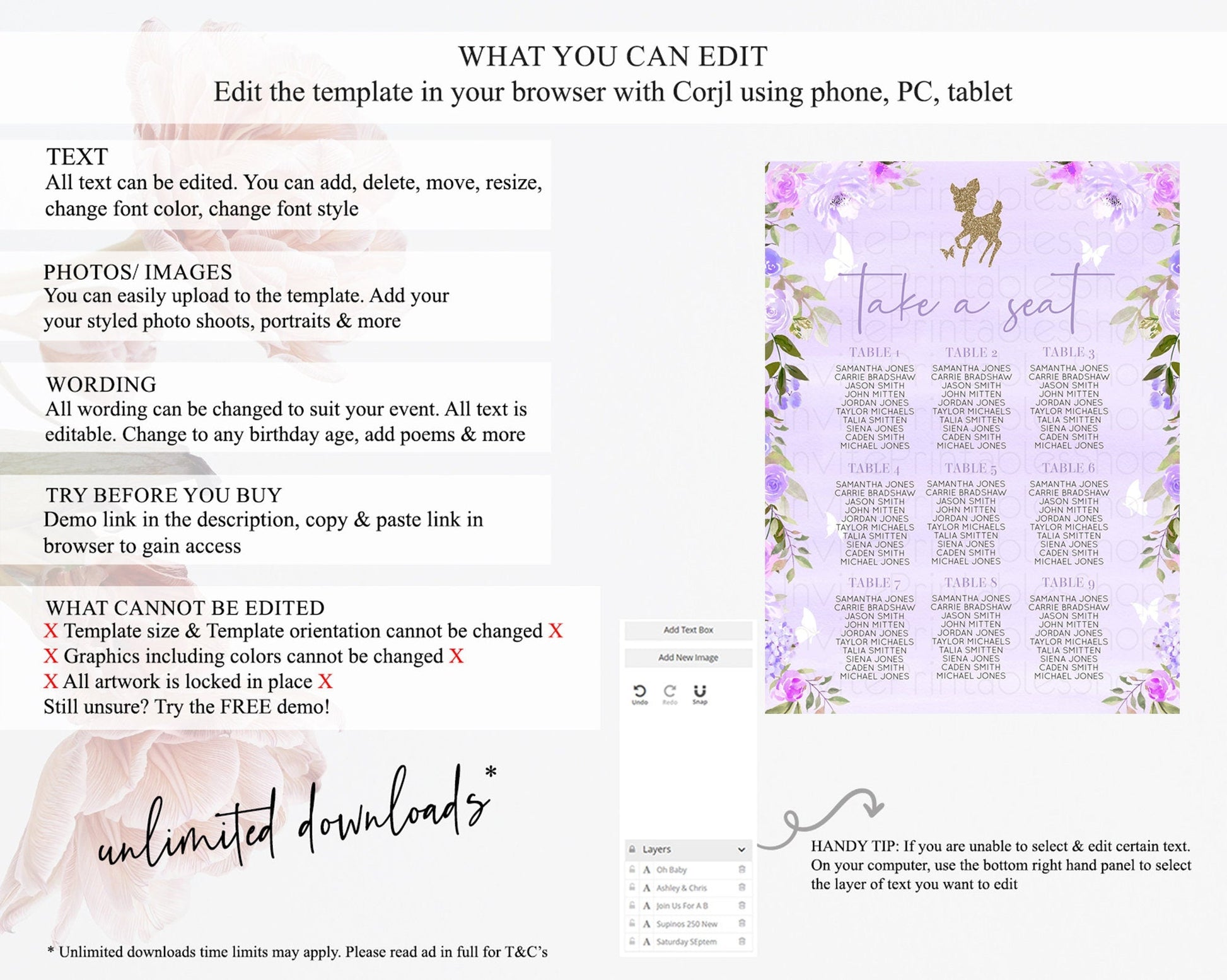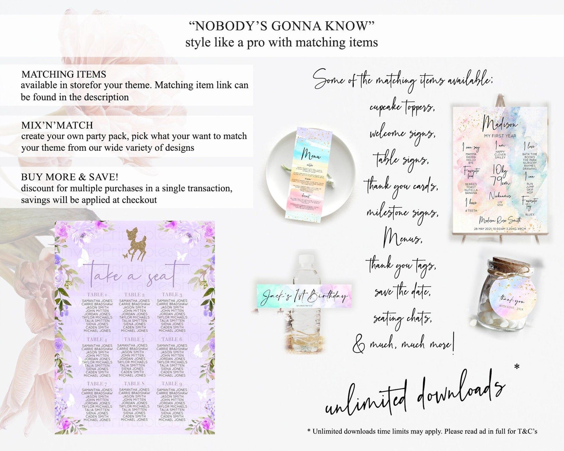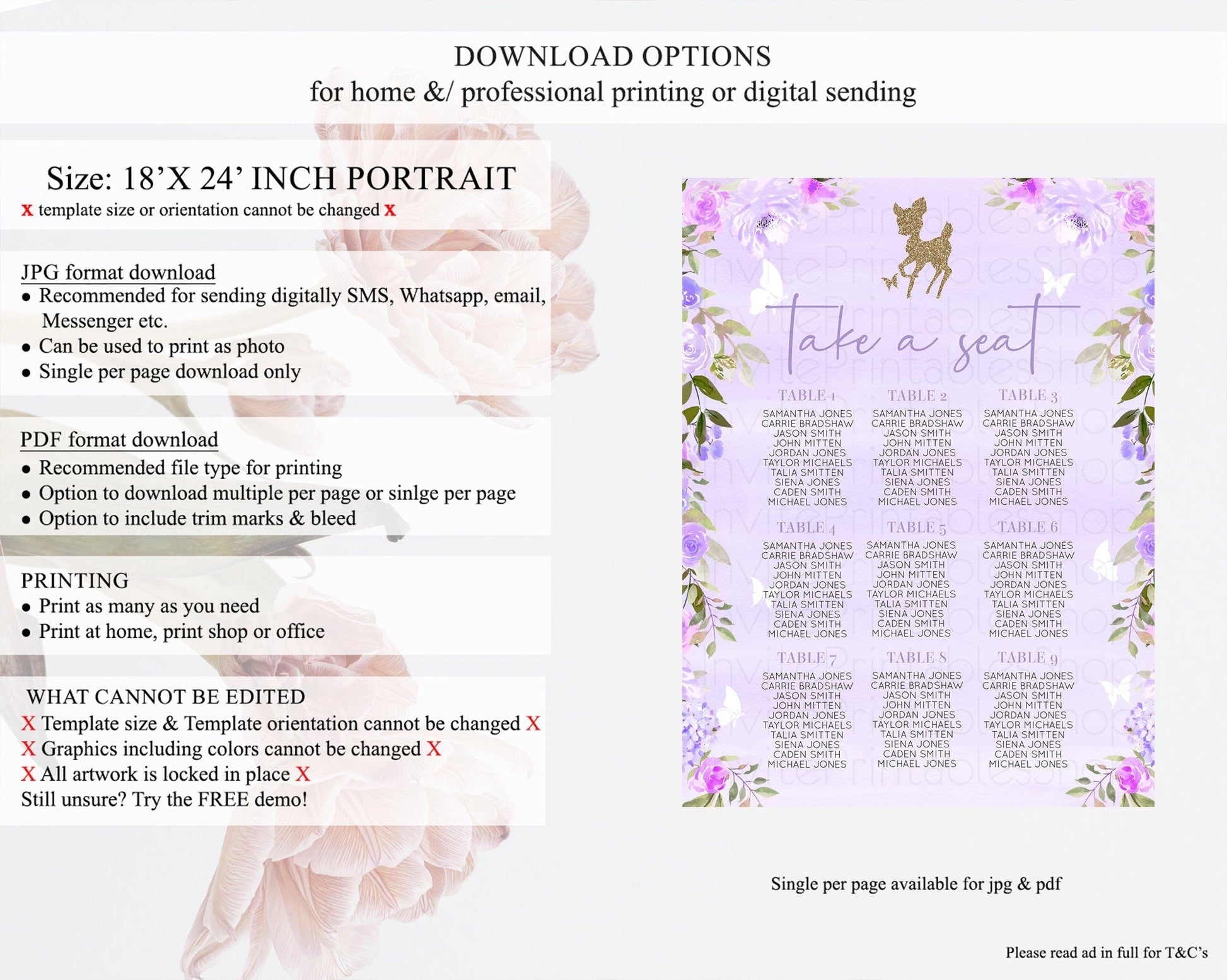 Fawn Seating Chart Deer Seating Chart Enchanted Forest Party Butterfly Pastel Flowers Whimsical Seating Chart Woodland Seating Sign D10963