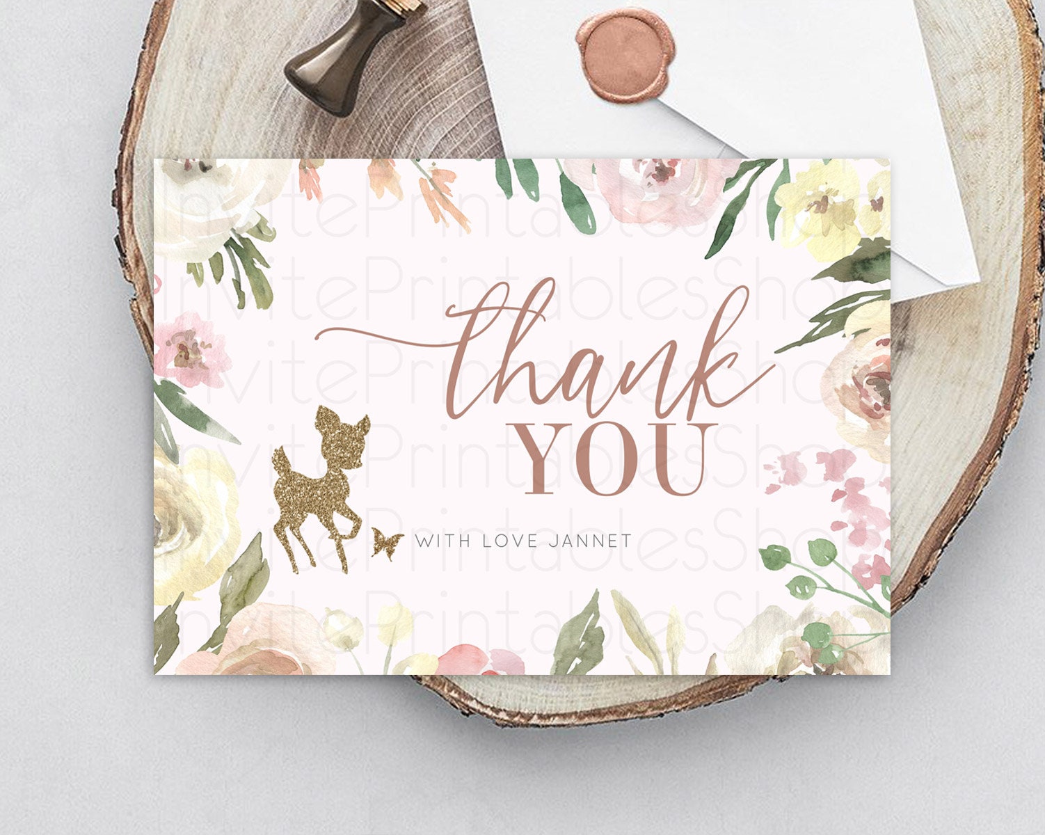 Fawn Thank You Deer Thank You Card Pastel Floral Deer Birthday Thank You Card Enchanted Forest Butterfly Deer Teacher Thank You Card D10193