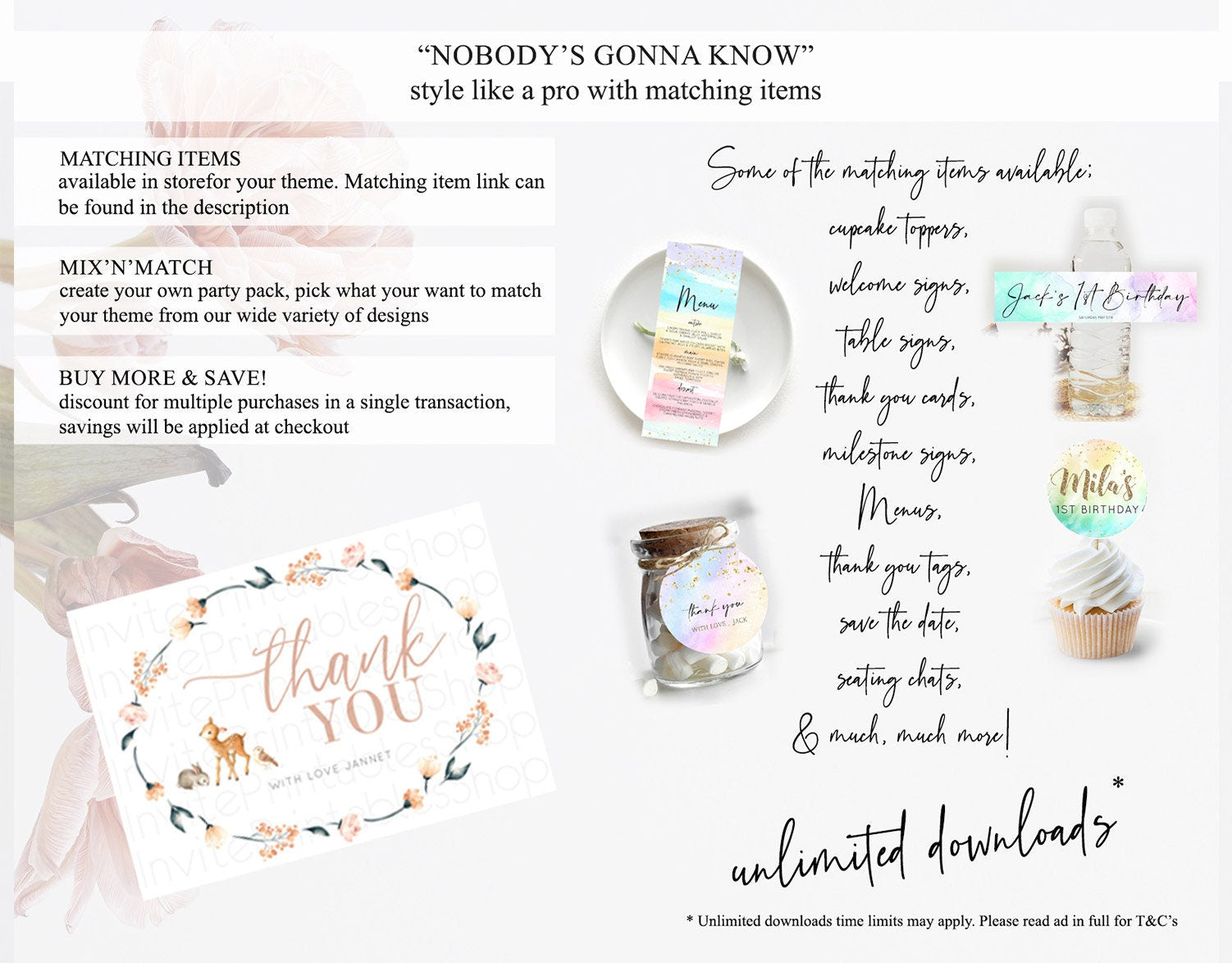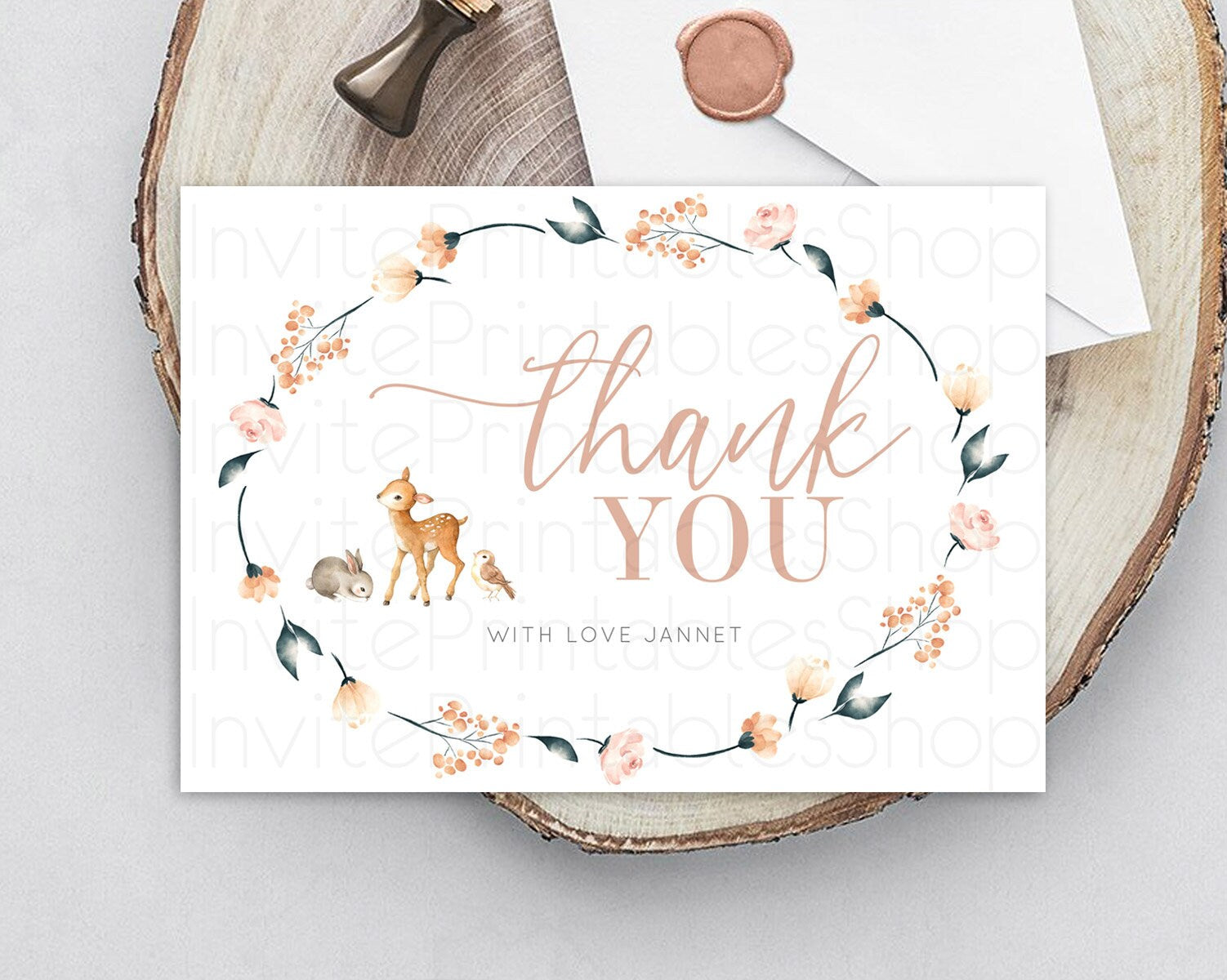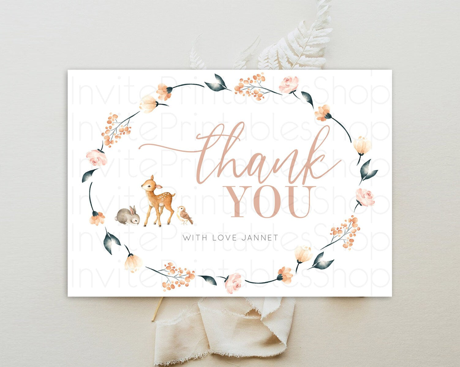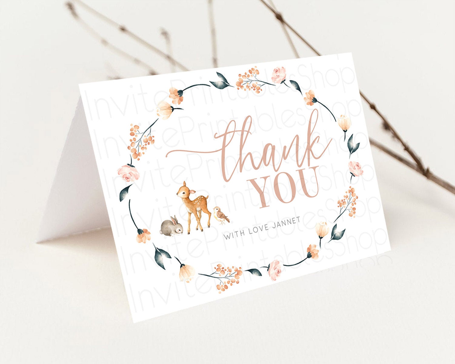 Fawn Thank You Deer Thank You Card Pastel Floral Deer Birthday Thank You Card Enchanted Forest Butterfly Deer Teacher Thank You Card D10241