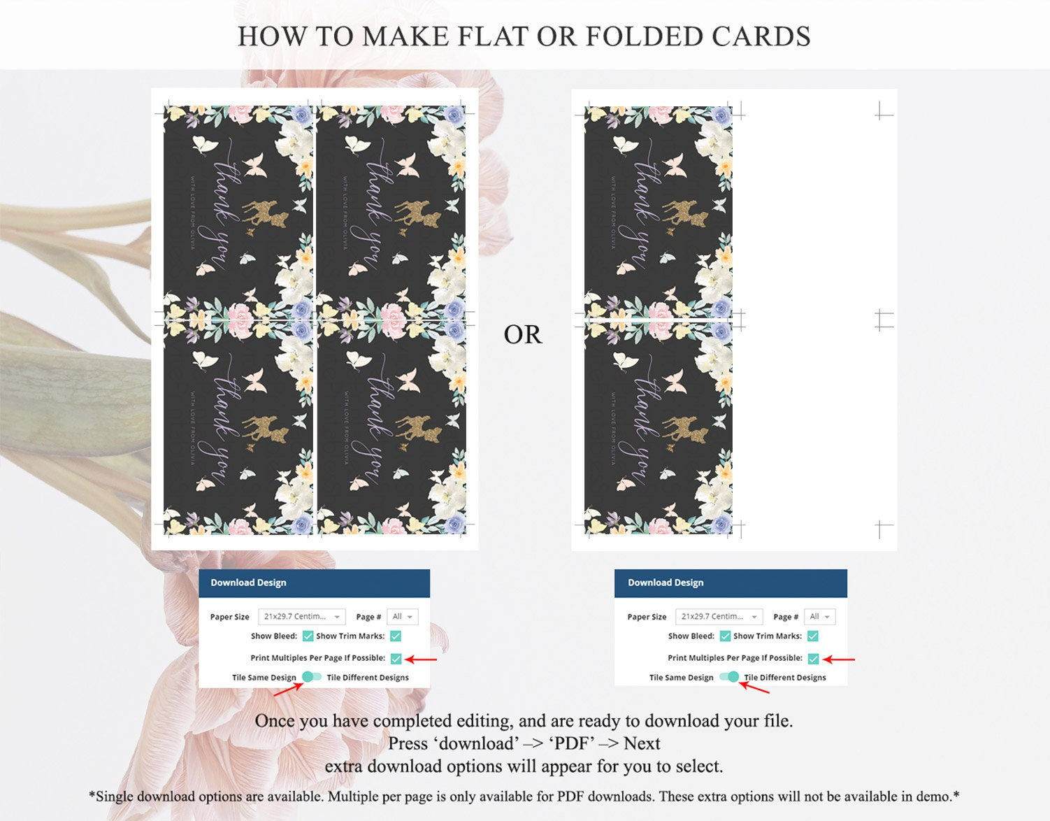 • Custom changes to artwork are not provided on existing templates.