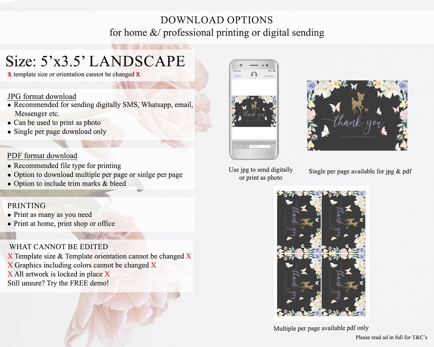 • Template size & orientation cannot be changed. Please use the demo link to confirm this product suits your needs.
