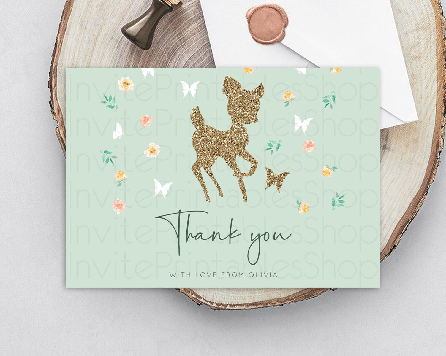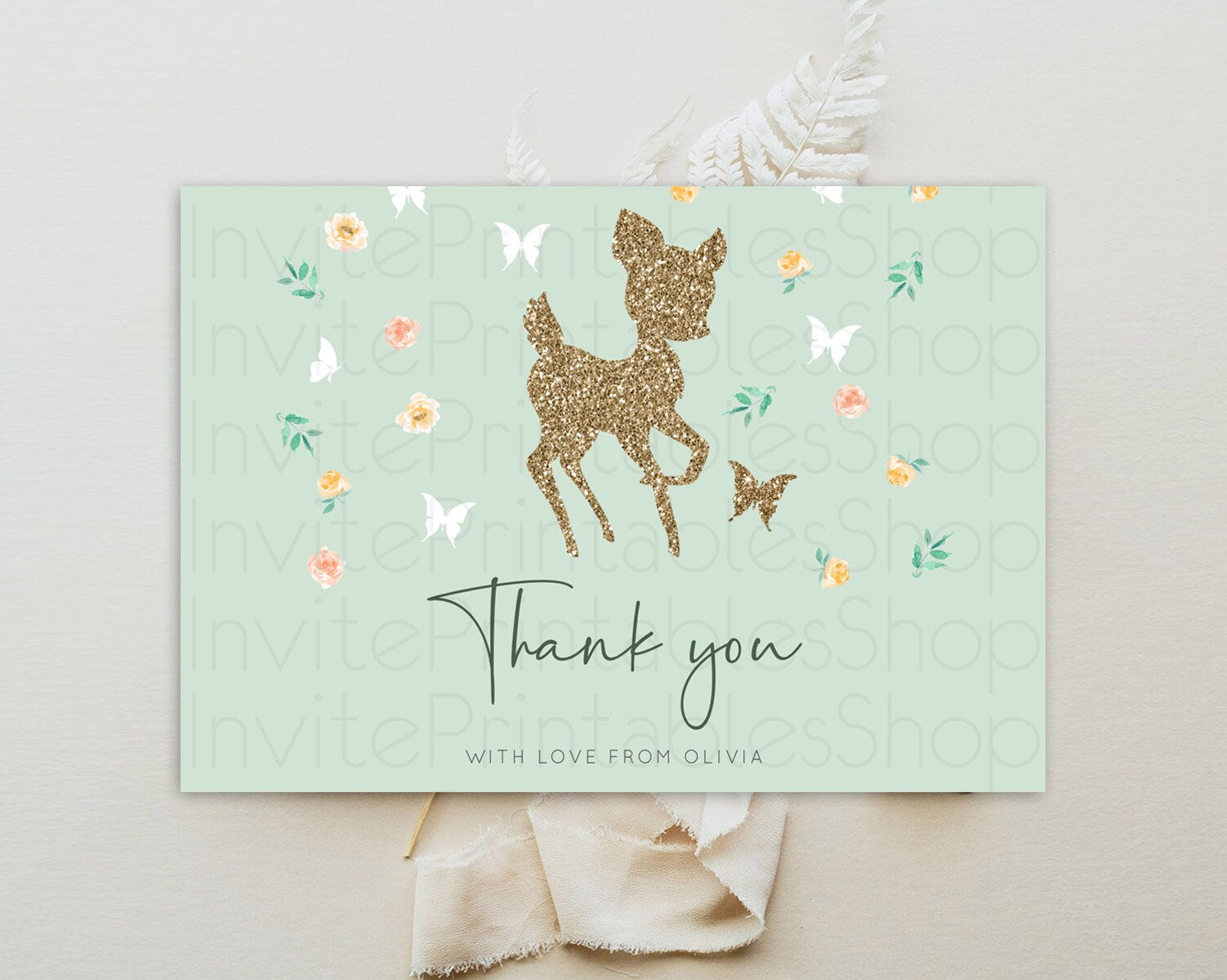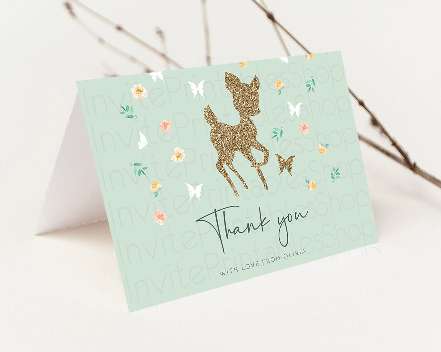 Fawn Thank You Deer Thank You Card Pastel Floral Deer Birthday Thank You Card Enchanted Forest Butterfly Deer Teacher Thank You Card D10385