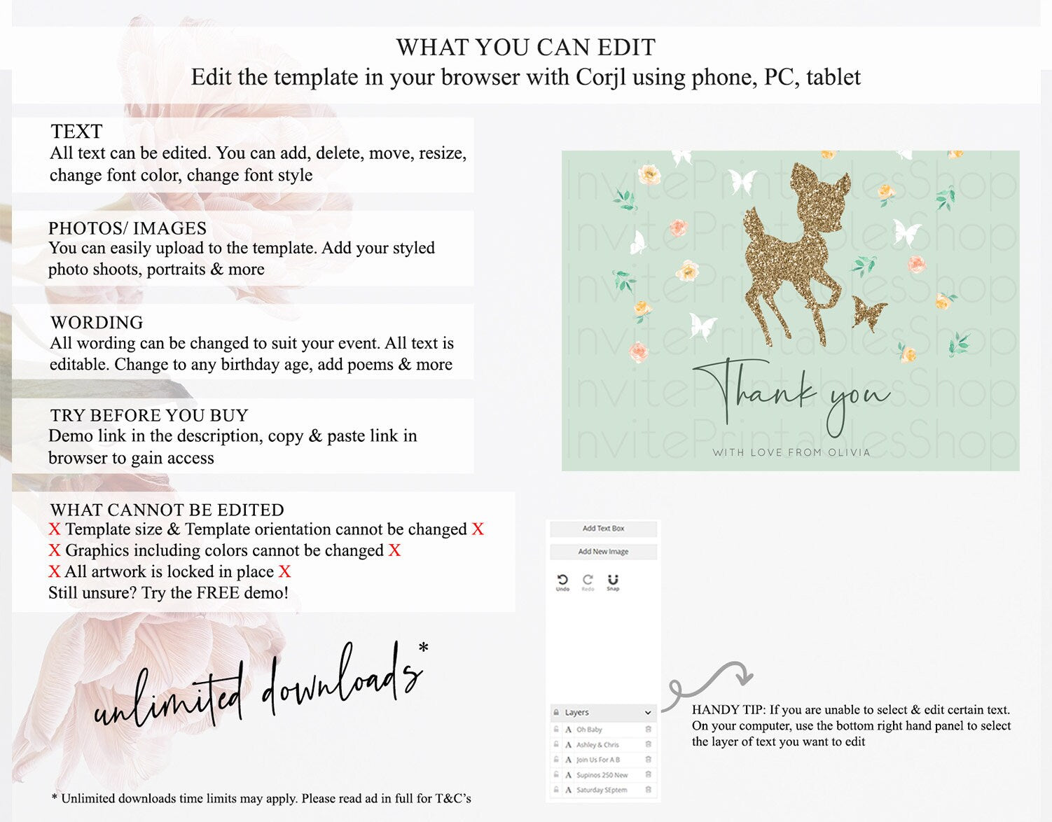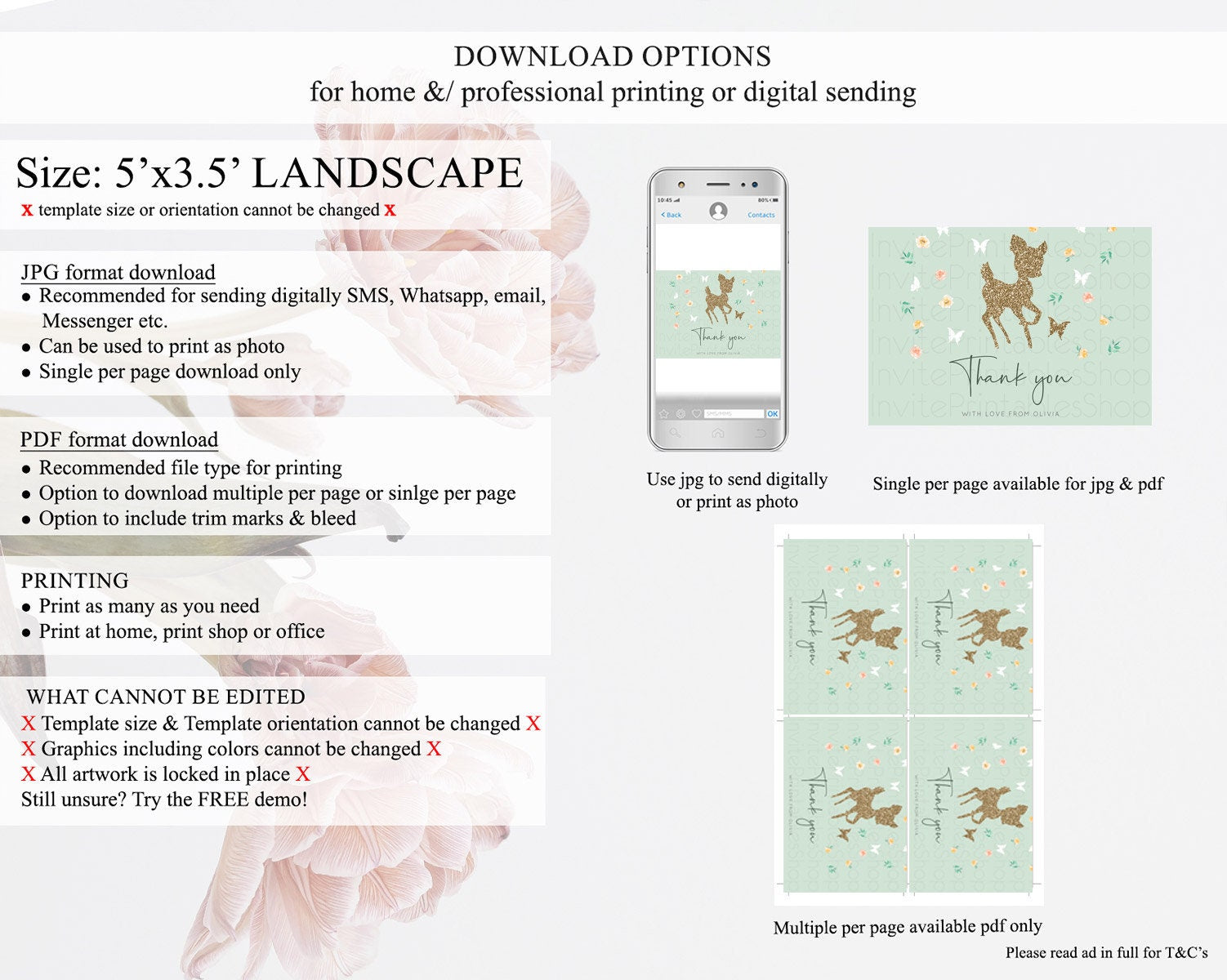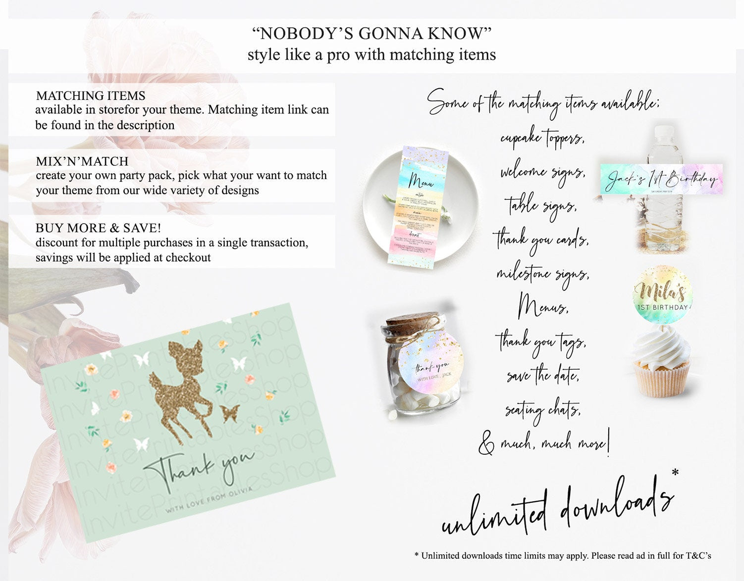 Fawn Thank You Deer Thank You Card Pastel Floral Deer Birthday Thank You Card Enchanted Forest Butterfly Deer Teacher Thank You Card D10385