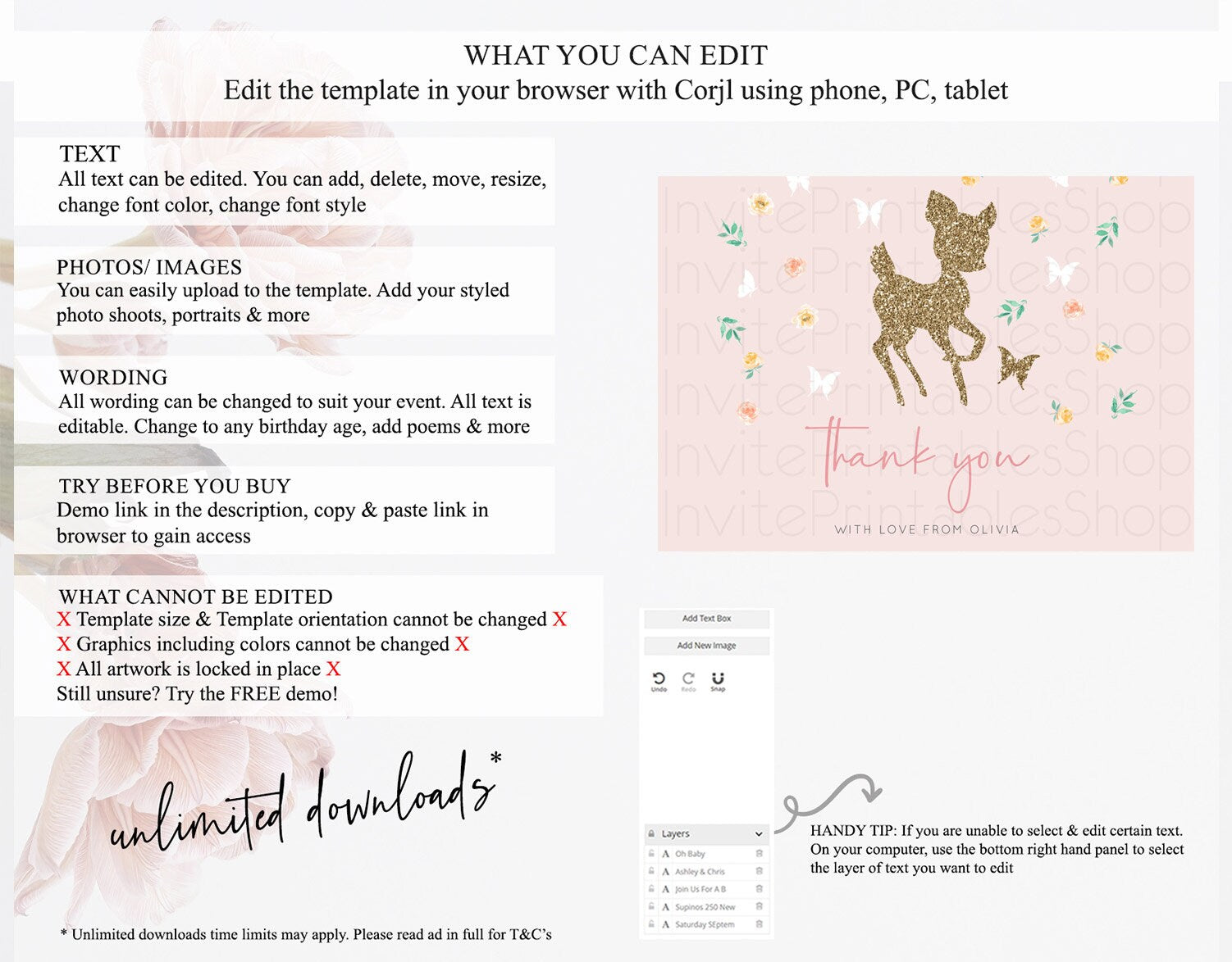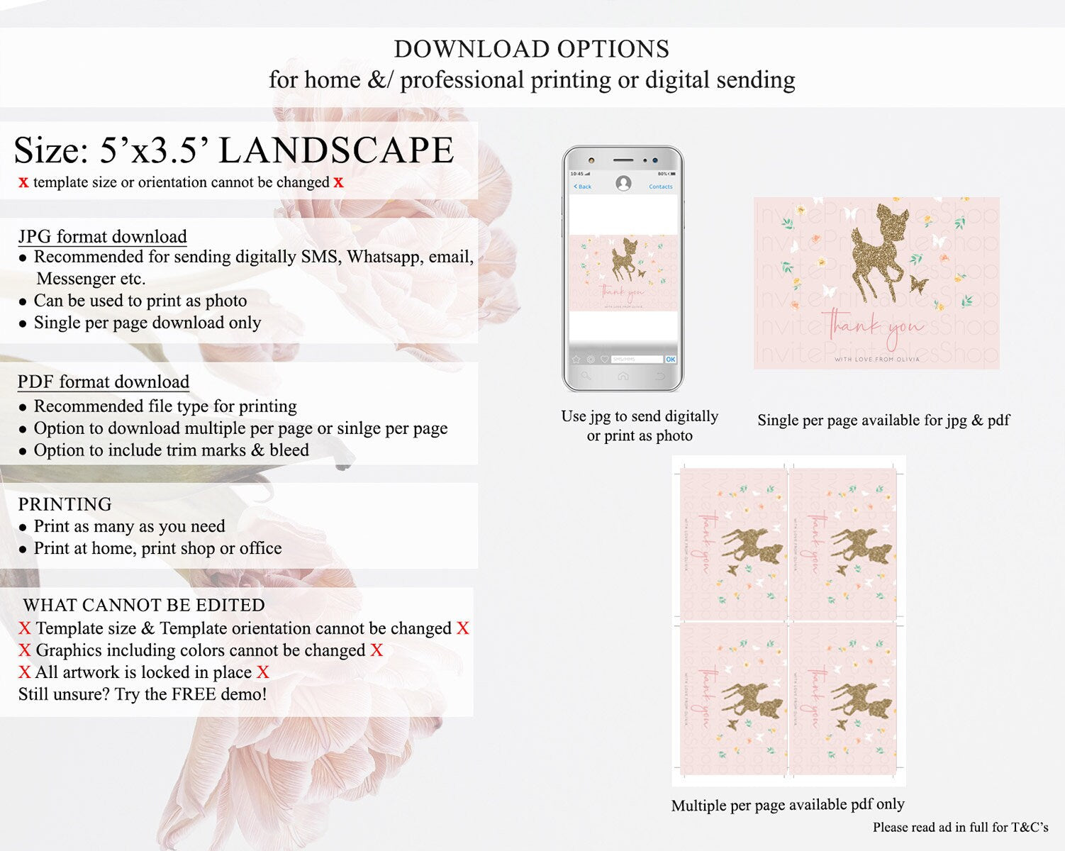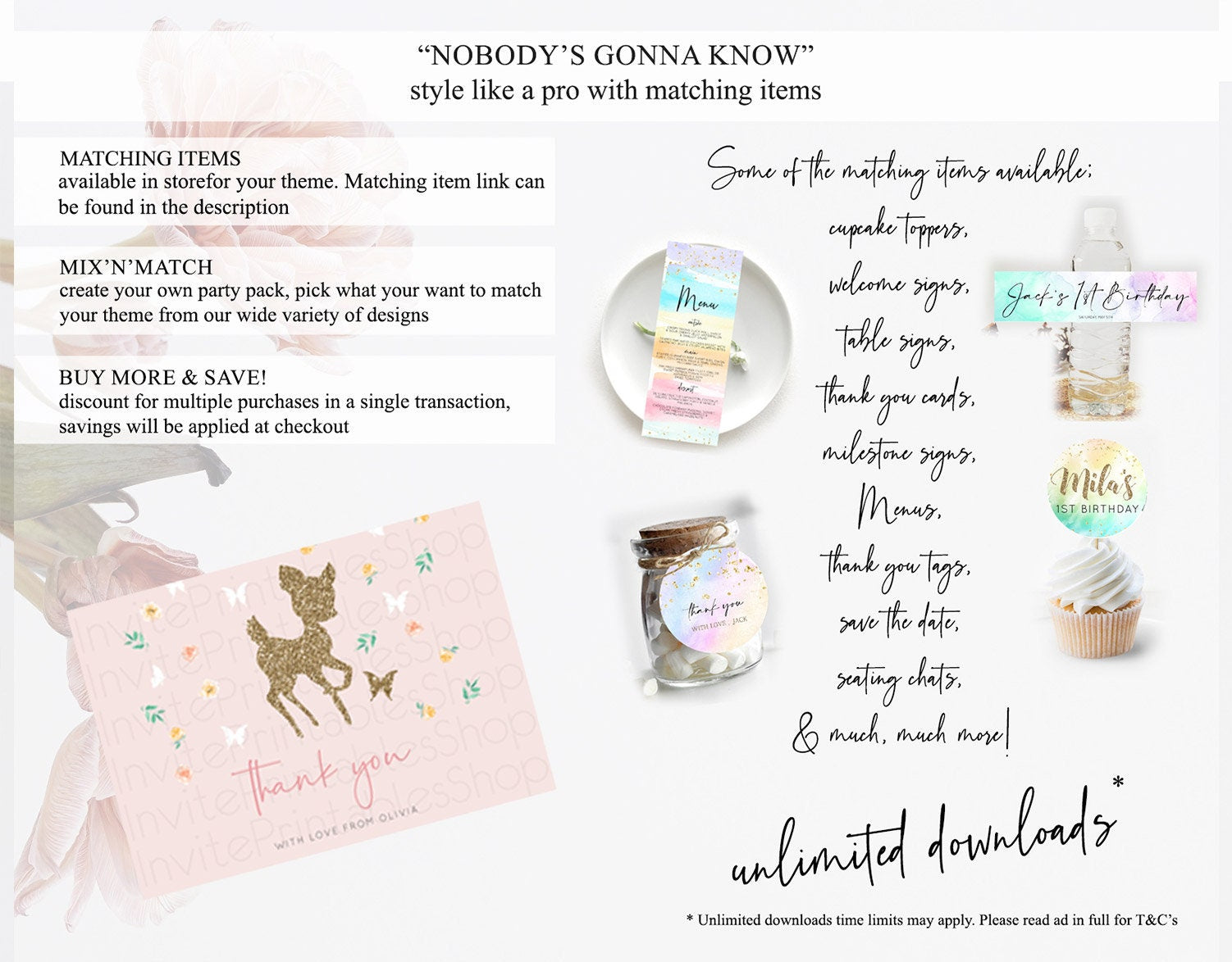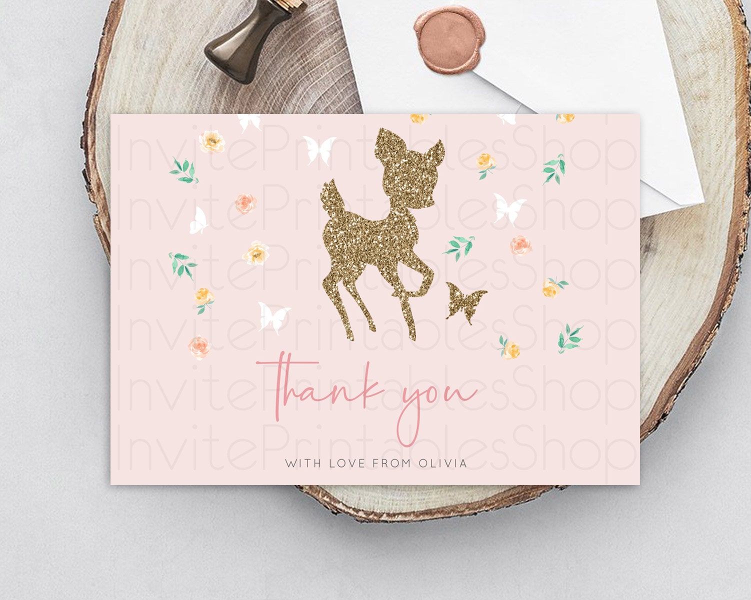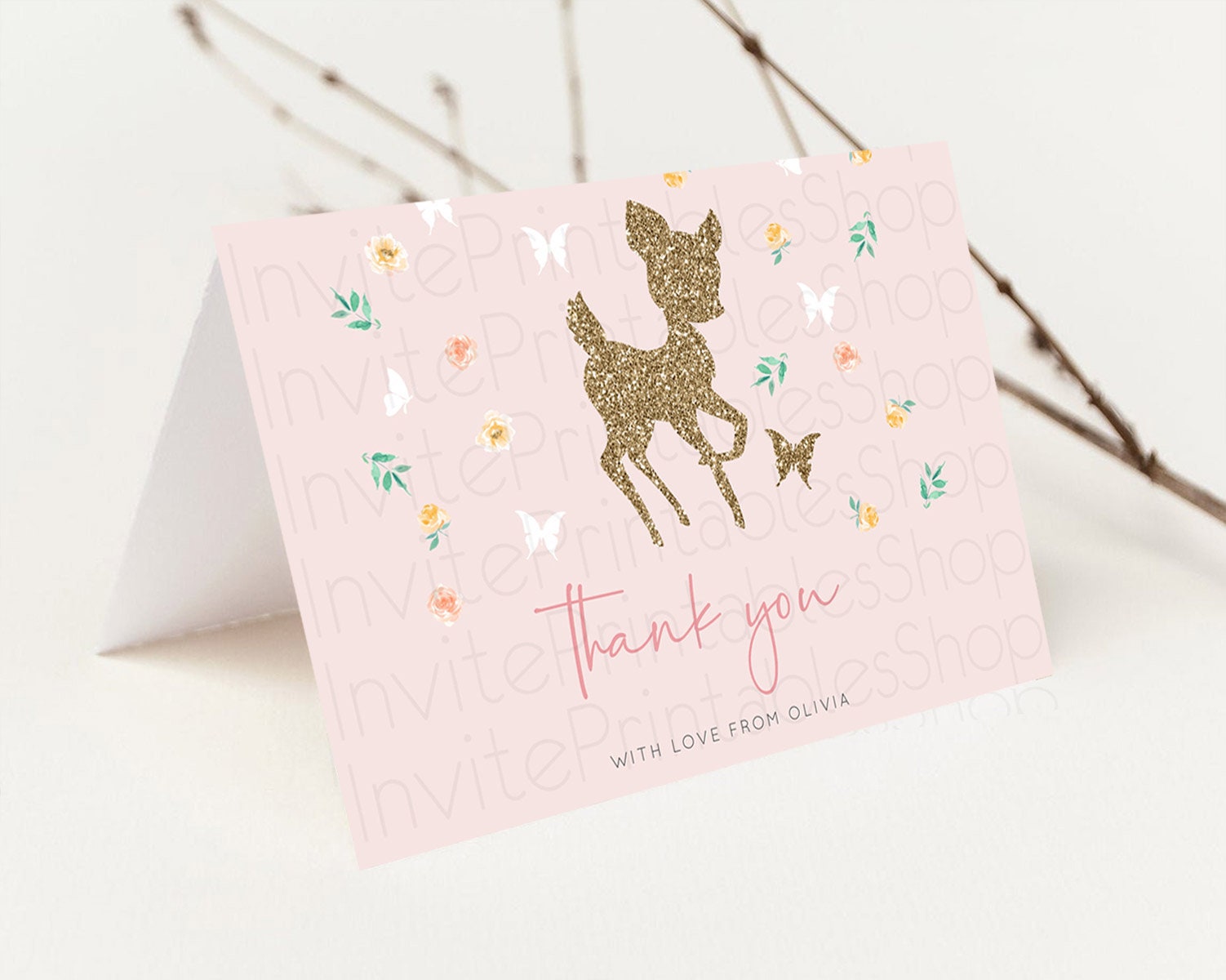 Fawn Thank You Deer Thank You Card Pastel Floral Deer Birthday Thank You Card Enchanted Forest Butterfly Deer Teacher Thank You Card D10386