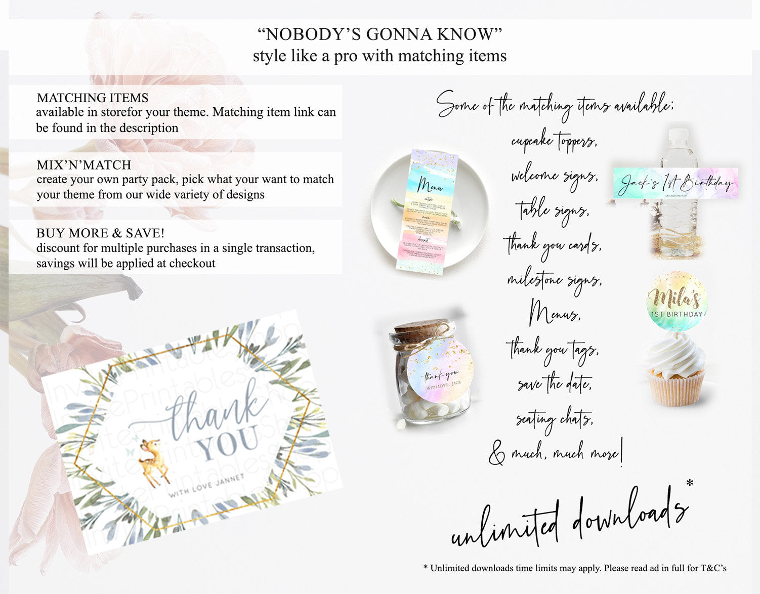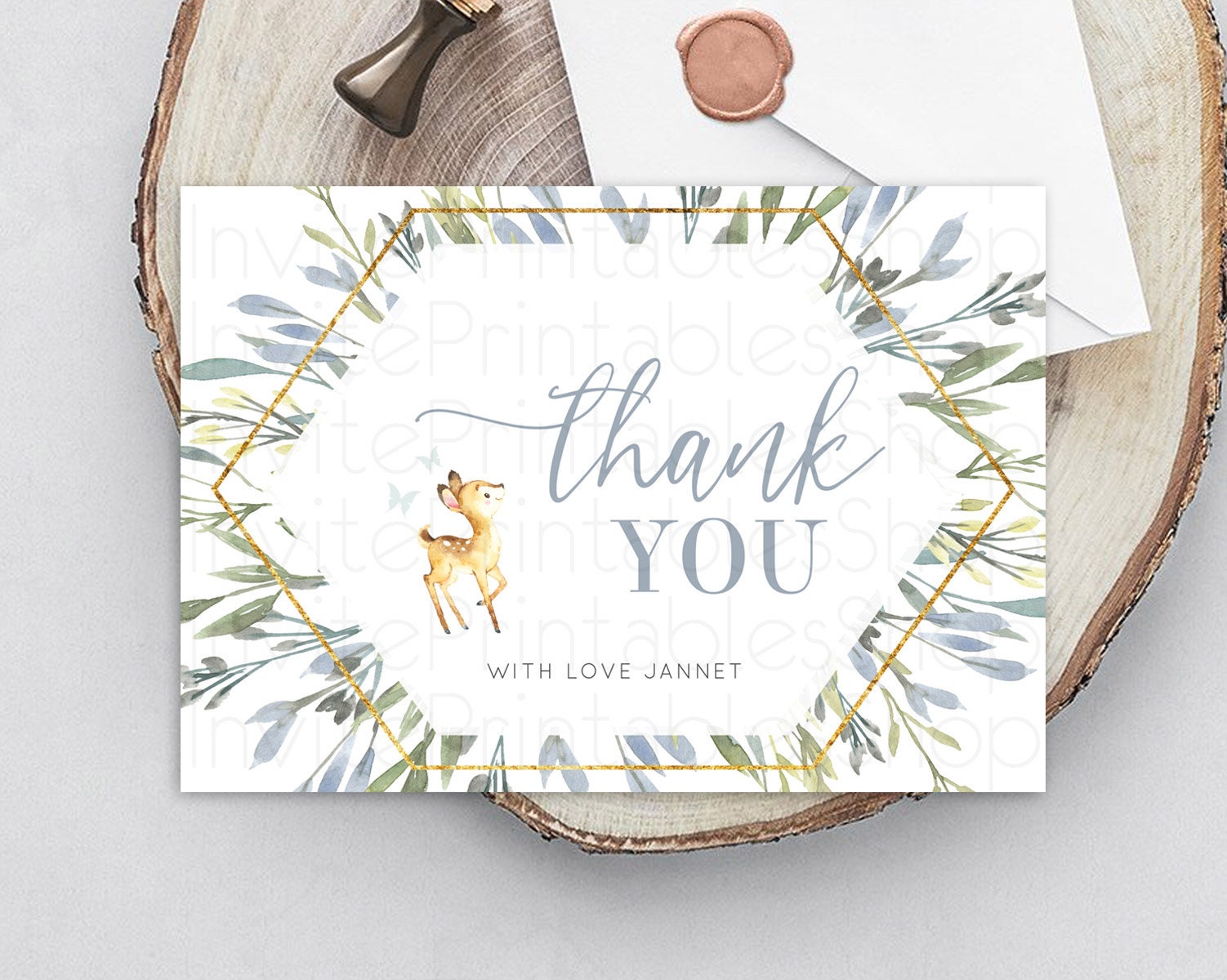 Fawn Thank You Deer Thank You Card Pastel Floral Deer Birthday Thank You Card Enchanted Forest Butterfly Deer Teacher Thank You Card D10400