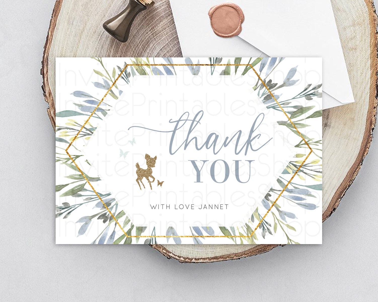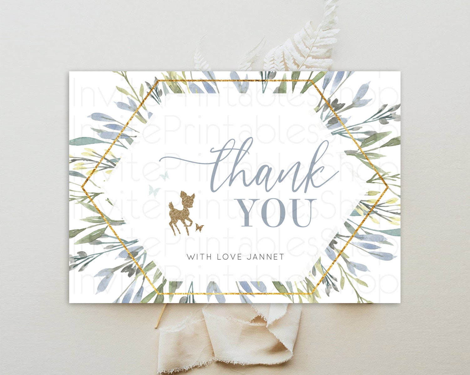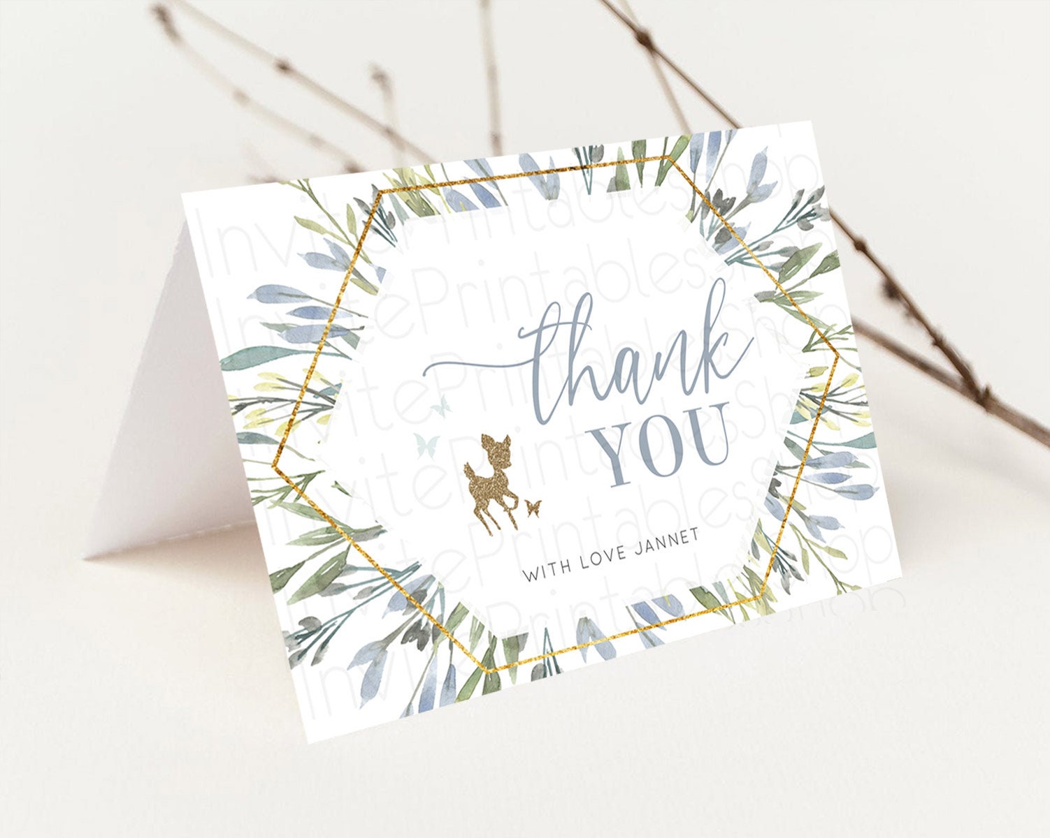 Fawn Thank You Deer Thank You Card Pastel Floral Deer Birthday Thank You Card Enchanted Forest Butterfly Deer Teacher Thank You Card D10534
