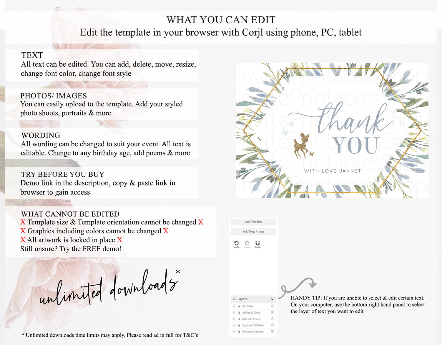 • After purchase, Corjl emails your editing link. Allow up to 15 minutes for delivery.