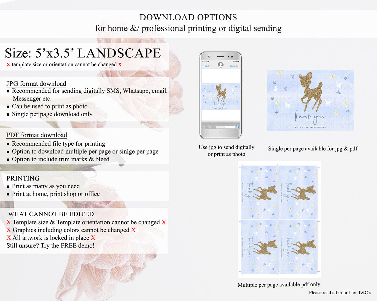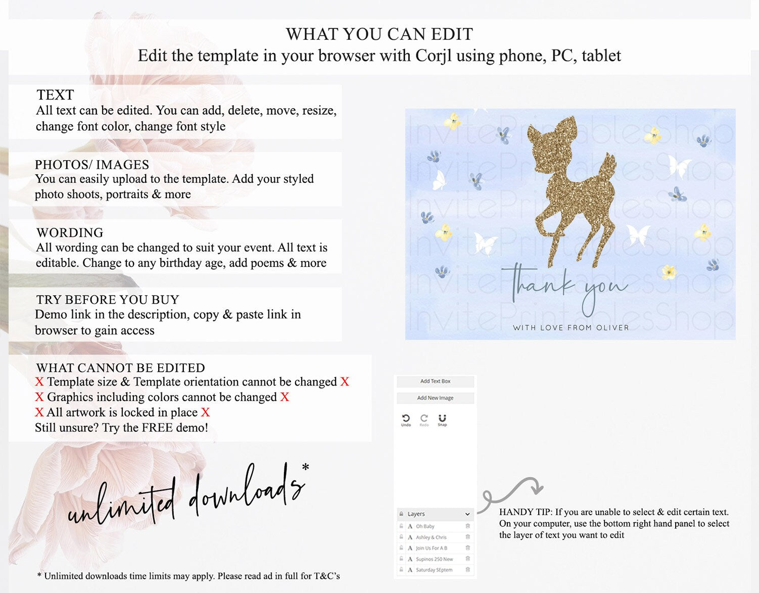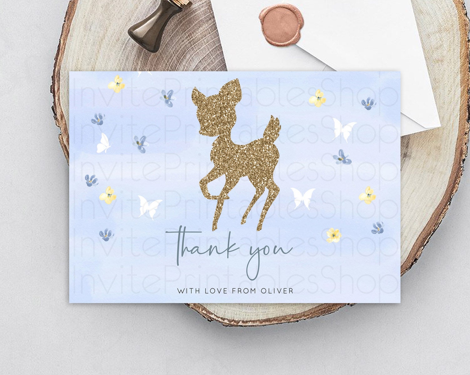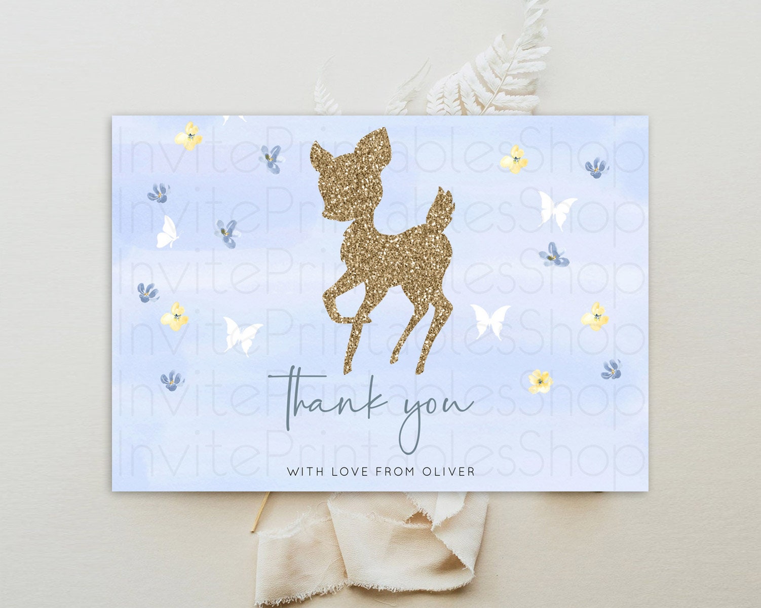 Fawn Thank You Deer Thank You Card Pastel Floral Deer Birthday Thank You Card Enchanted Forest Butterfly Deer Teacher Thank You Card D10863