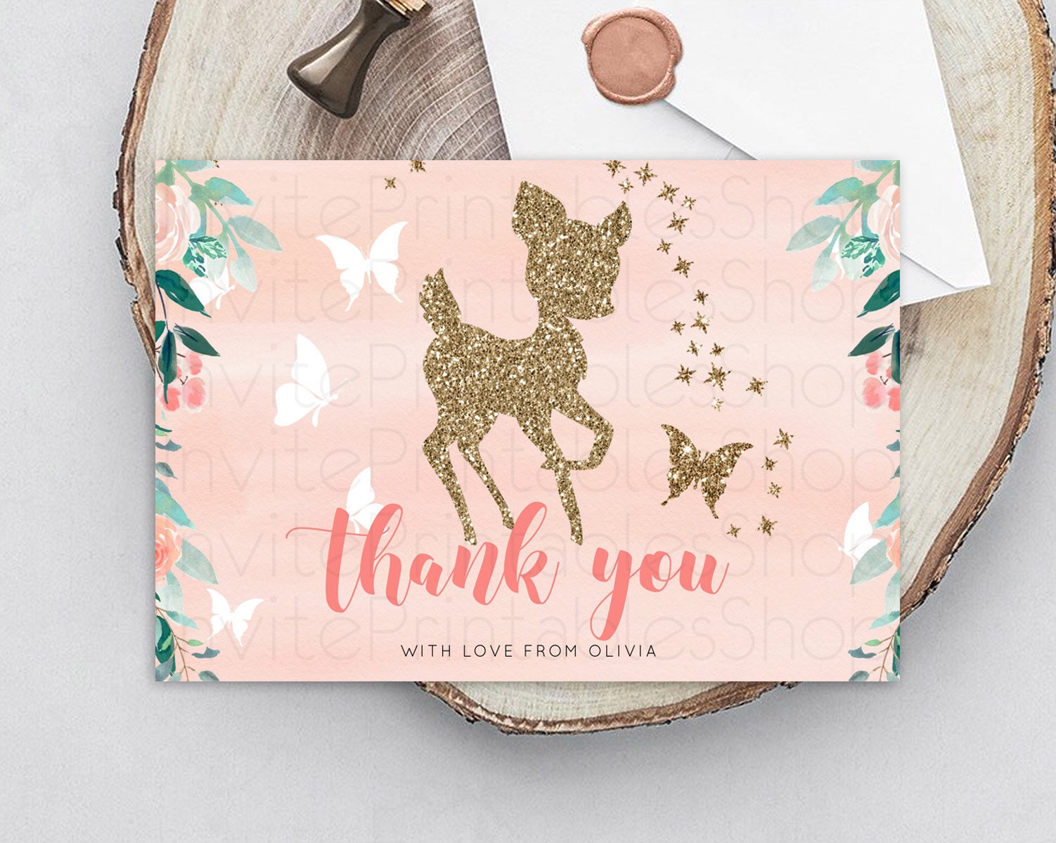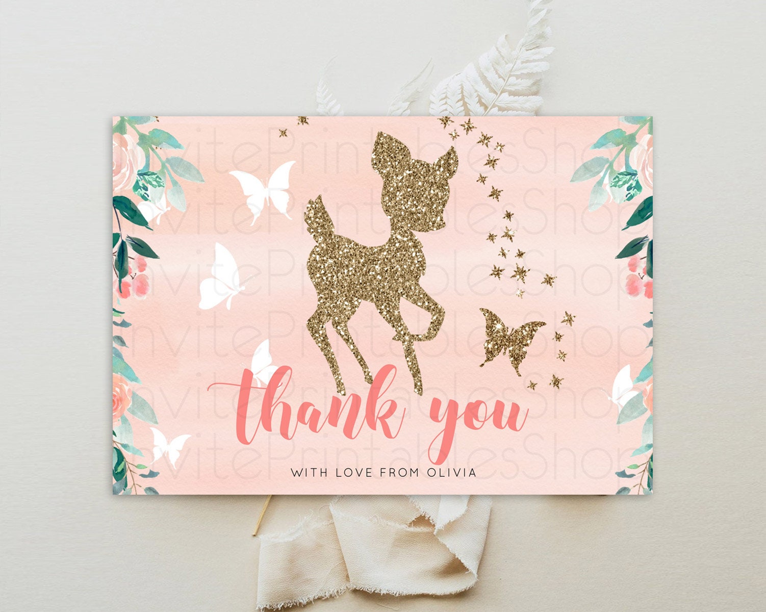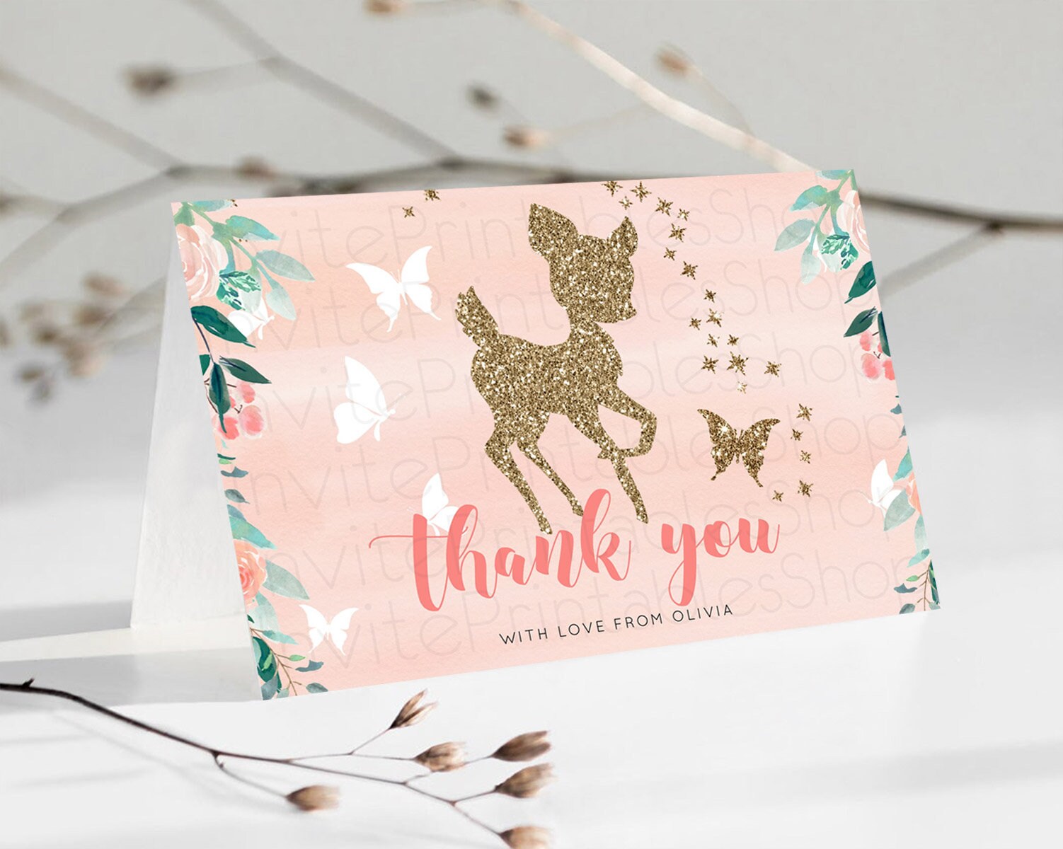 Fawn Thank You Deer Thank You Card Pastel Floral Deer Birthday Thank You Card Enchanted Forest Butterfly Deer Teacher Thank You Card D10873