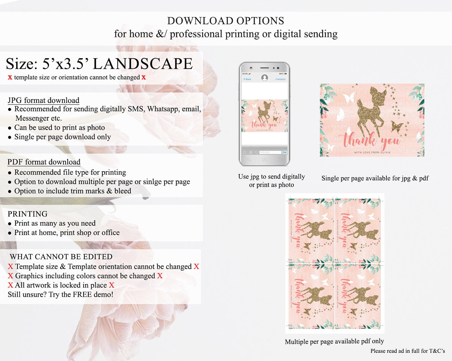 • Template size & orientation cannot be changed. Please use the demo link to confirm this product suits your needs.