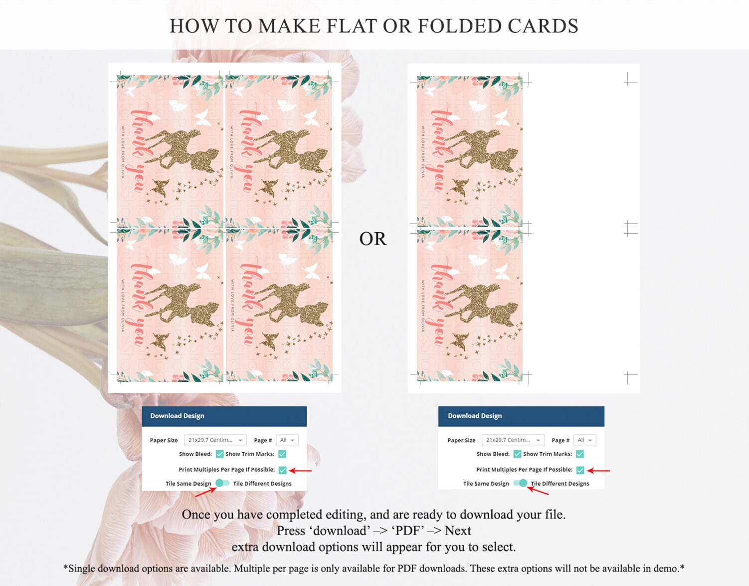 • Custom changes to artwork are not provided on existing templates.