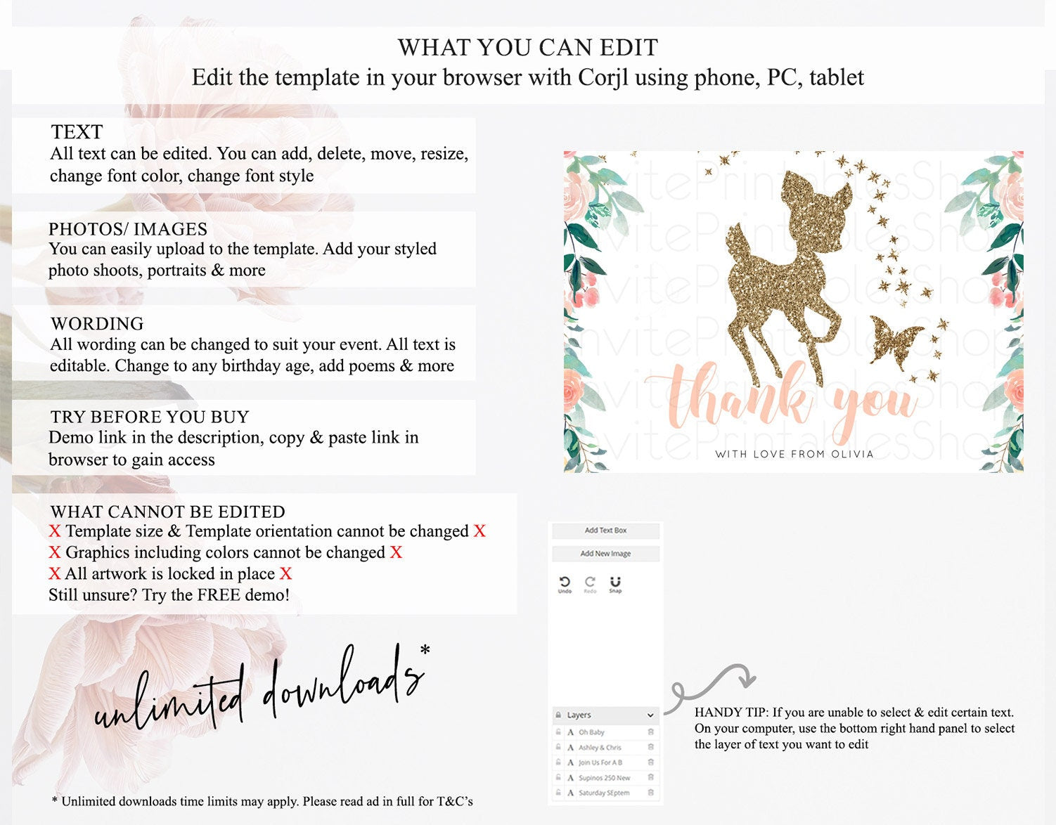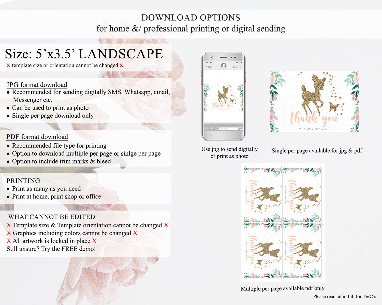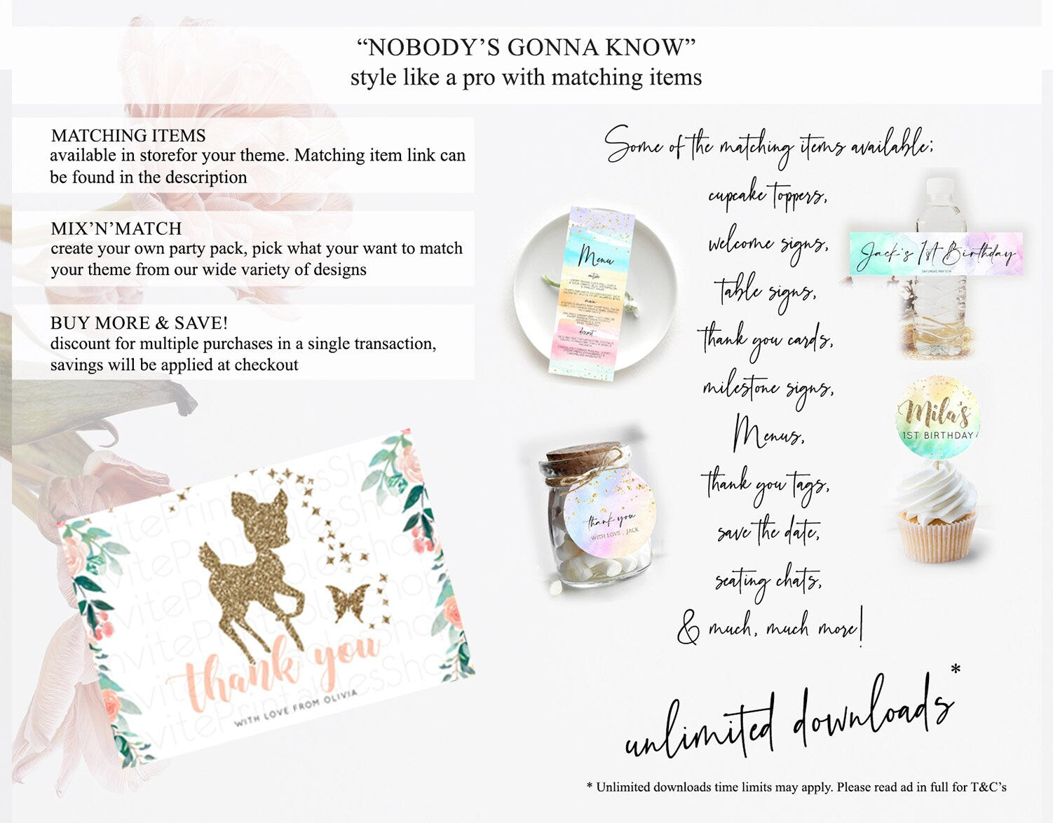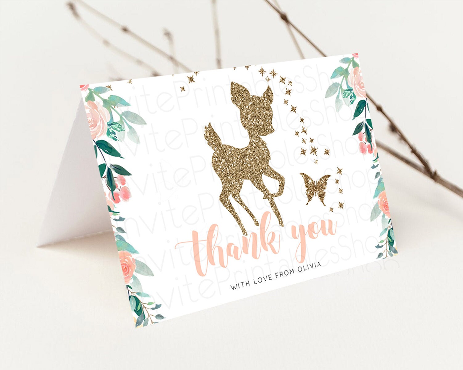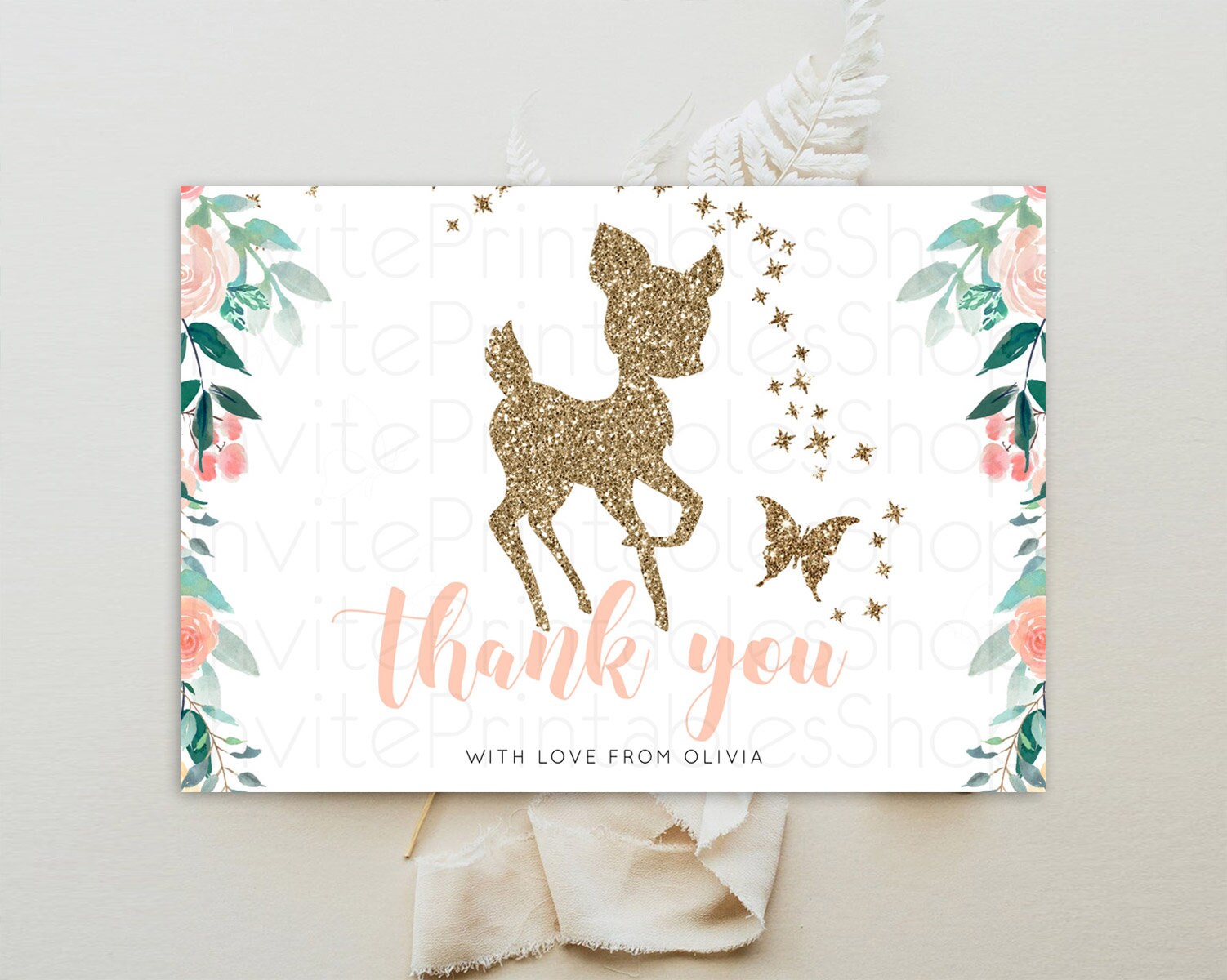 Fawn Thank You Deer Thank You Card Pastel Floral Deer Birthday Thank You Card Enchanted Forest Butterfly Deer Teacher Thank You Card D10874