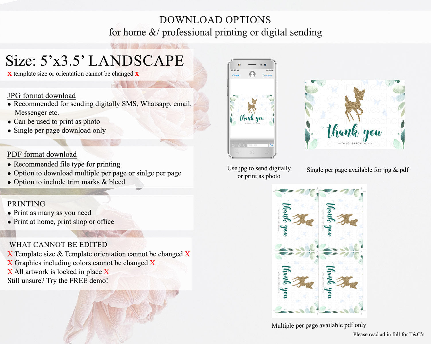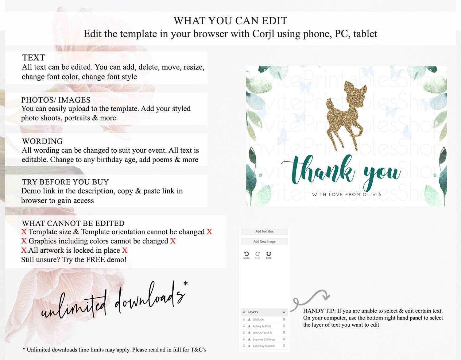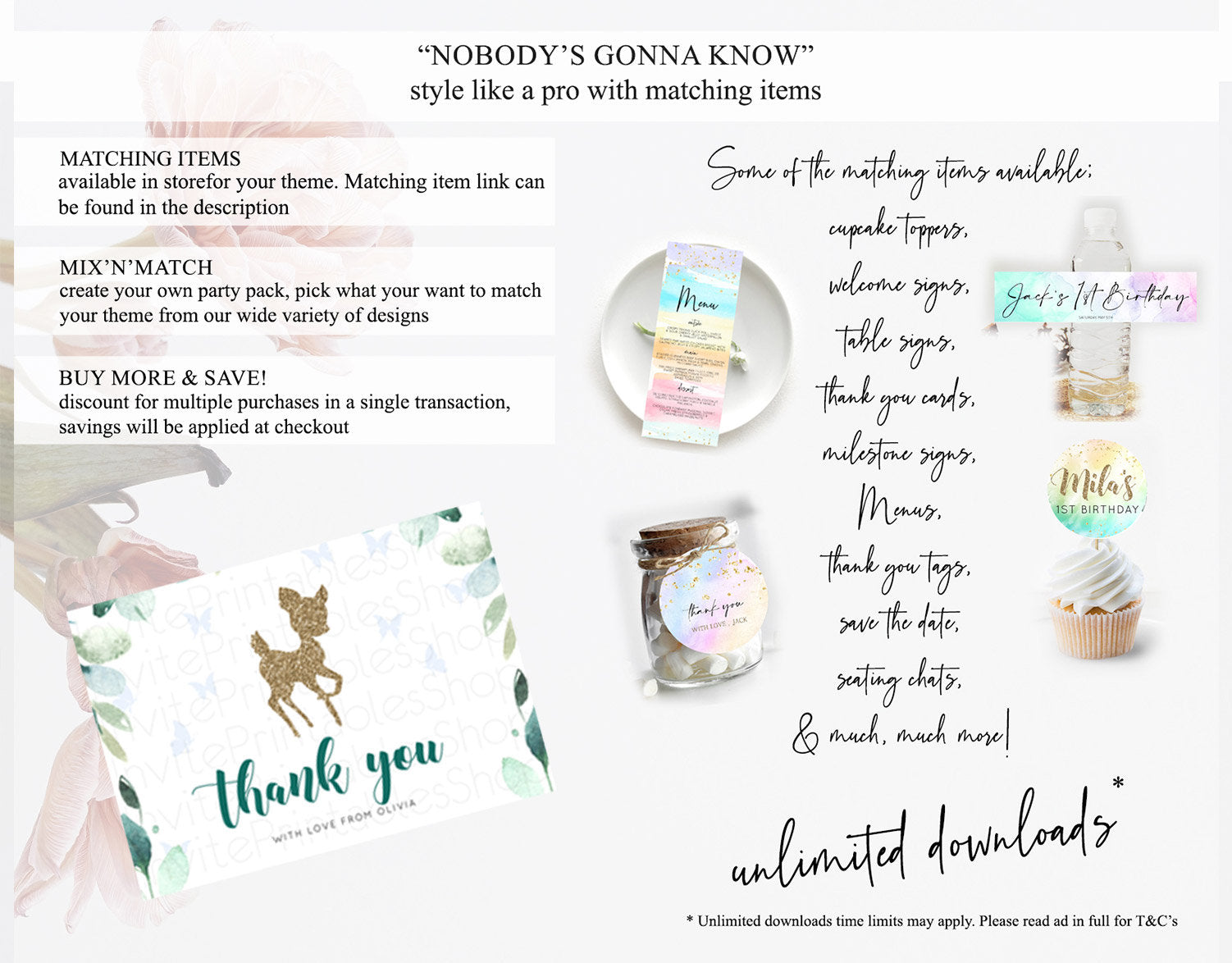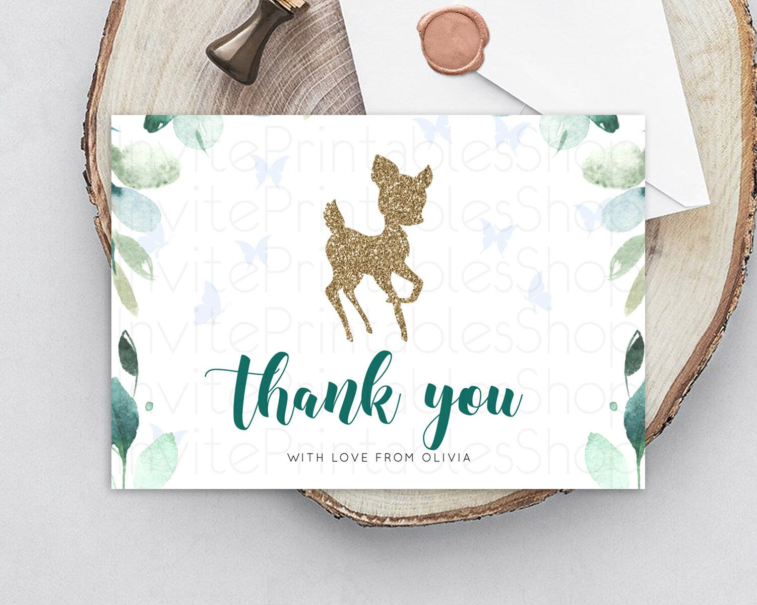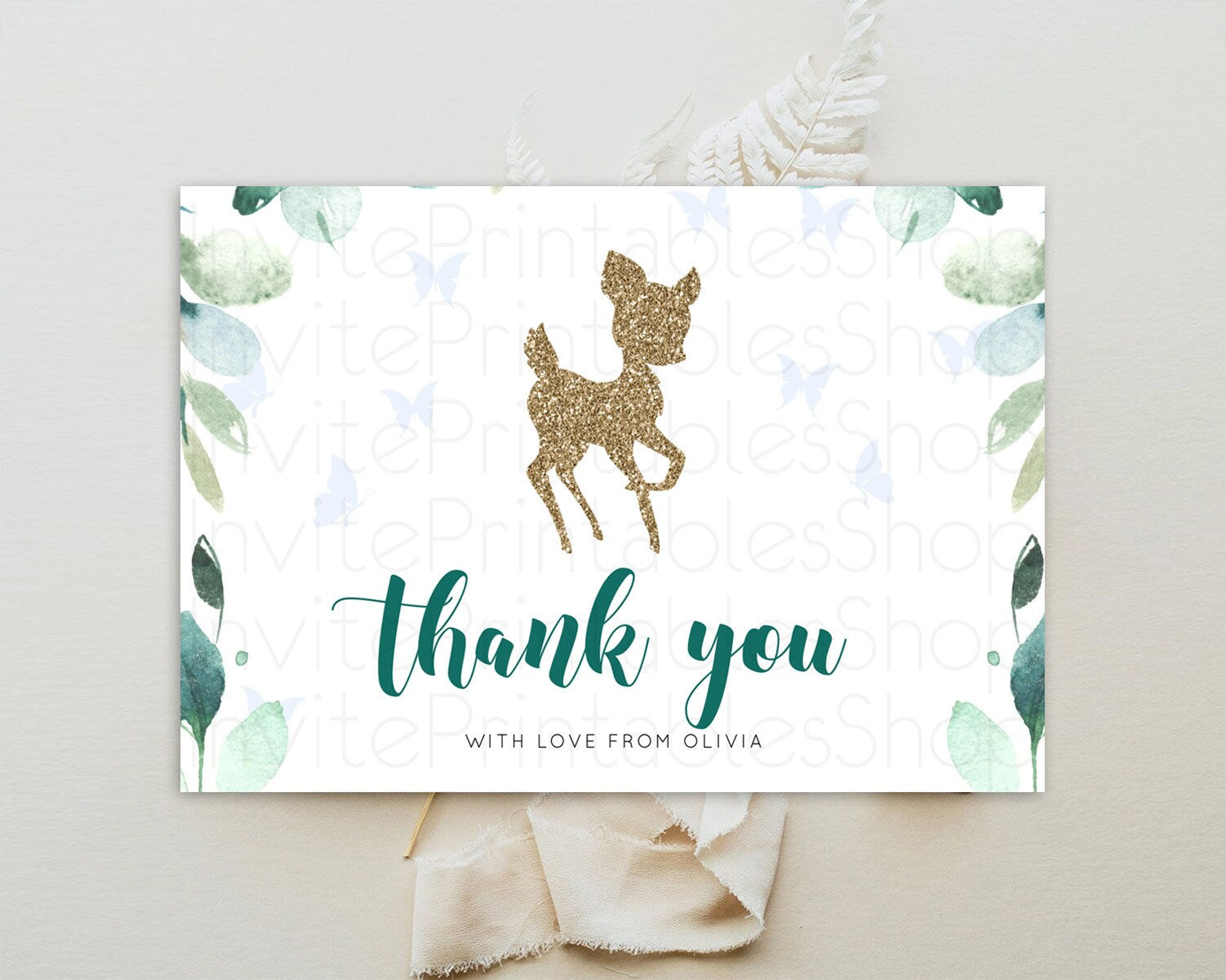 Fawn Thank You Deer Thank You Card Pastel Floral Deer Birthday Thank You Card Enchanted Forest Butterfly Deer Teacher Thank You Card D10882