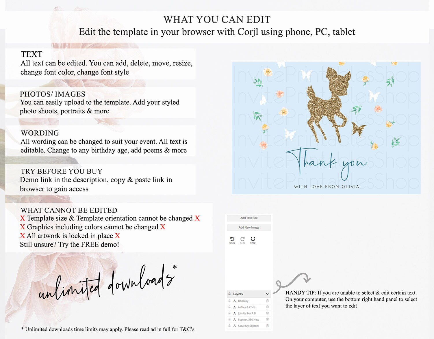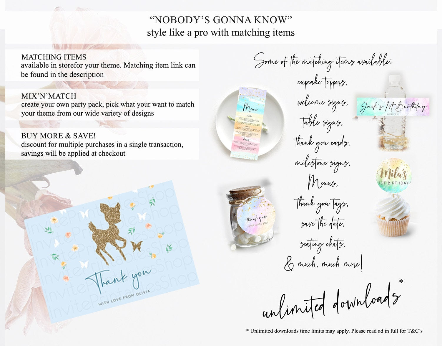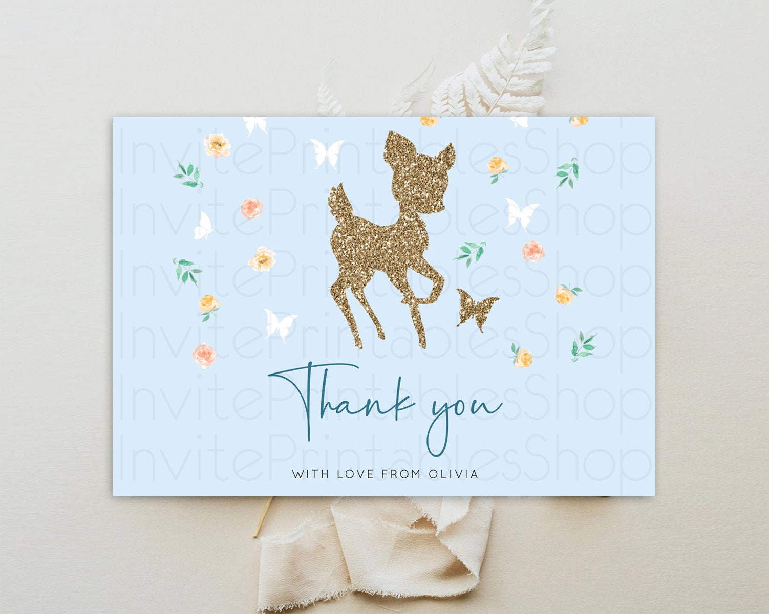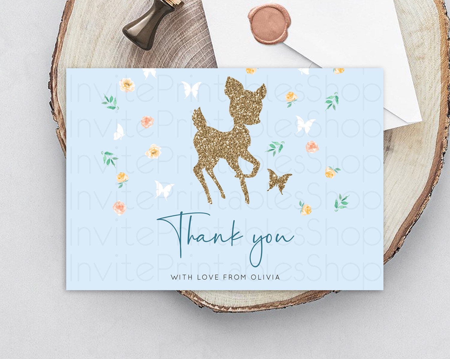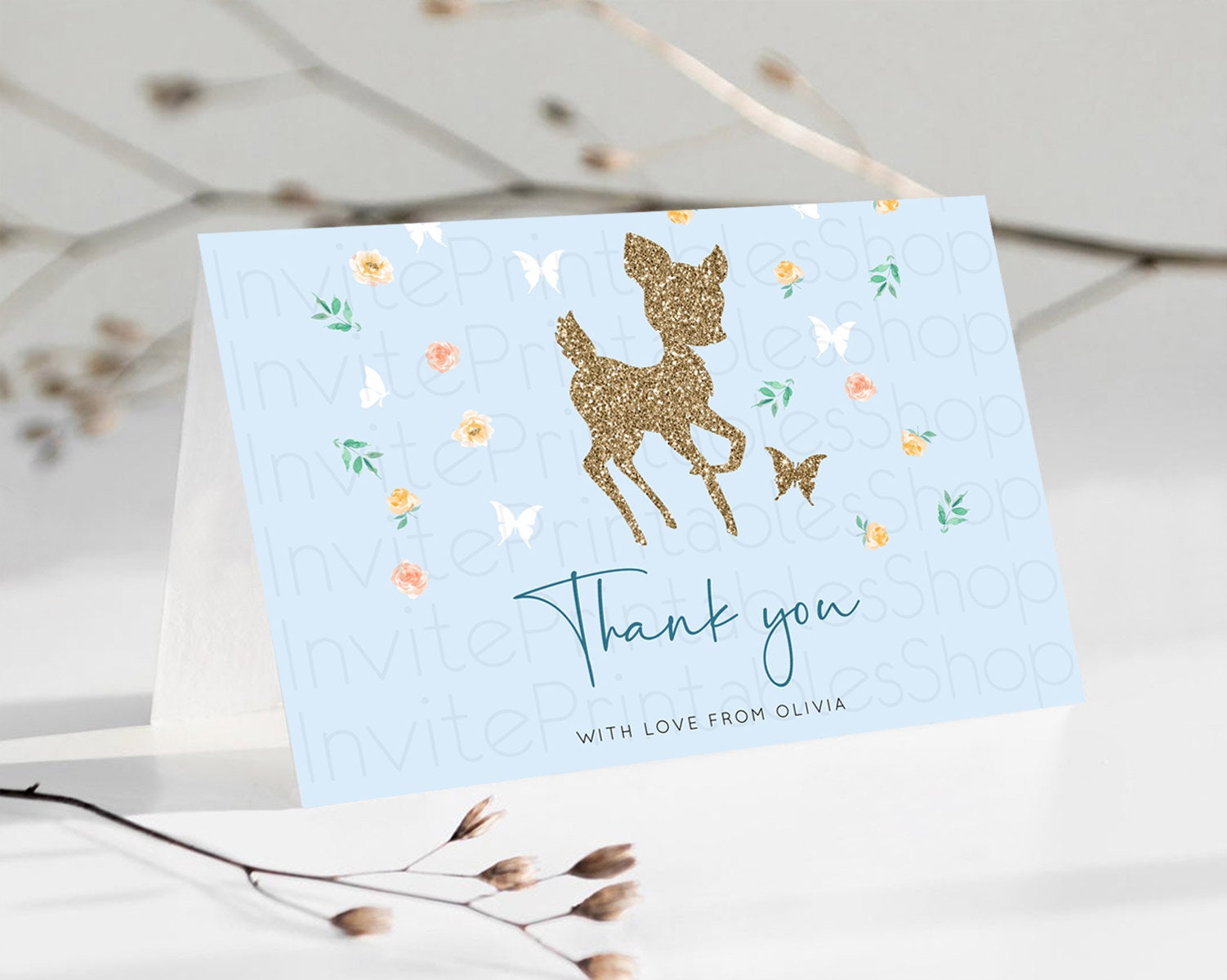 Fawn Thank You Deer Thank You Card Pastel Floral Deer Birthday Thank You Card Enchanted Forest Butterfly Deer Teacher Thank You Card D10902