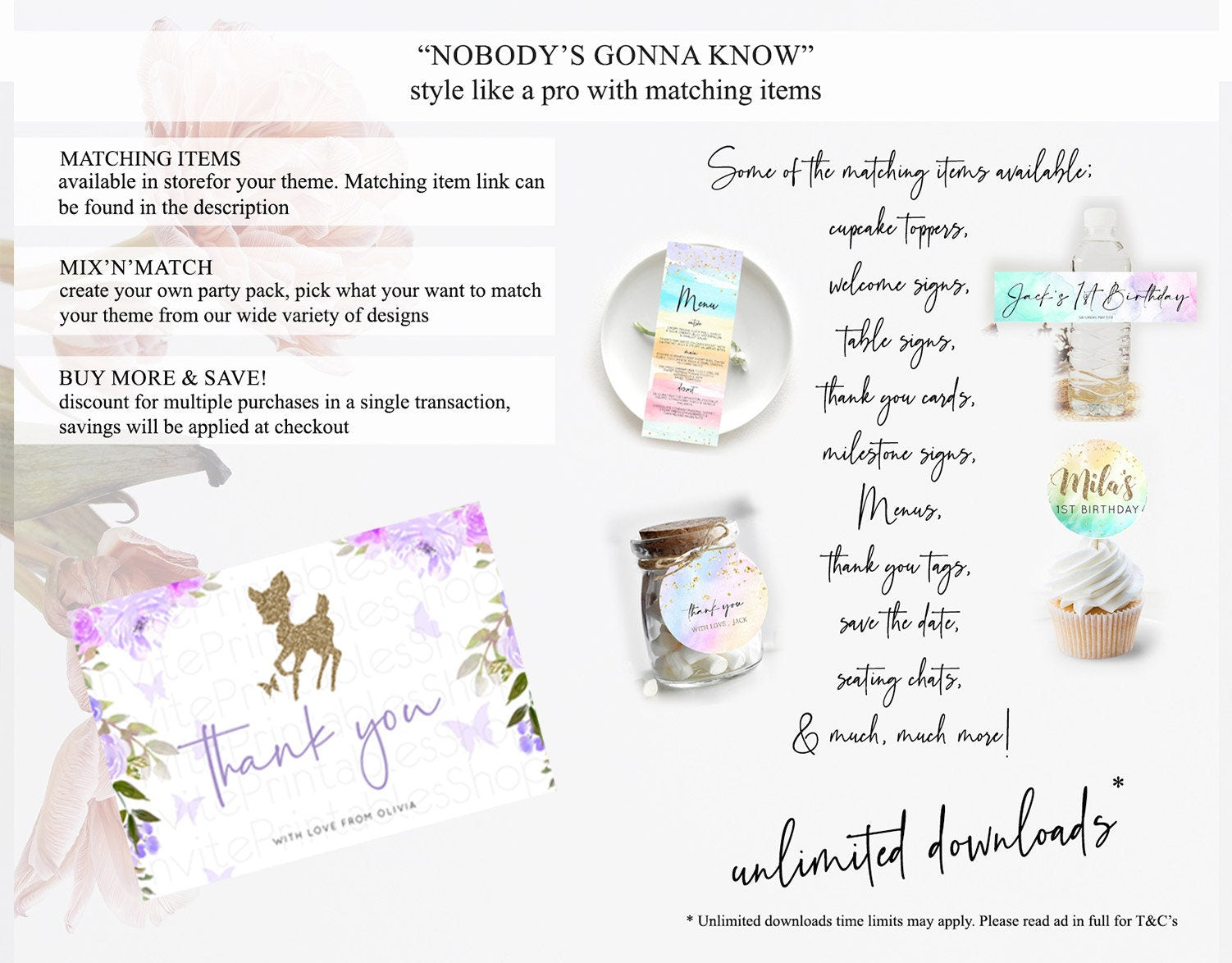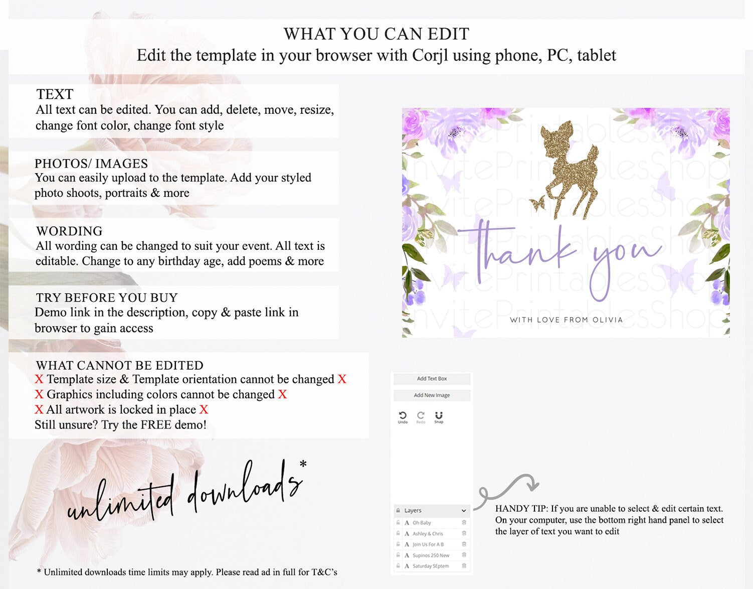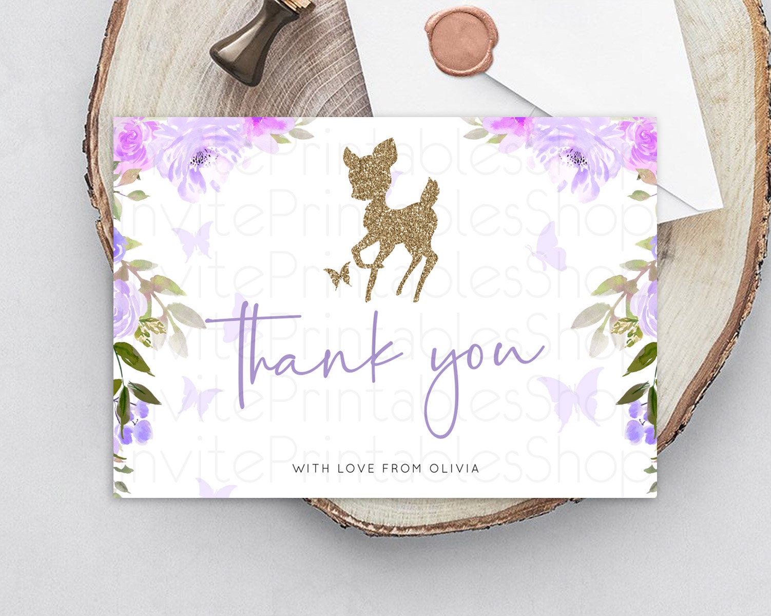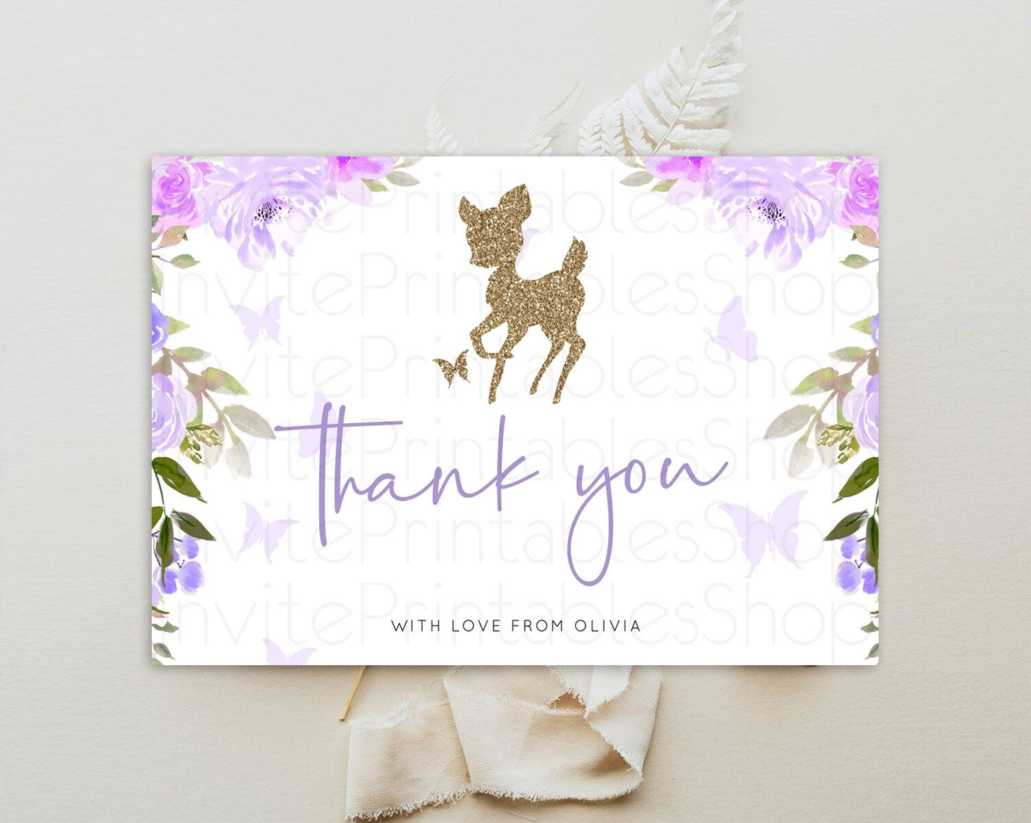 Fawn Thank You Deer Thank You Card Pastel Floral Deer Birthday Thank You Card Enchanted Forest Butterfly Deer Teacher Thank You Card D10914