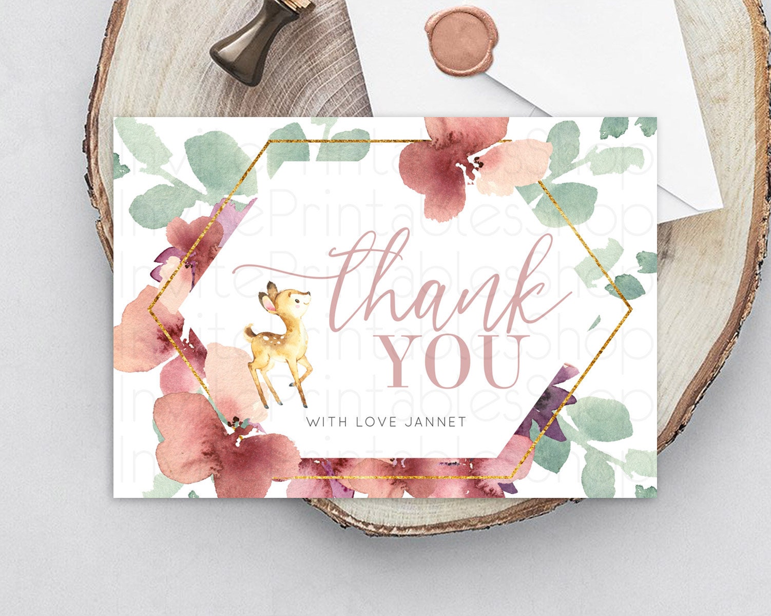Fawn Thank You Deer Thank You Card Pastel Floral Deer Birthday Thank You Card Enchanted Forest Butterfly Deer Teacher Thank You Card D10915