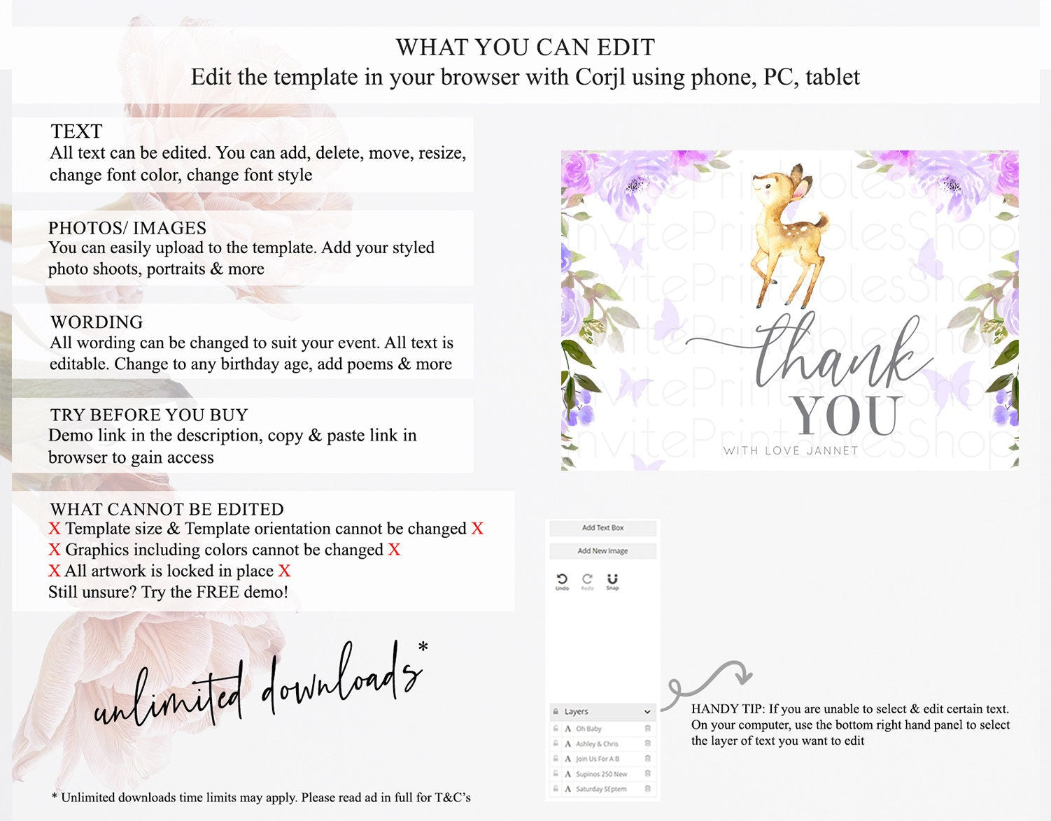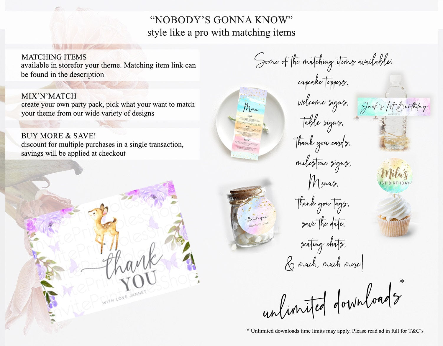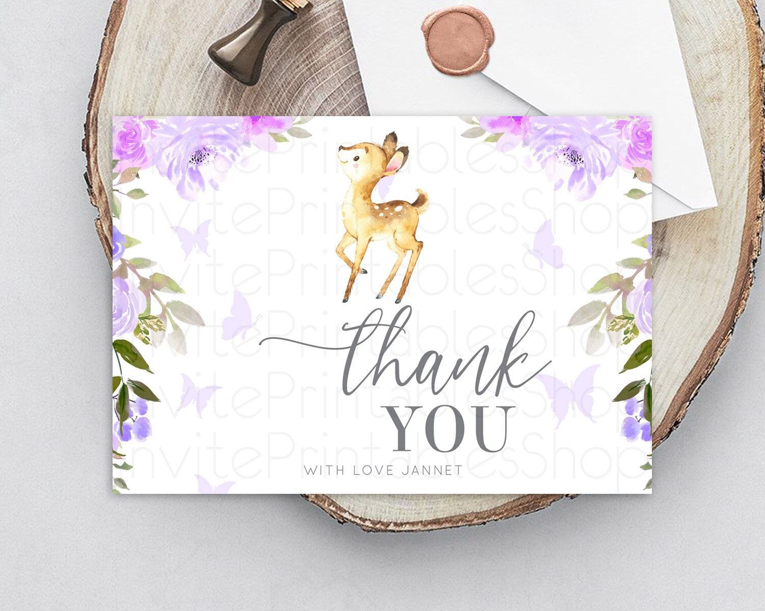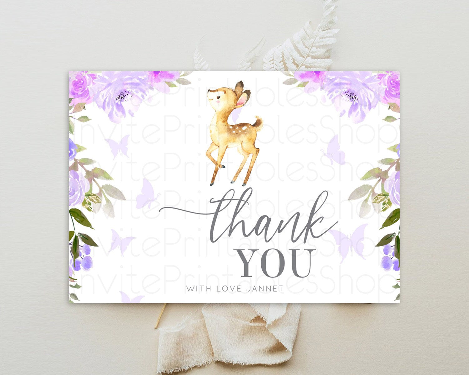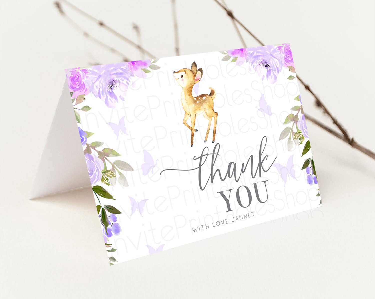 Fawn Thank You Deer Thank You Card Pastel Floral Deer Birthday Thank You Card Enchanted Forest Butterfly Deer Teacher Thank You Card D10916