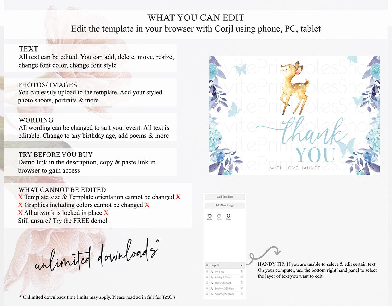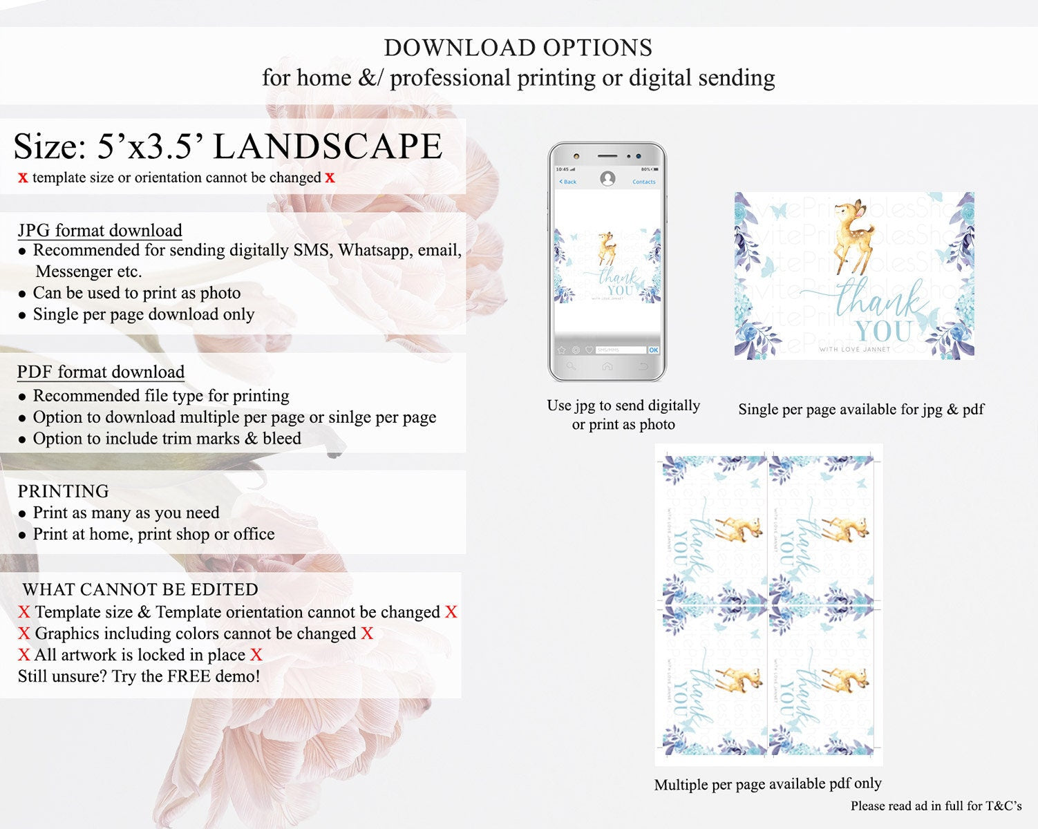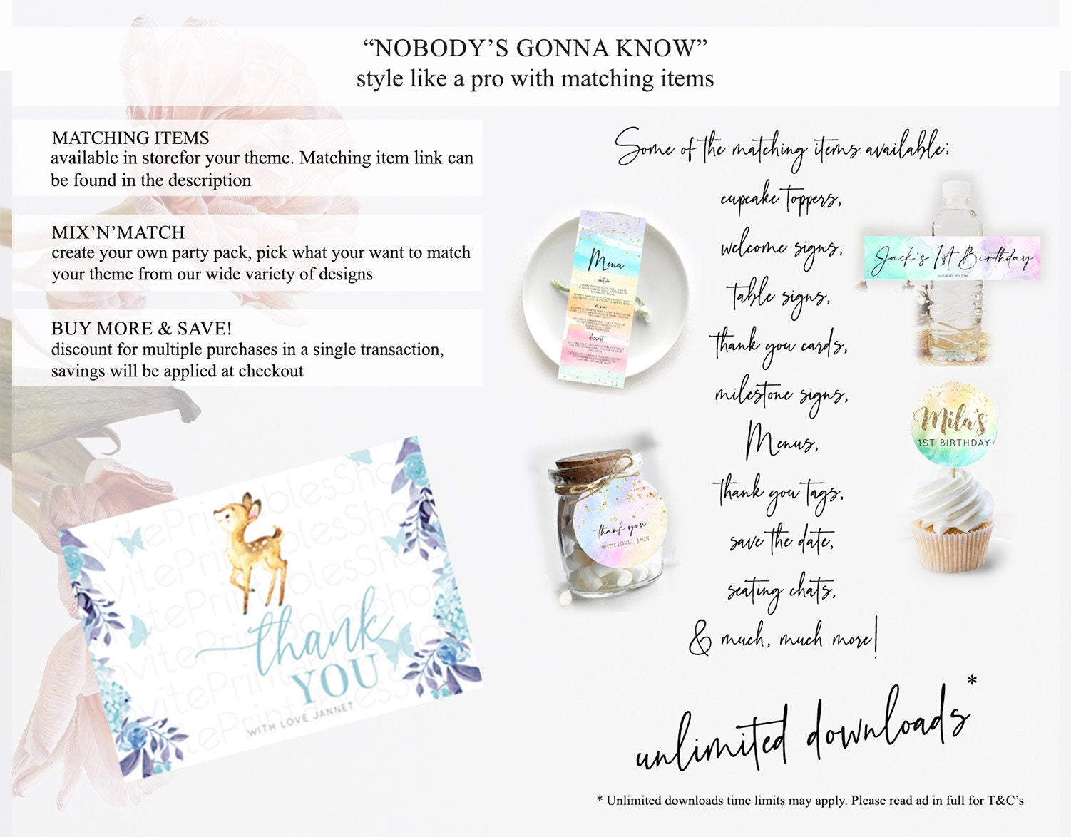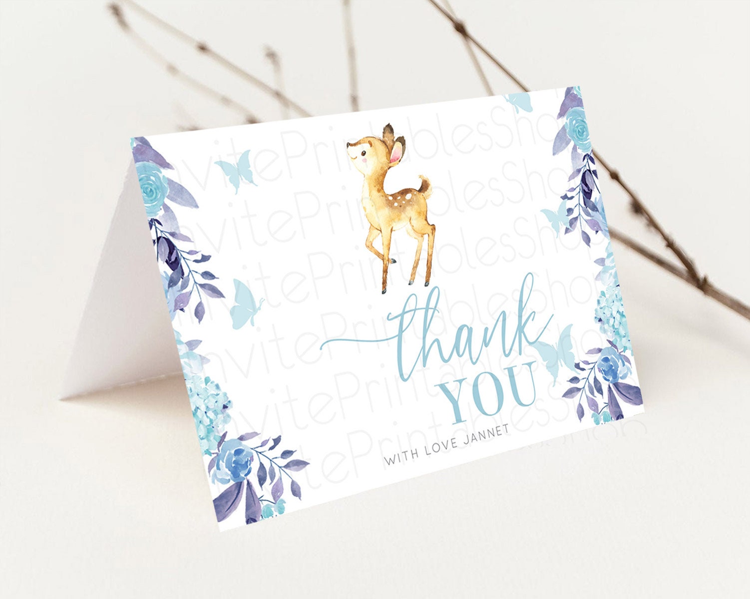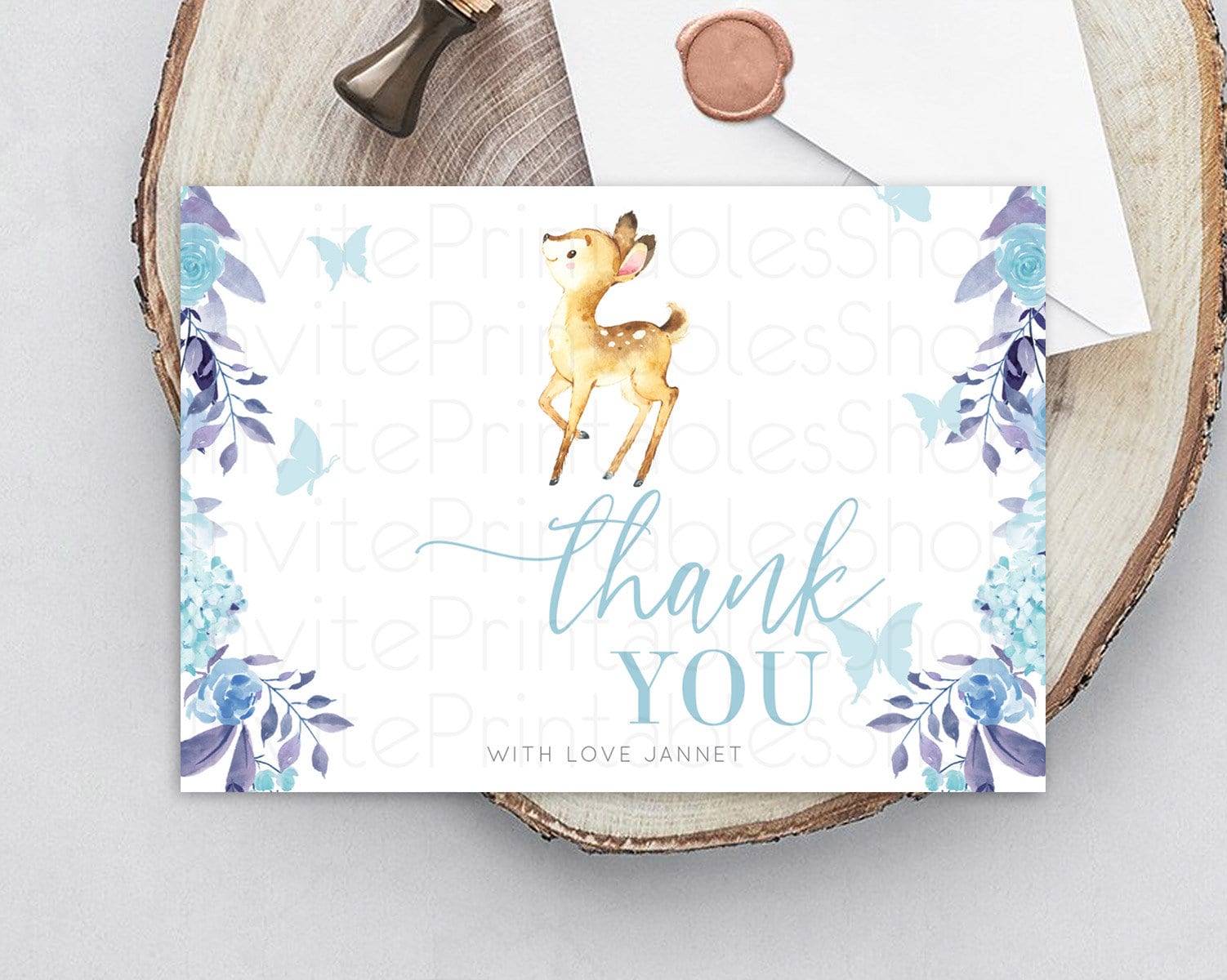 Fawn Thank You Deer Thank You Card Pastel Floral Deer Birthday Thank You Card Enchanted Forest Butterfly Deer Teacher Thank You Card D10917