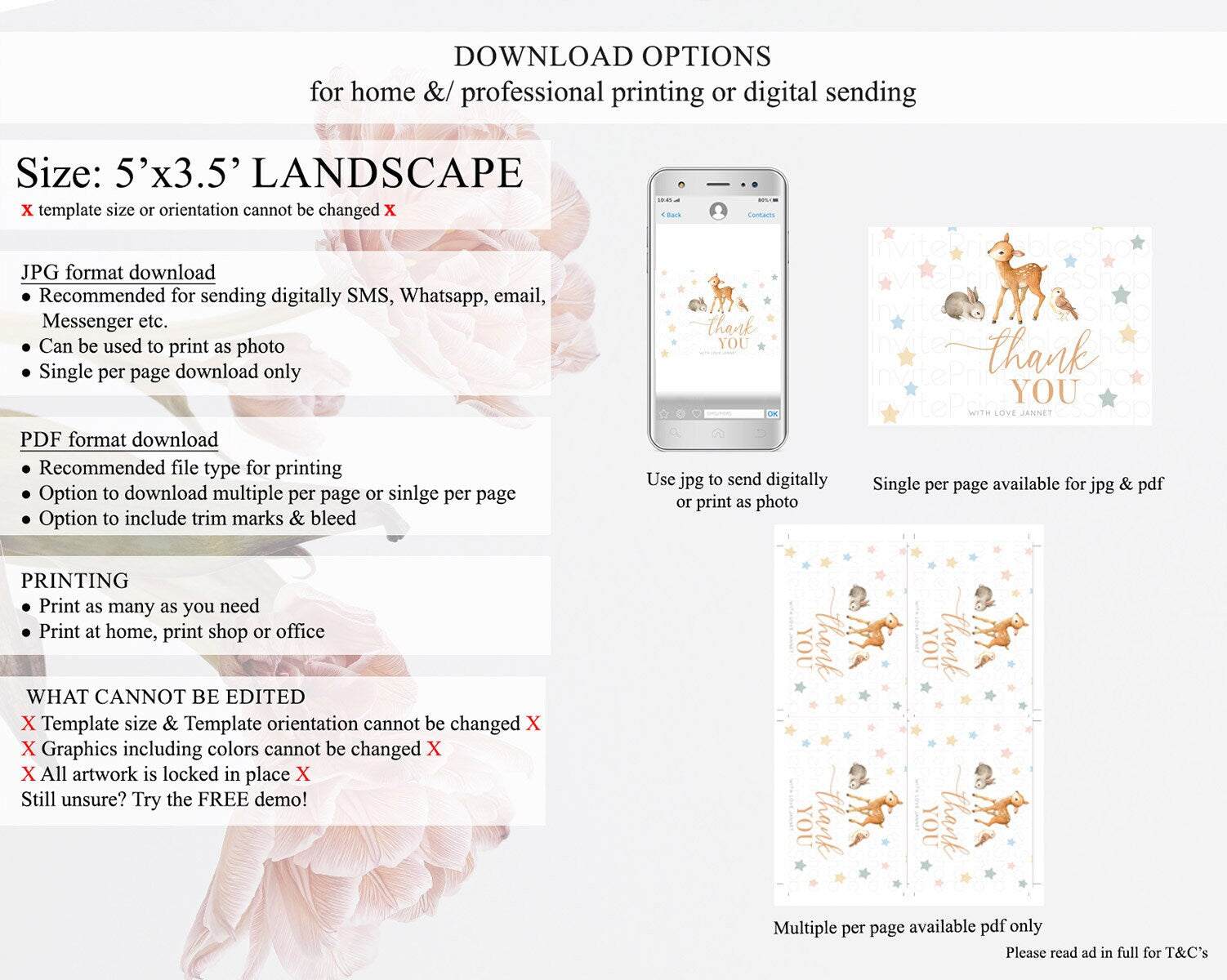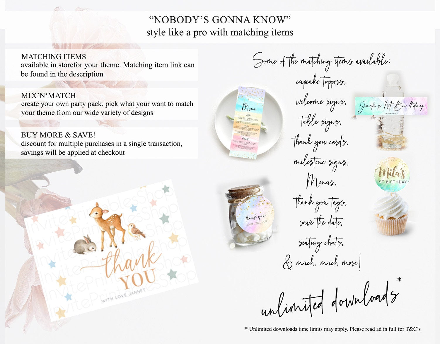 Fawn Thank You Deer Thank You Card Pastel Floral Deer Birthday Thank You Card Enchanted Forest Butterfly Deer Teacher Thank You Card D10918