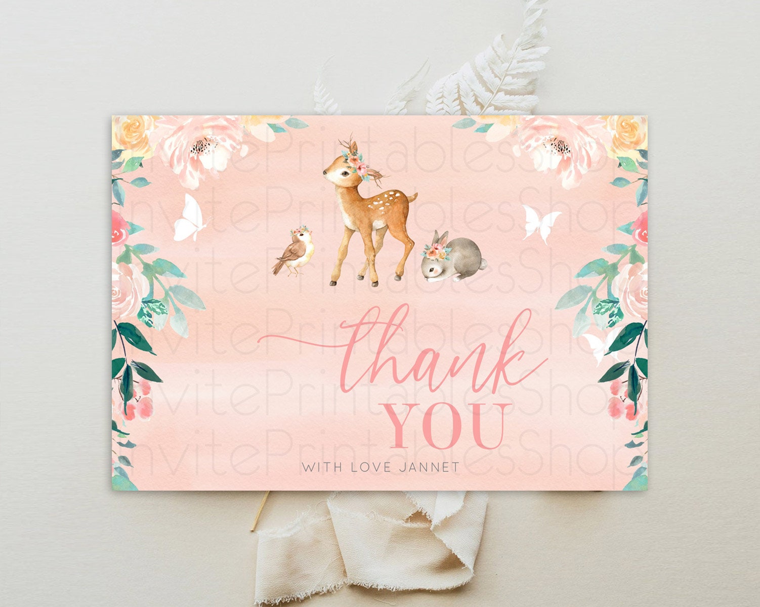 Fawn Thank You Deer Thank You Card Pastel Floral Deer Birthday Thank You Card Enchanted Forest Butterfly Deer Teacher Thank You Card D10921