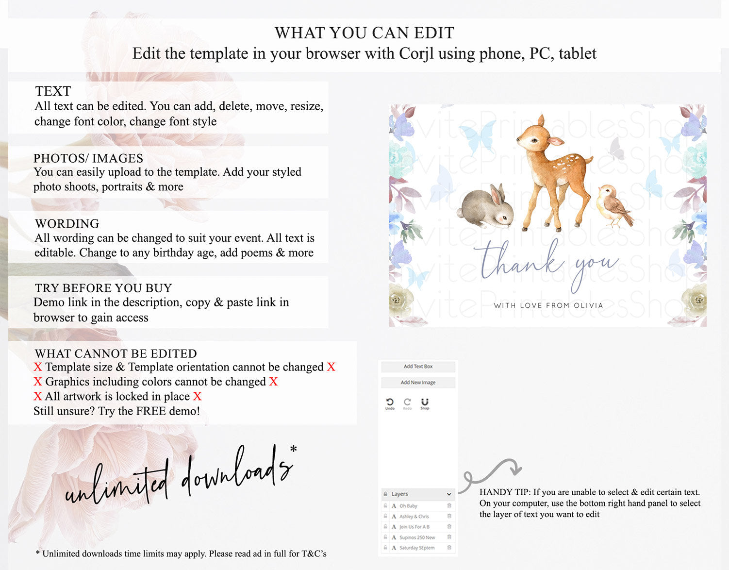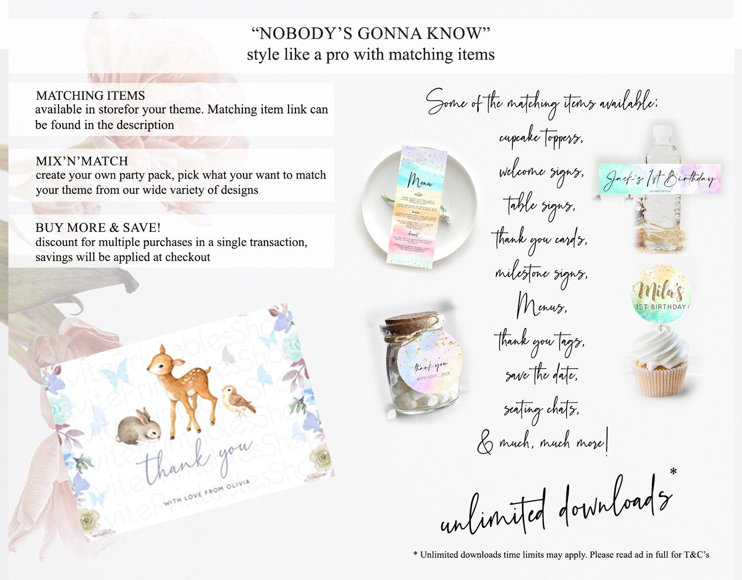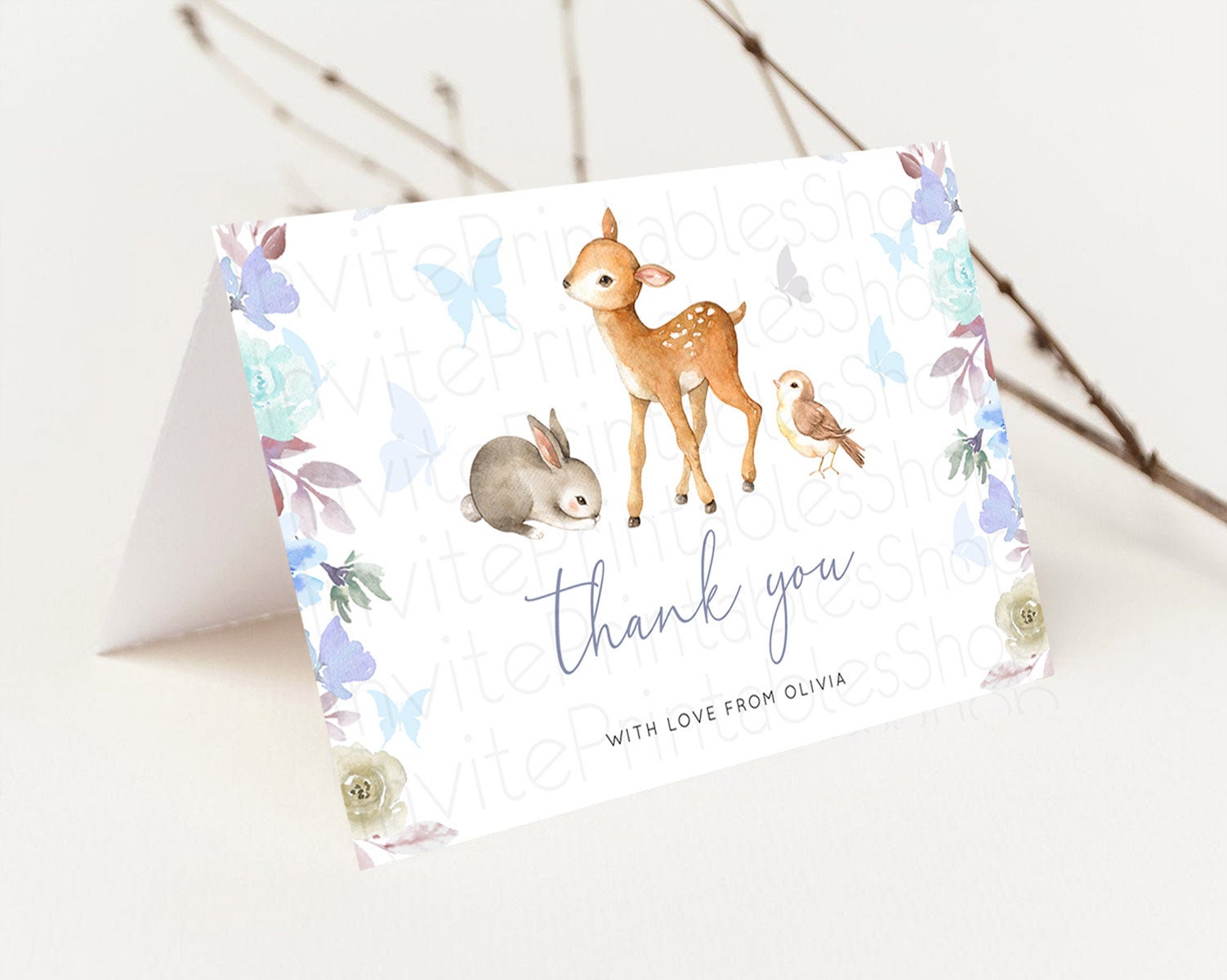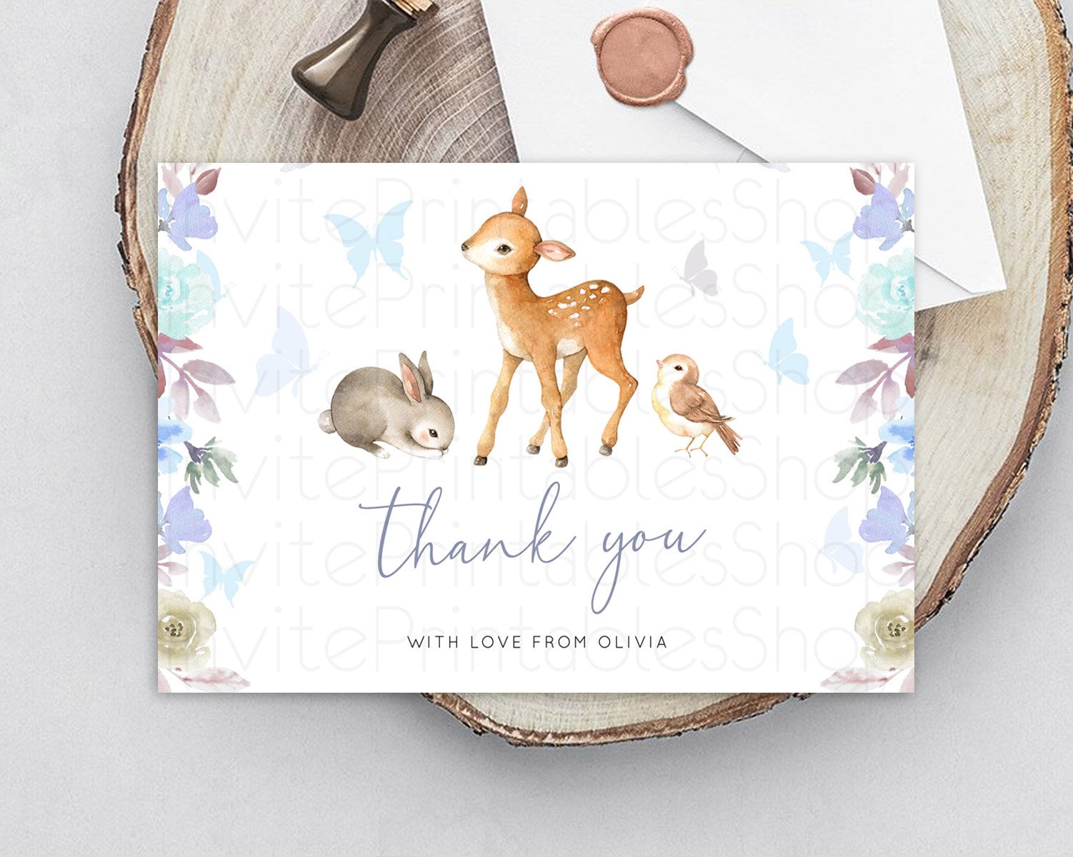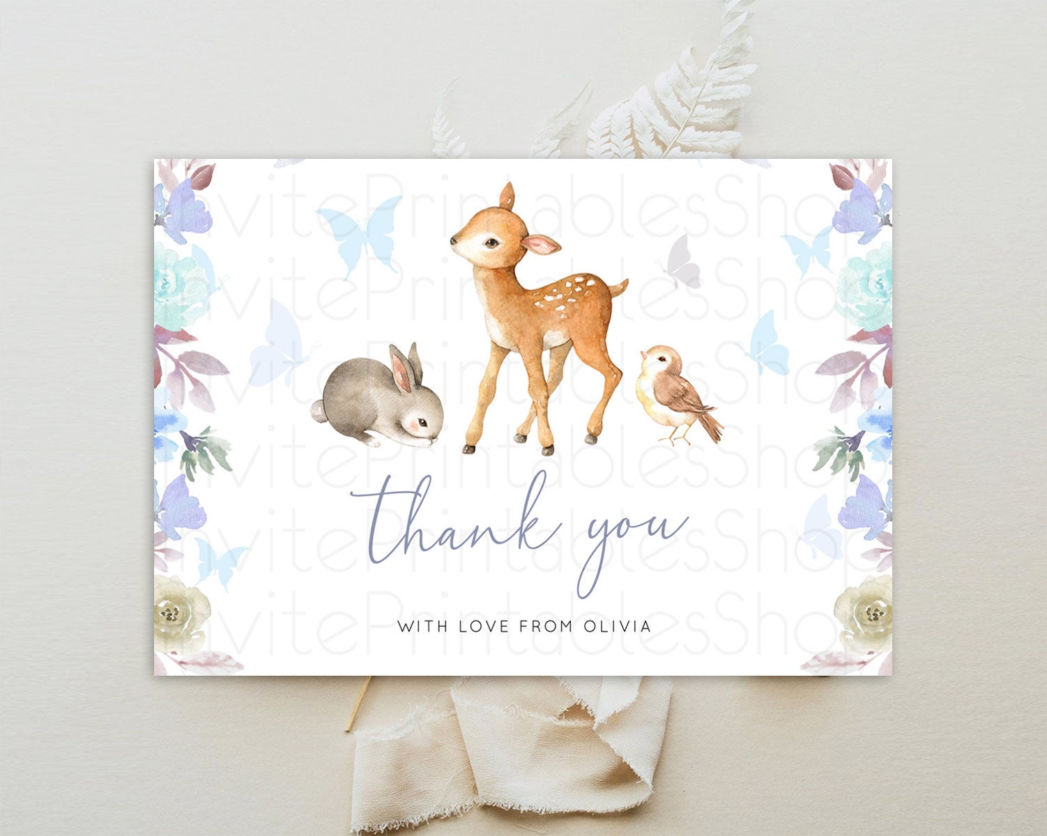 Fawn Thank You Deer Thank You Card Pastel Floral Deer Birthday Thank You Card Enchanted Forest Butterfly Deer Teacher Thank You Card D10929