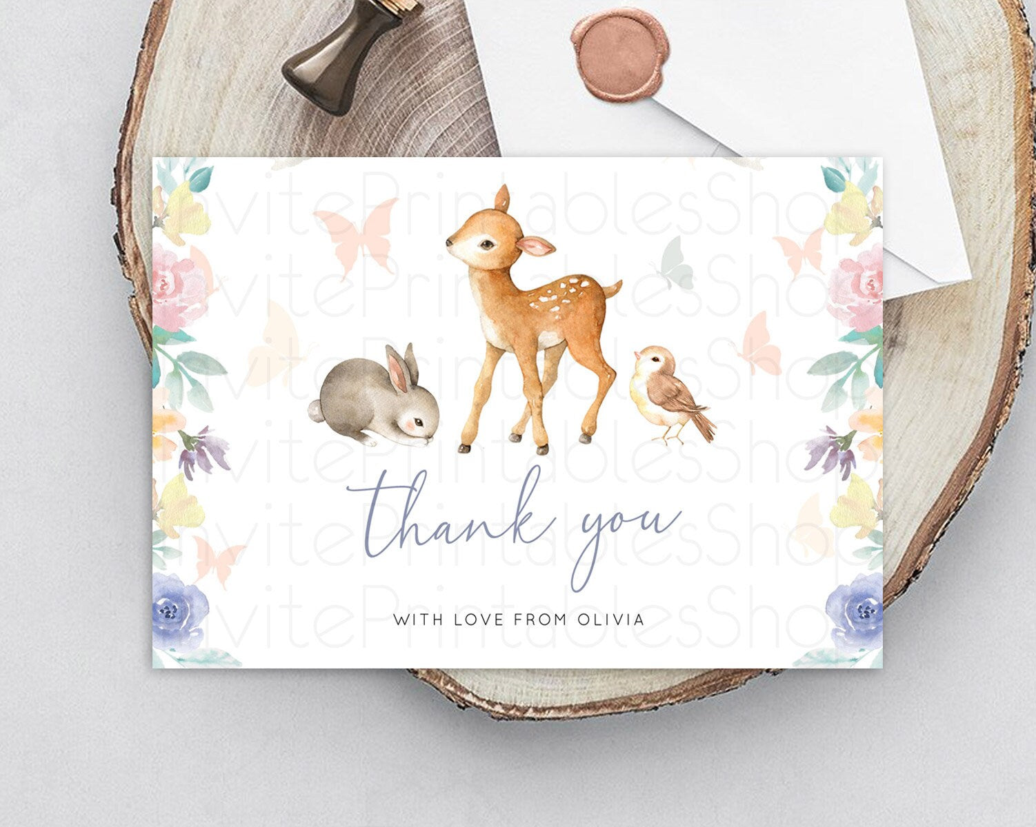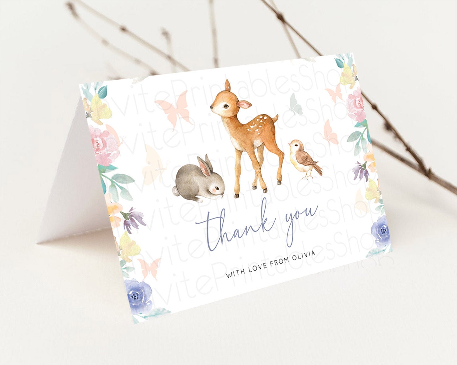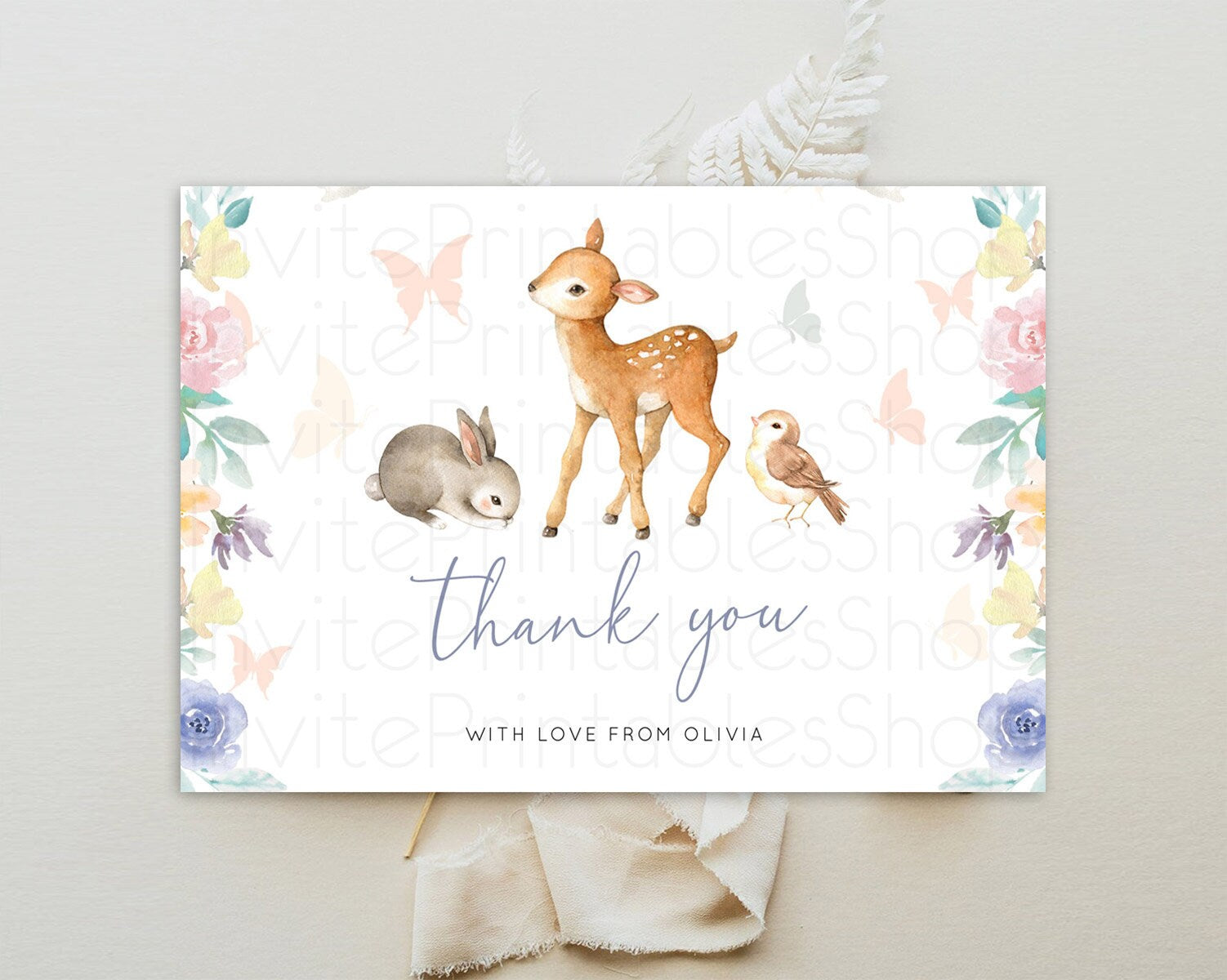 Fawn Thank You Deer Thank You Card Pastel Floral Deer Birthday Thank You Card Enchanted Forest Butterfly Deer Teacher Thank You Card D10930