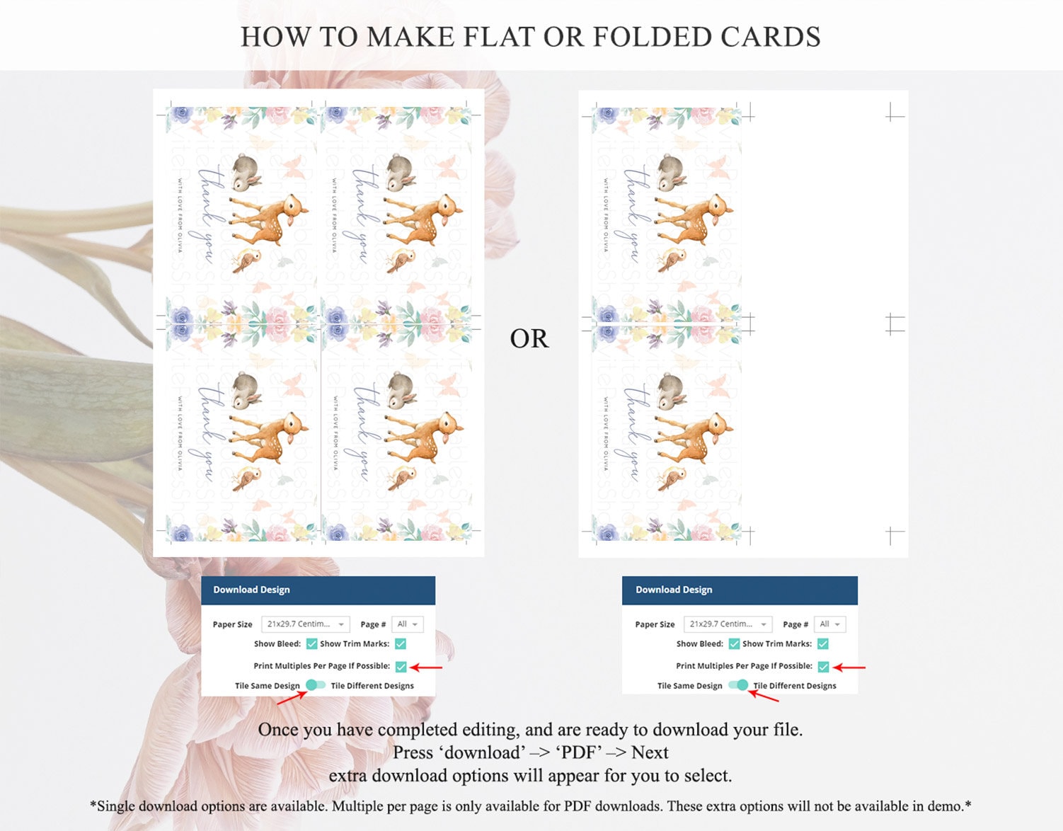 • Custom changes to artwork are not provided on existing templates.