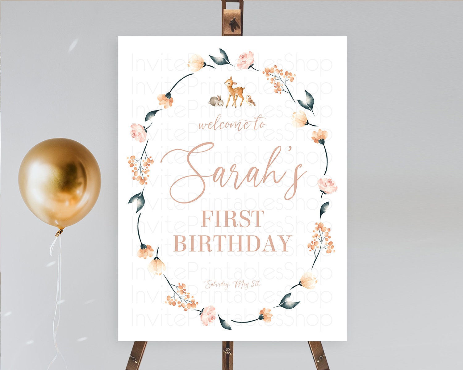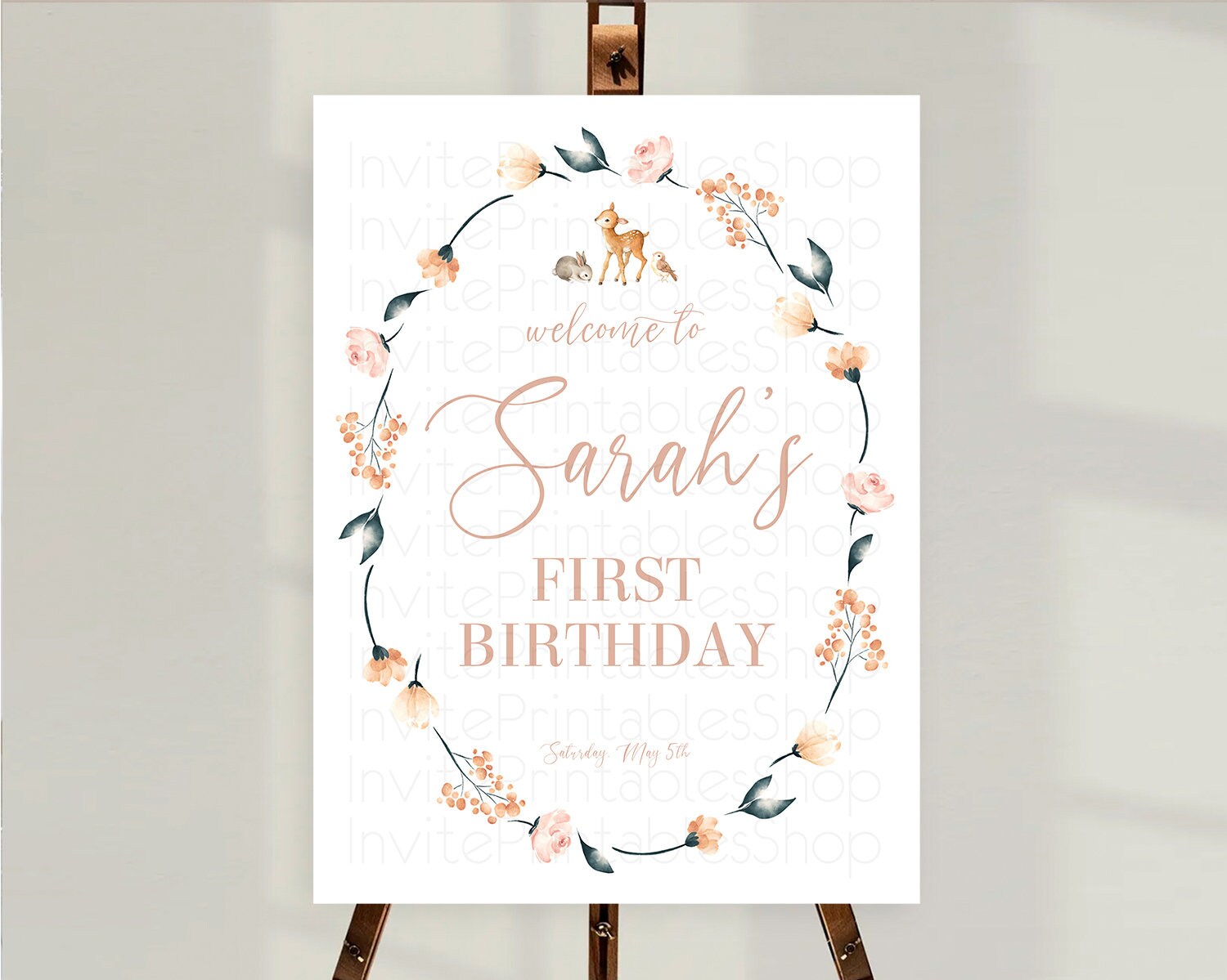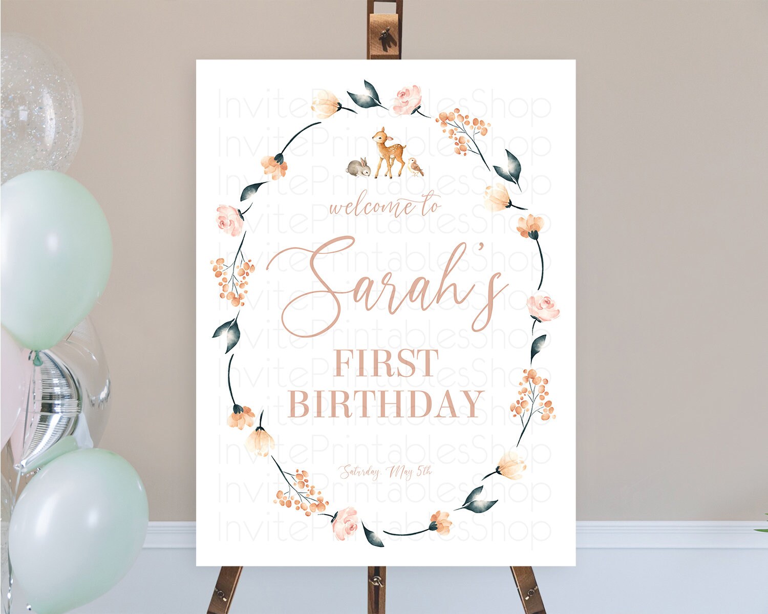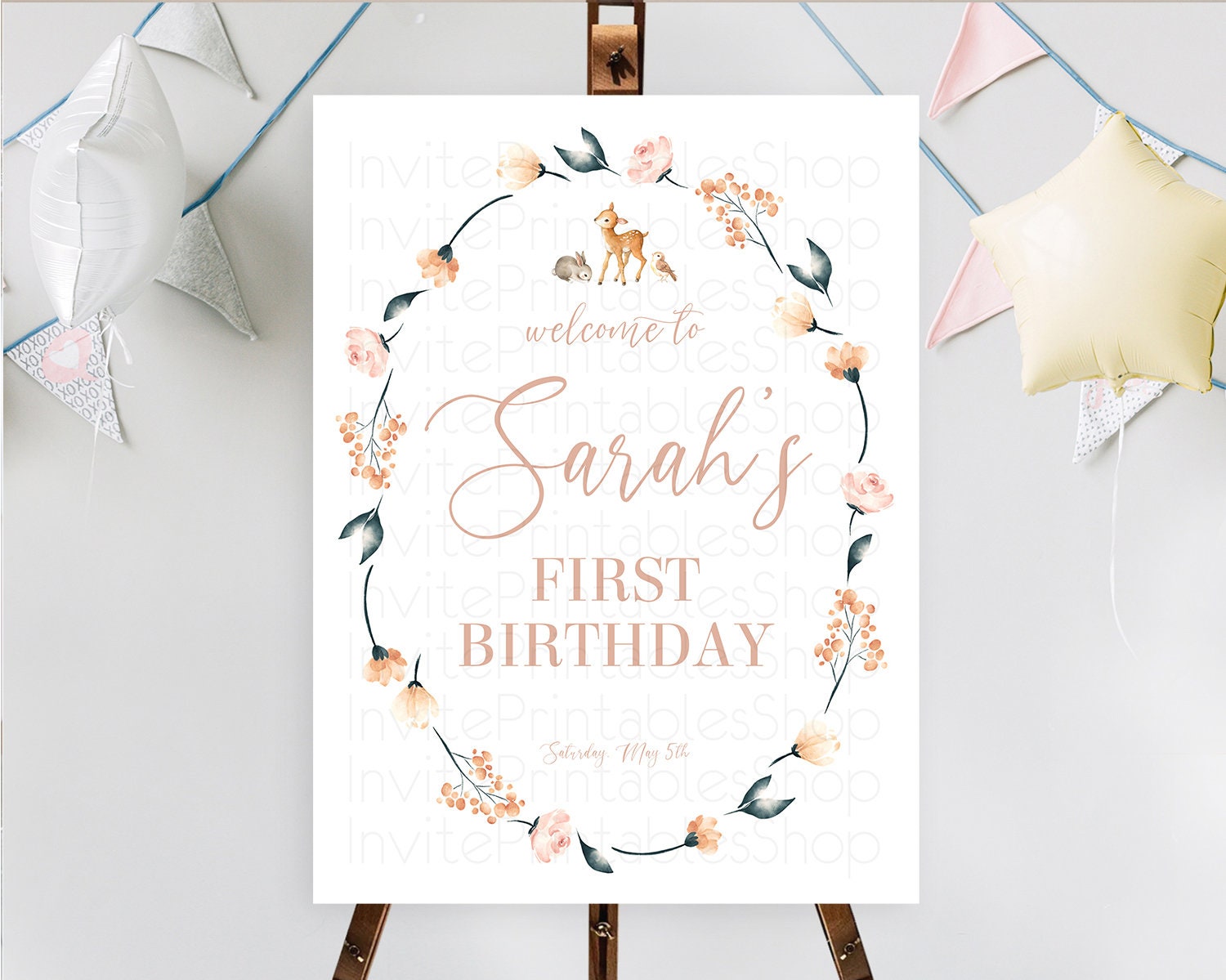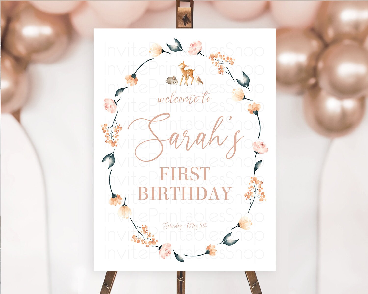 Fawn Welcome Sign Deer Welcome Board Floral Deer Welcome Poster Enchanted Forest Butterfly Pastel Floral First Birthday Welcome Sign D10241