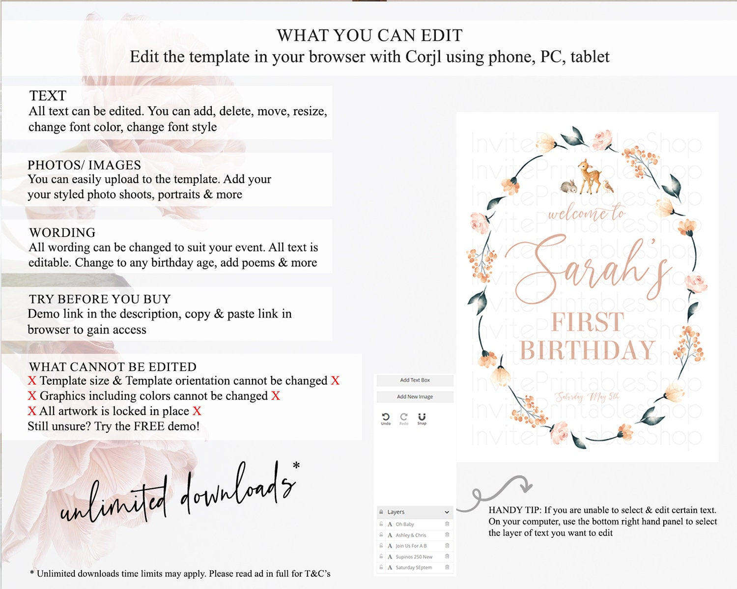 • After purchase, Corjl emails your editing link. Allow up to 15 minutes for delivery.